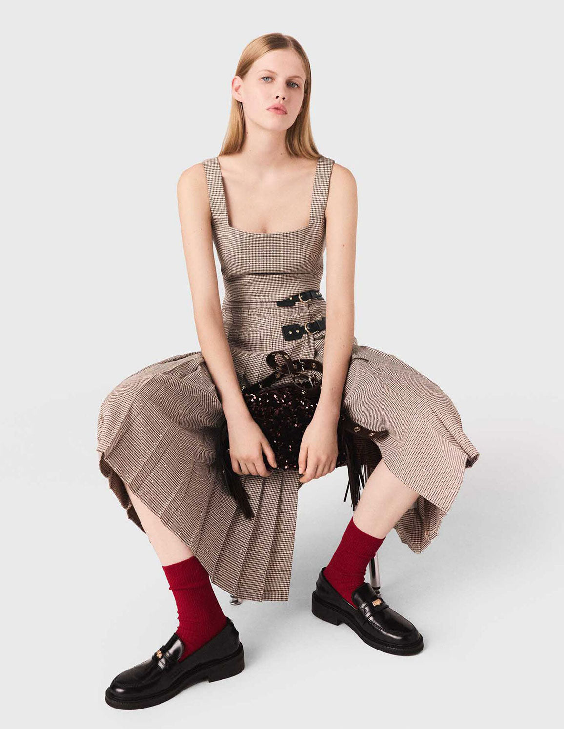 • Worn with the matching pleated skirt, loafers and a rhinestone bag, it creates a bold and feminine silhouette where comfort and sparkle meet.