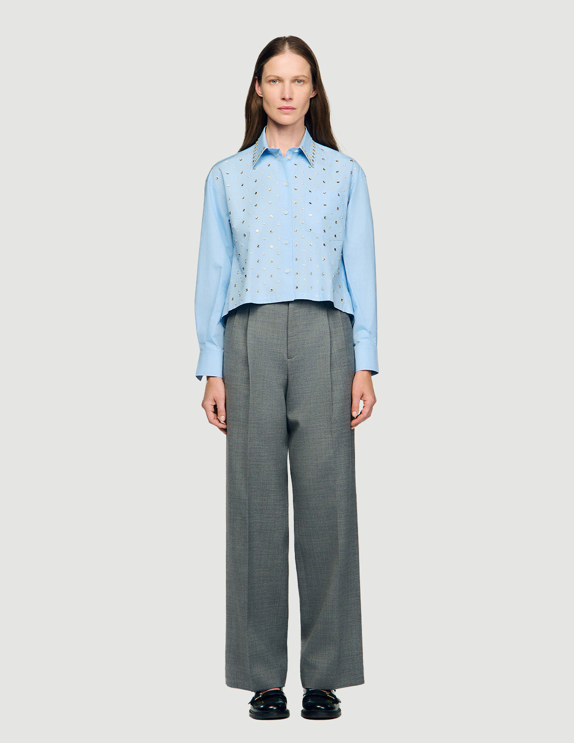 • Sandro Women's rhinestone-embellished cropped shirt