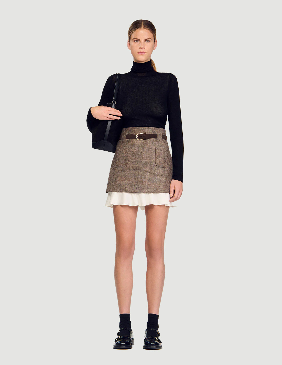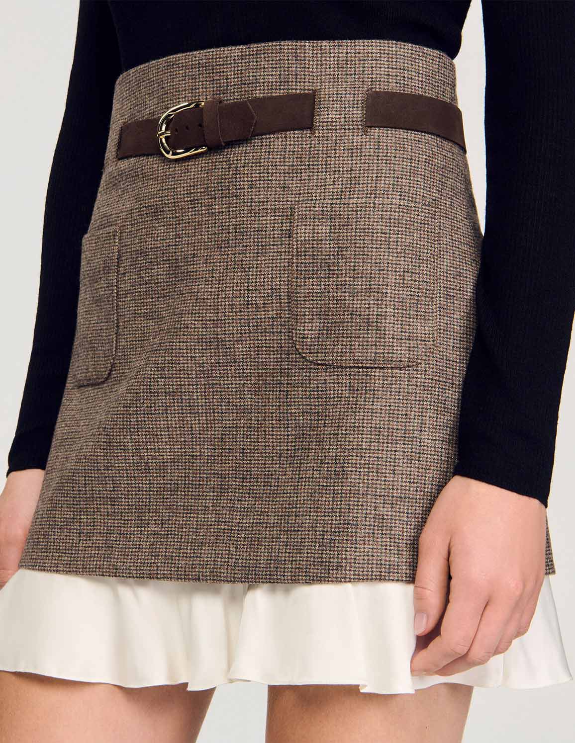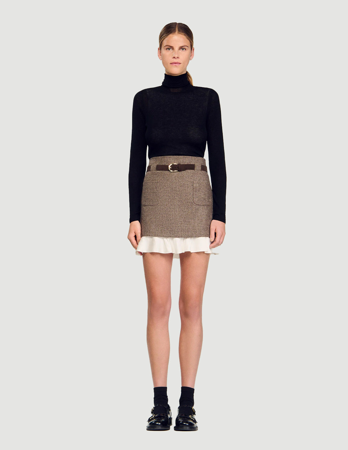 • SANDRO - Women's Mini Skirt With Frill And Belt