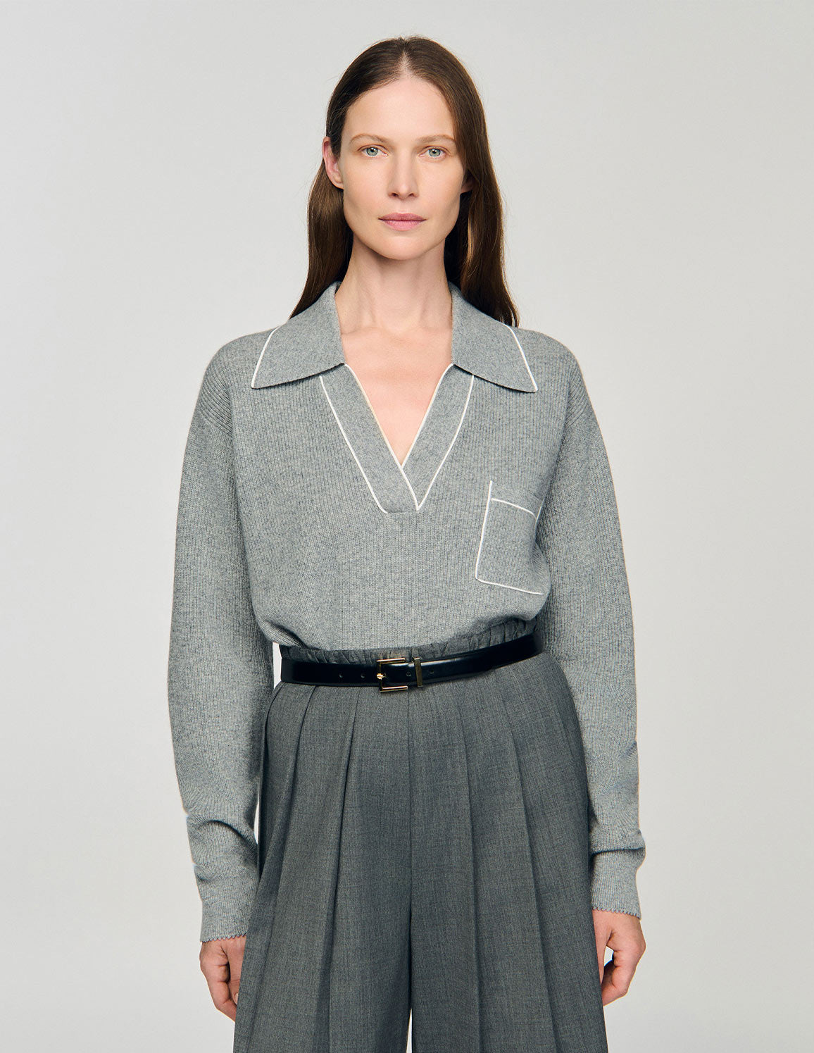 SANDRO - Women's Open Polo-Collar Neck Jumper