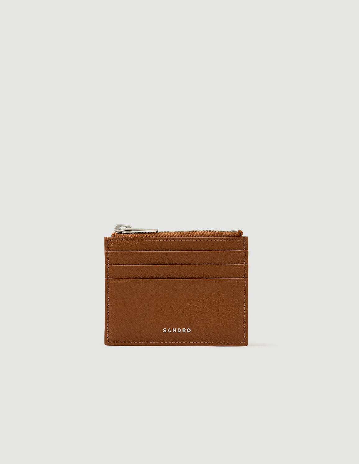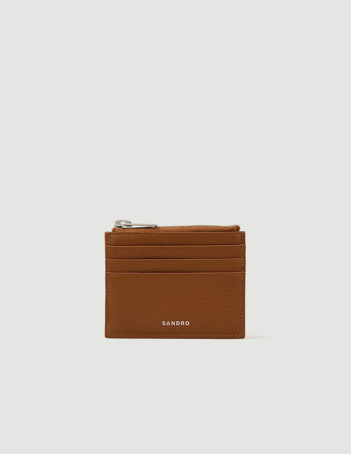 • Grained leather cardholder with zipped compartment featuring embossed Sandro pull tab and card slots