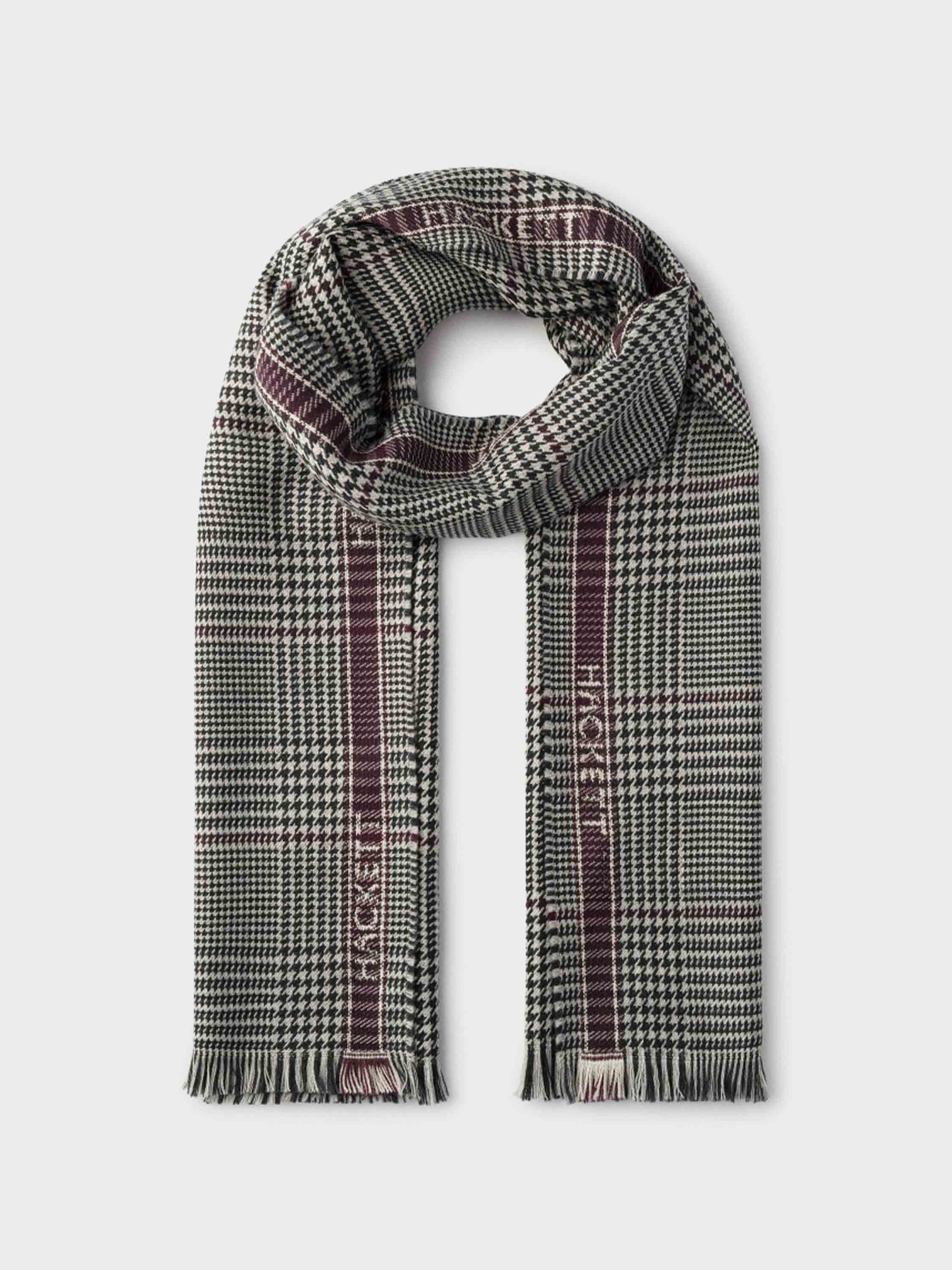 • - Hackett London - Elegant Prince of Wales windowpane pattern scarf crafted in Italy from extra fine merino wool for a refined texture - Finished with jacquard branding selvedge detail for a polished and sophisticated look