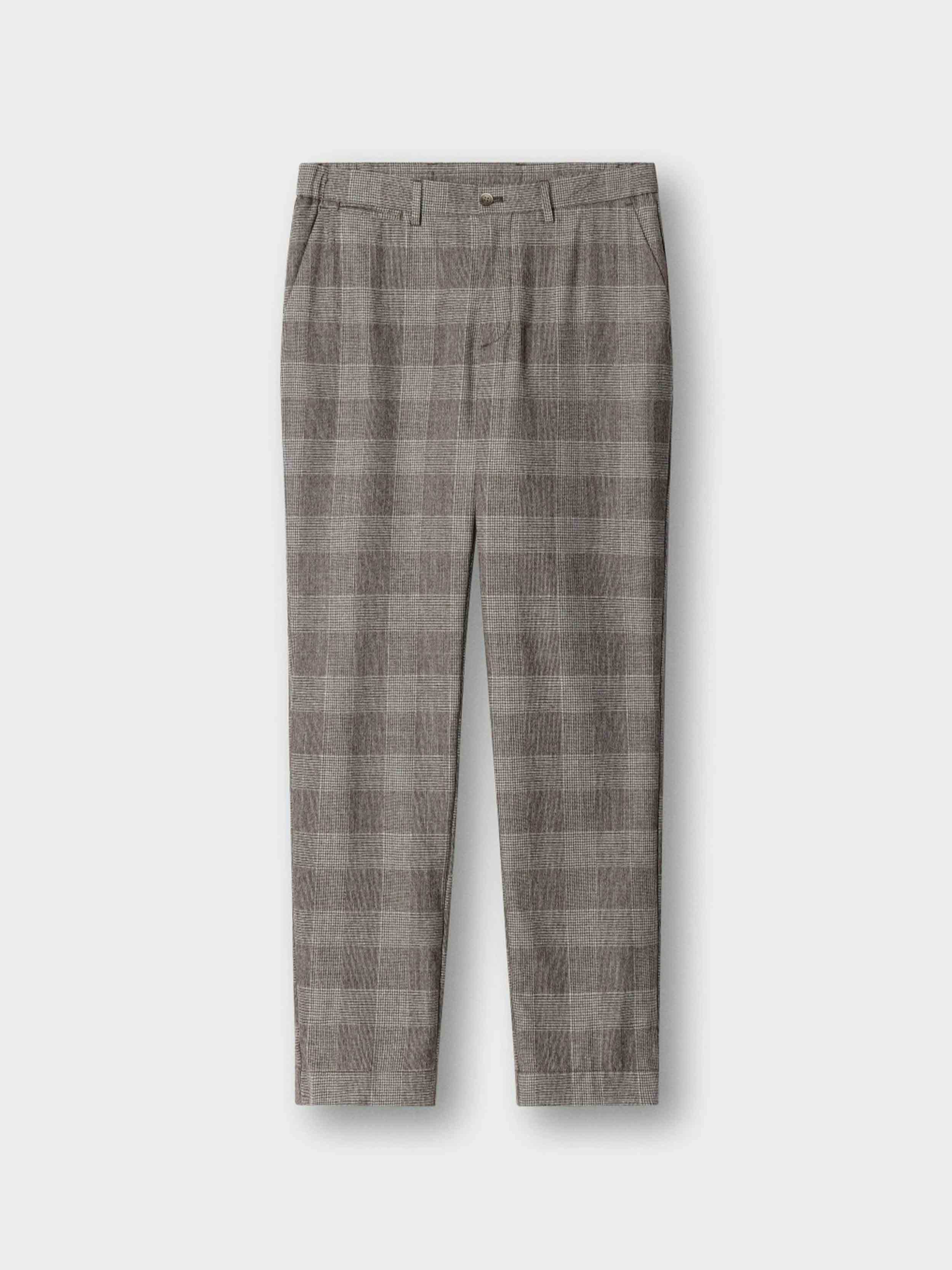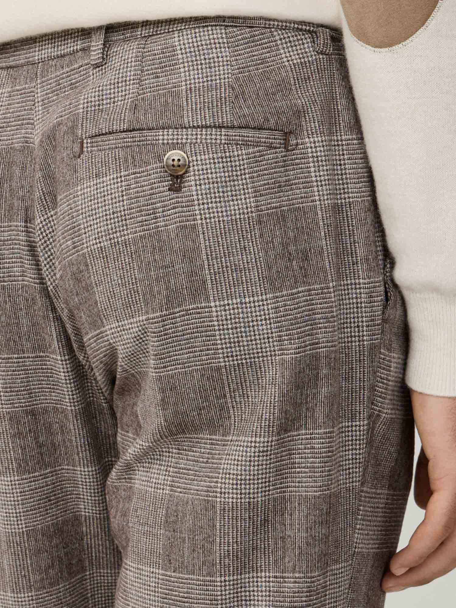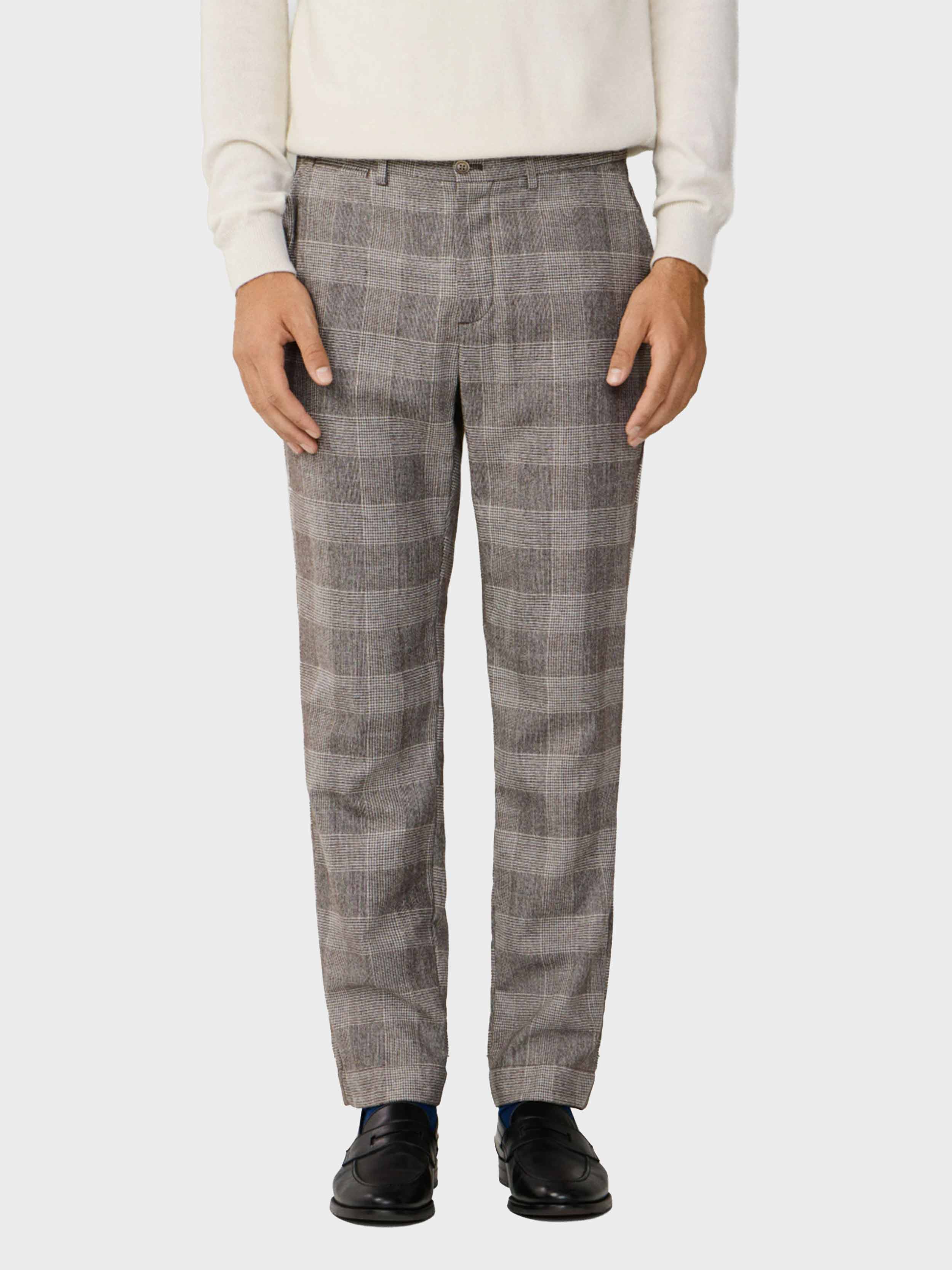 • - Hackett London - Relaxed Fit Regent Chino - Features belt loops, zip fly, side elastic for comfort, internal grey melange drawcord, external coin welt, and back welt pockets- Made from wool-blend flannel in a British-designed Prince of Wales yarn dye check