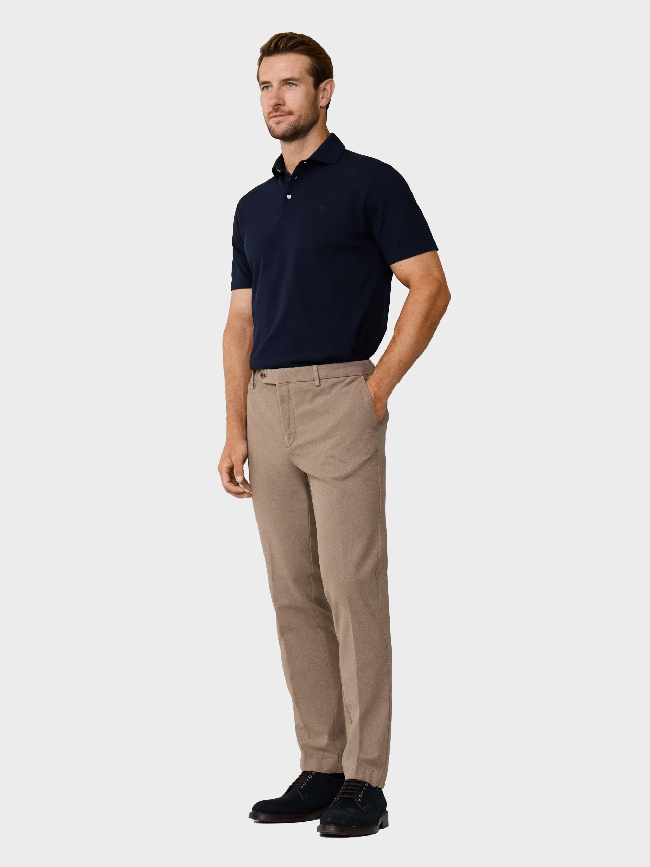 • - Hackett London - Slim Fit Kensington Chino - Features a front coin welt, back notch waistband, micro paisley internal details, belt loops, zip fly and branded label on the right back pocket- Garment-dyed cotton Tencel texture chino for a unique look