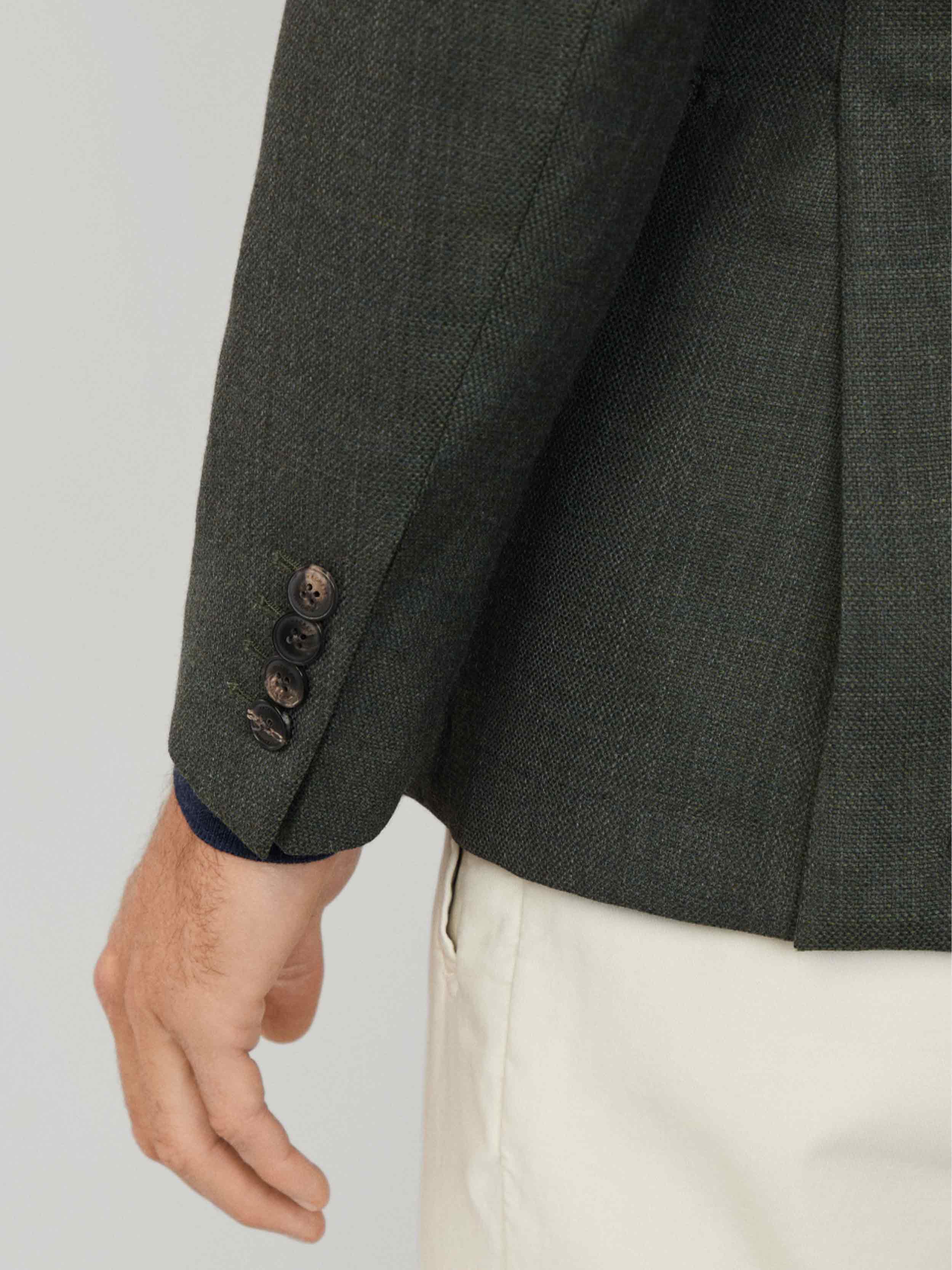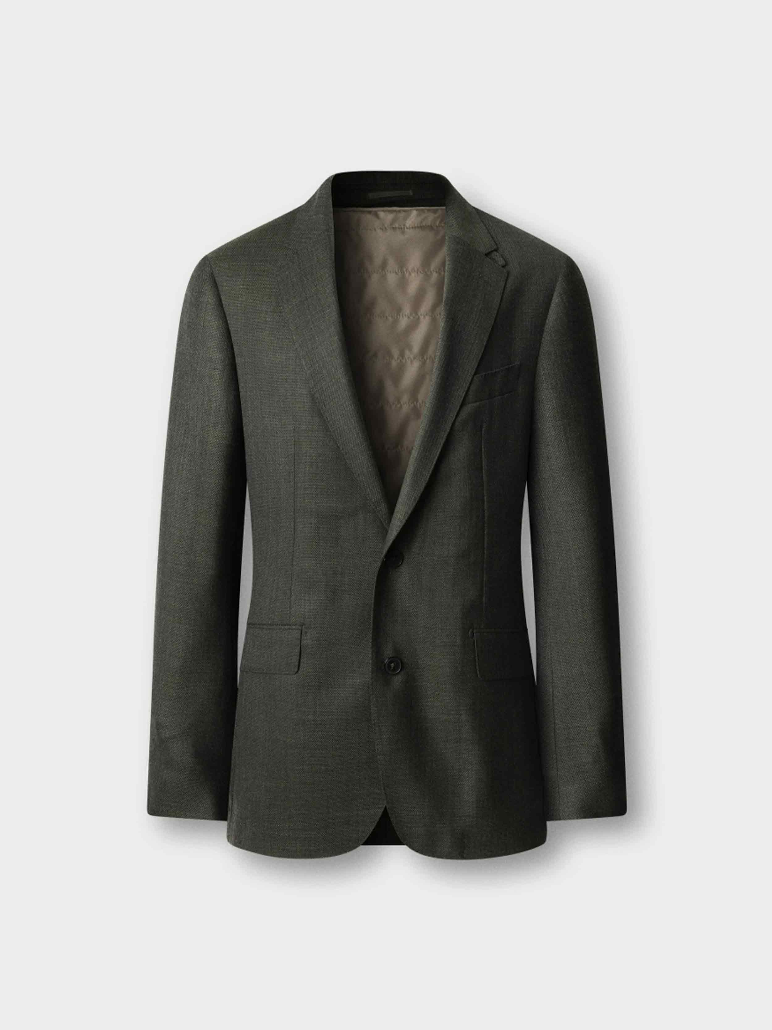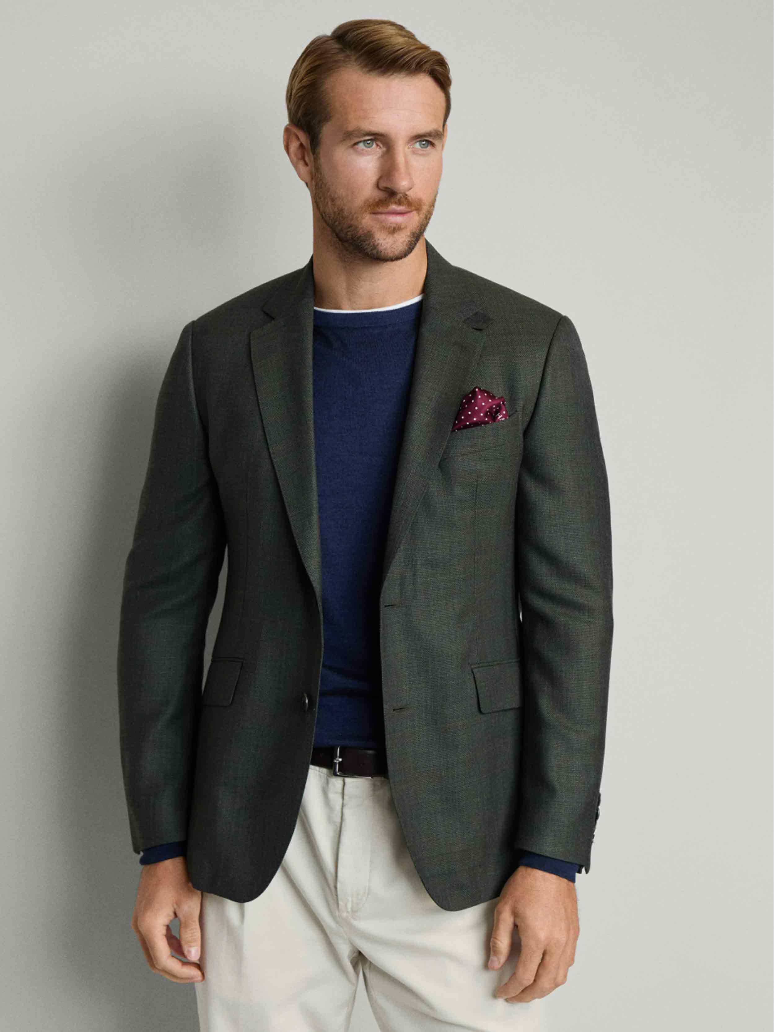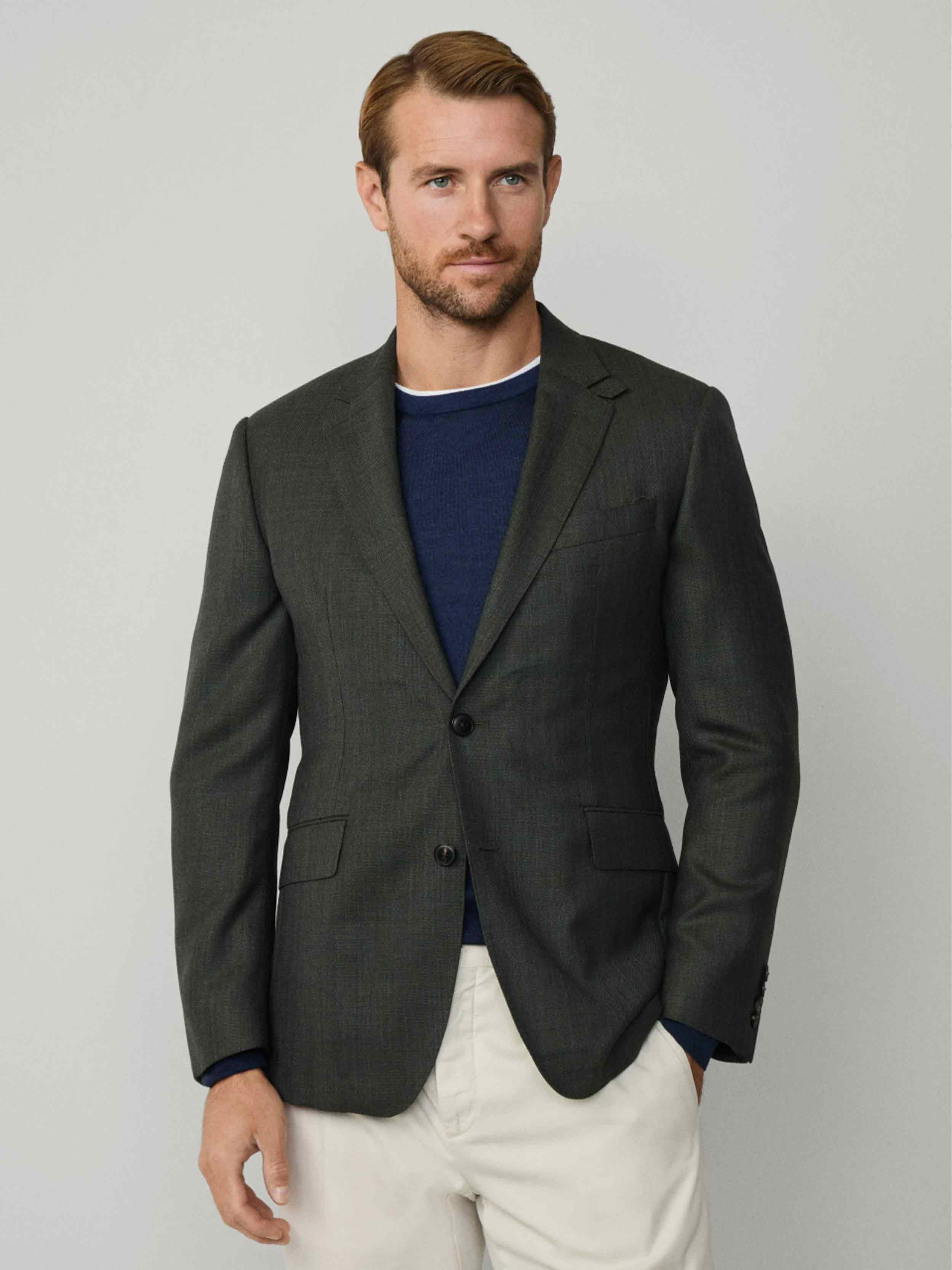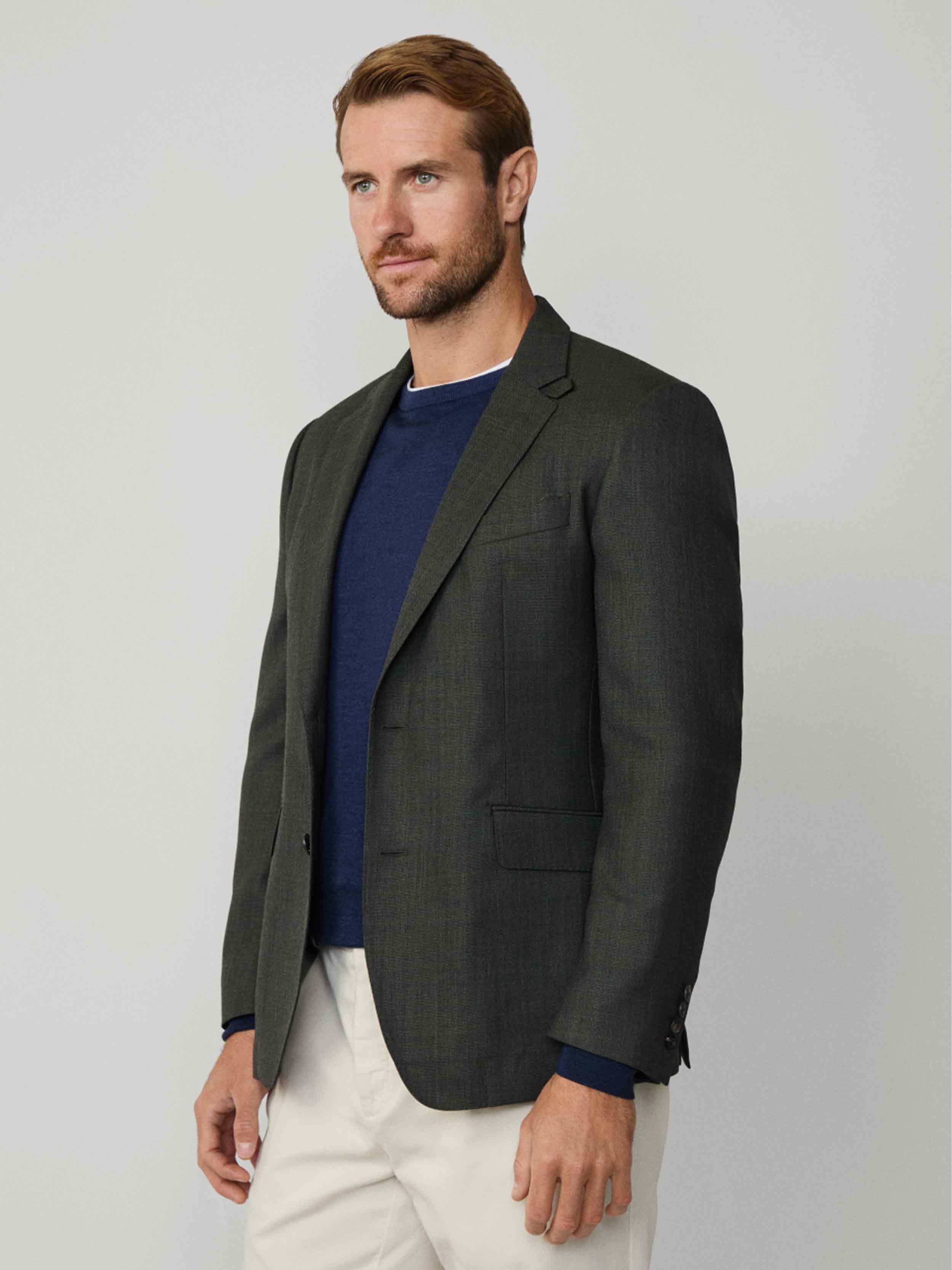 • - Hackett London - Chiltern block - Features two buttons, a notch lapel, button cuffs and flap pockets - Hybrid design with zip-out internal liner for versatility - Crafted in a wool blend with a subtle texture