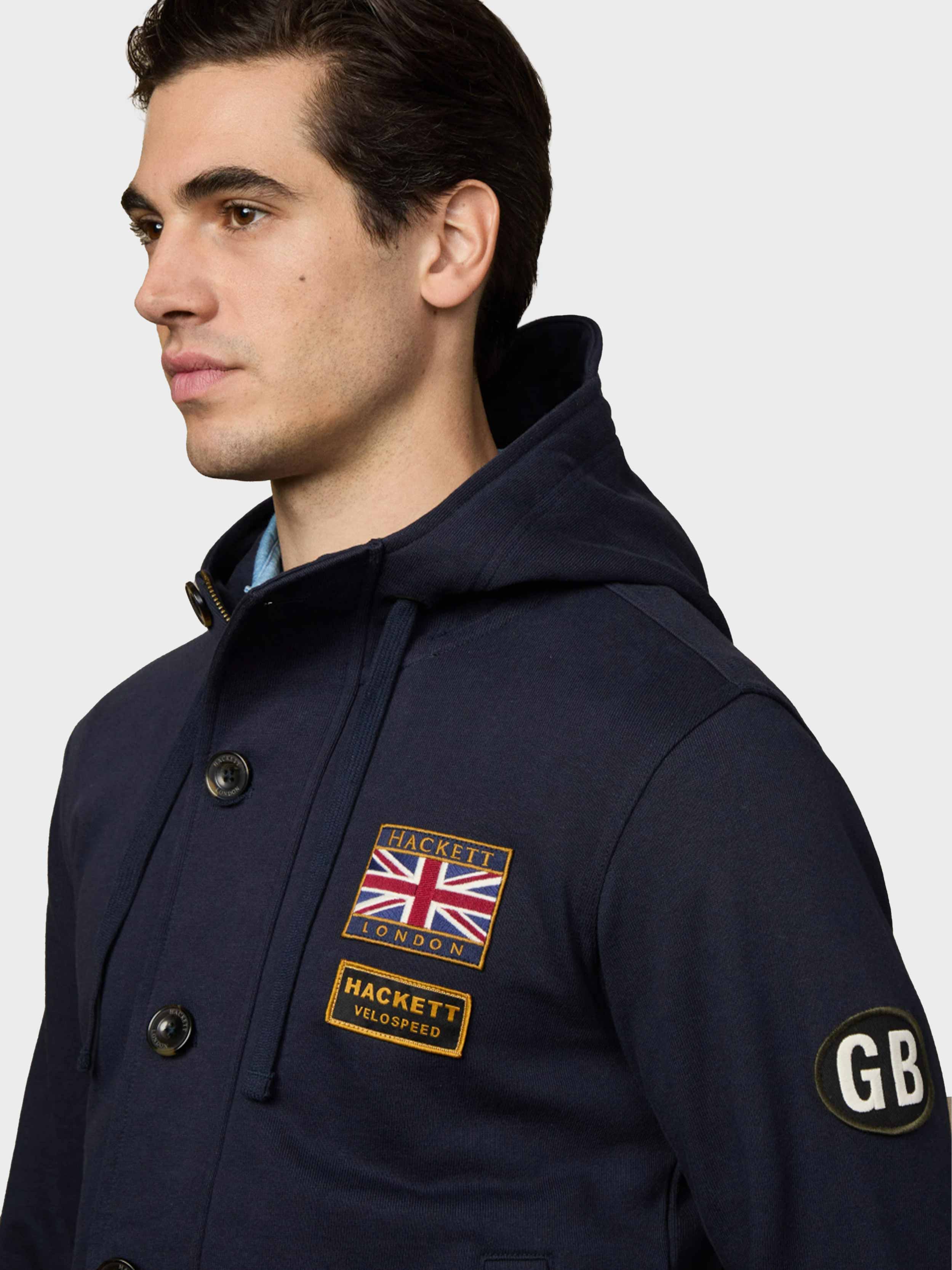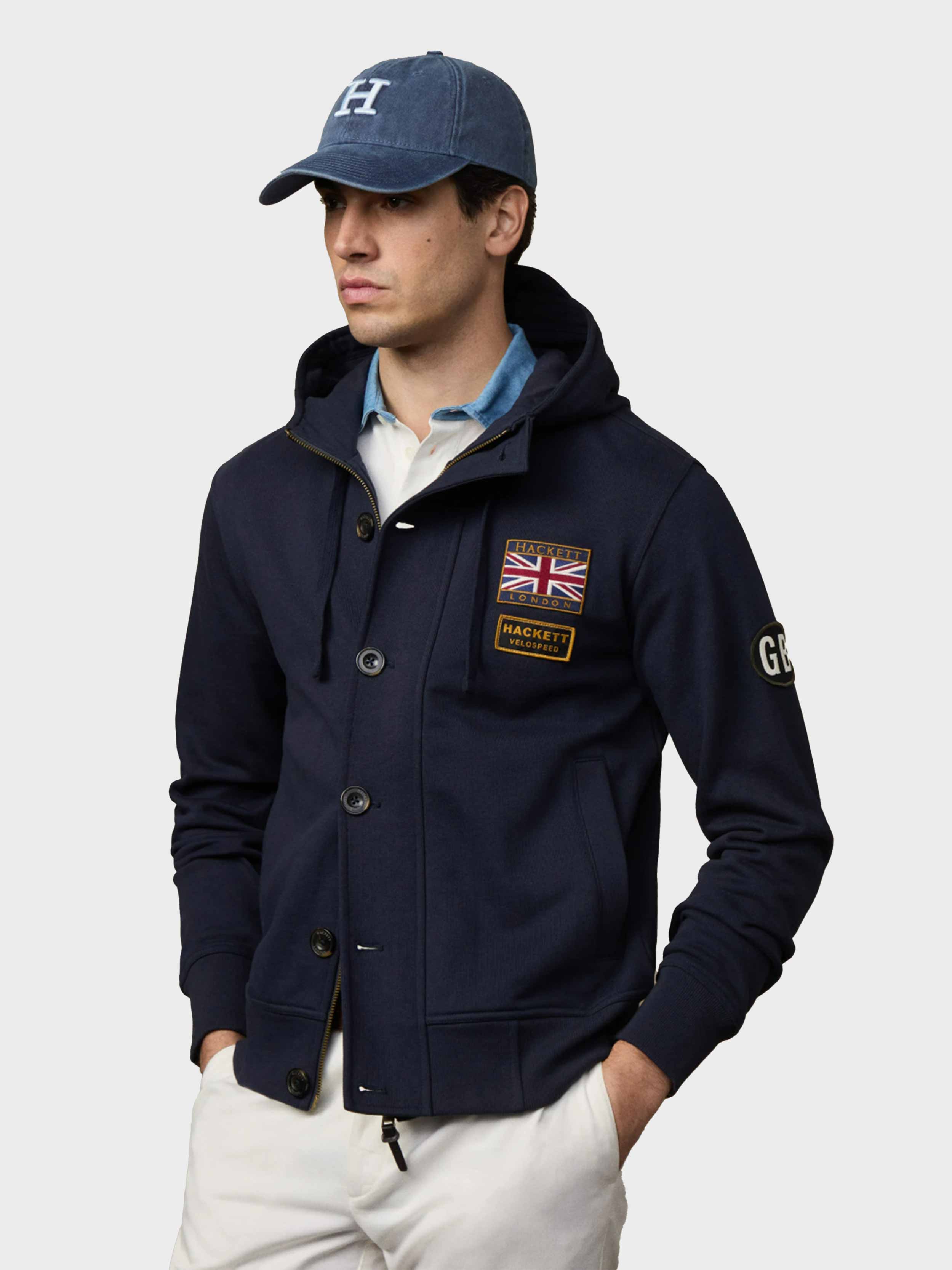 • - Hackett Heritage - Classic Fit- Rally-inspired hooded sweatshirt in 100% cotton fleece- Archive Velospeed graphic with multi-badge branding- Statement design across chest and sleeve- A bold piece from the Hackett archives