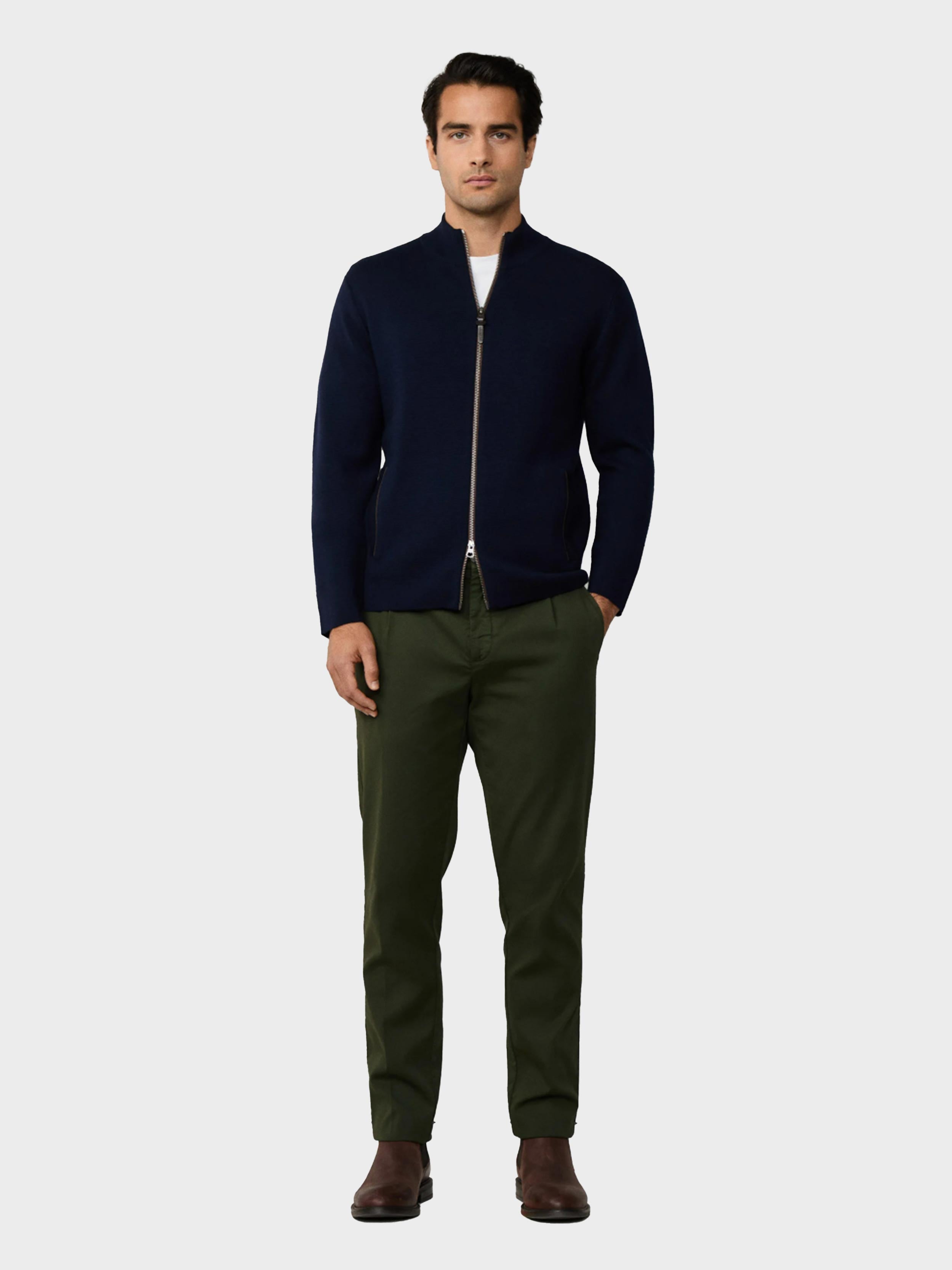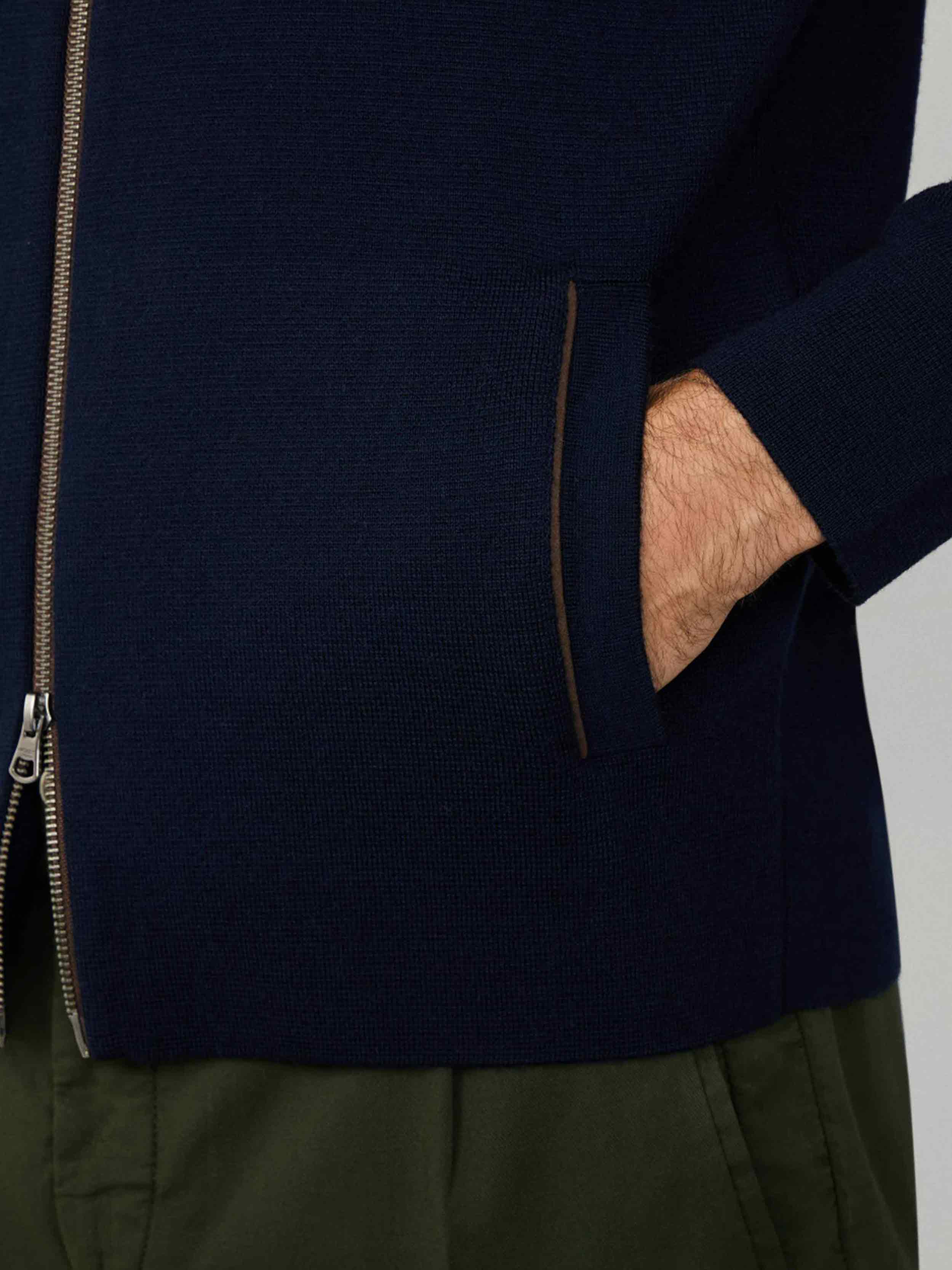 • - Hackett London - Regular fit - Full zip cardigan knitted in pure merino wool - Finished with faux suede trim at welt pockets and contrast zip tape - Features a branded double-ended zip for functional elegance