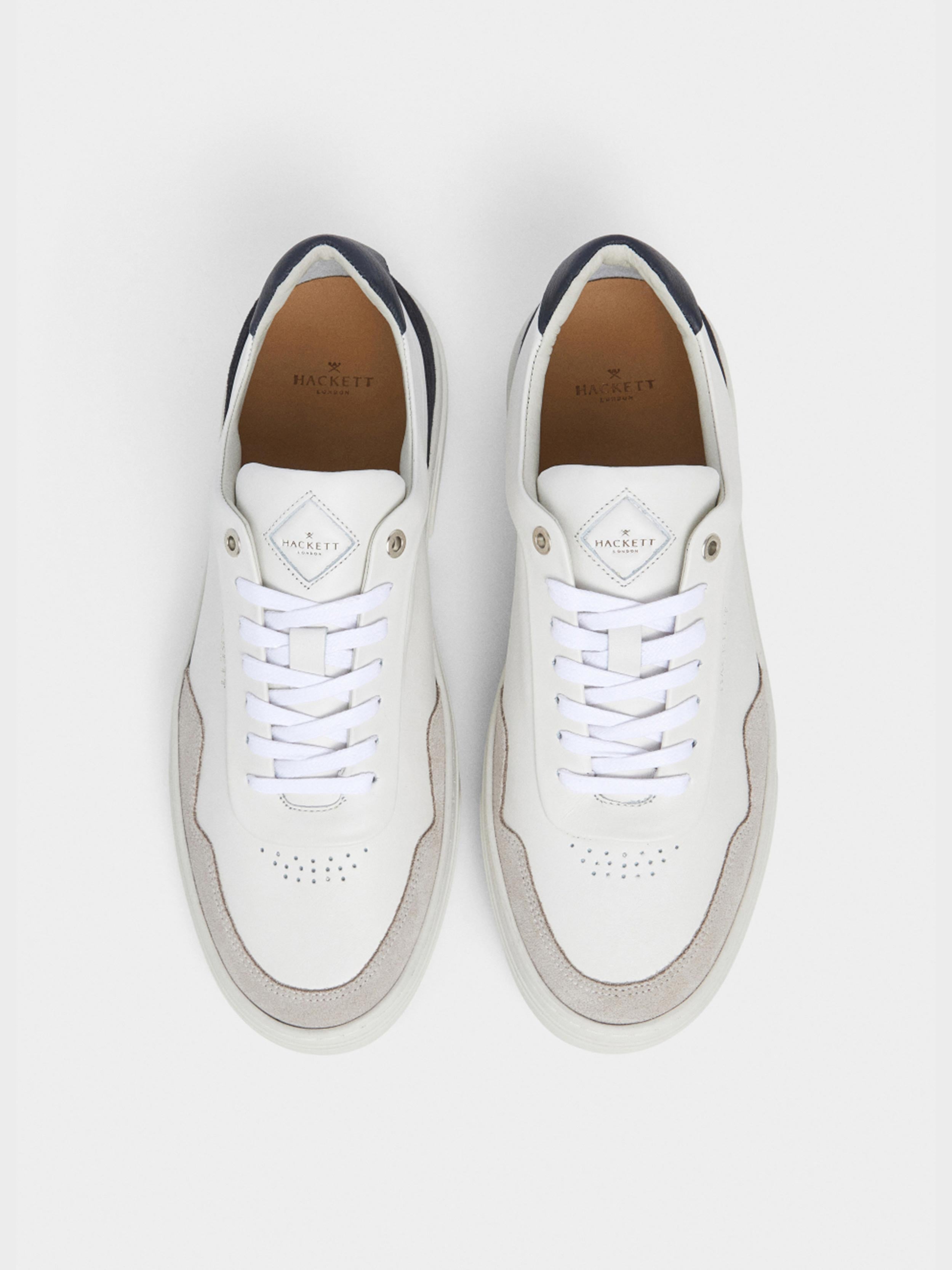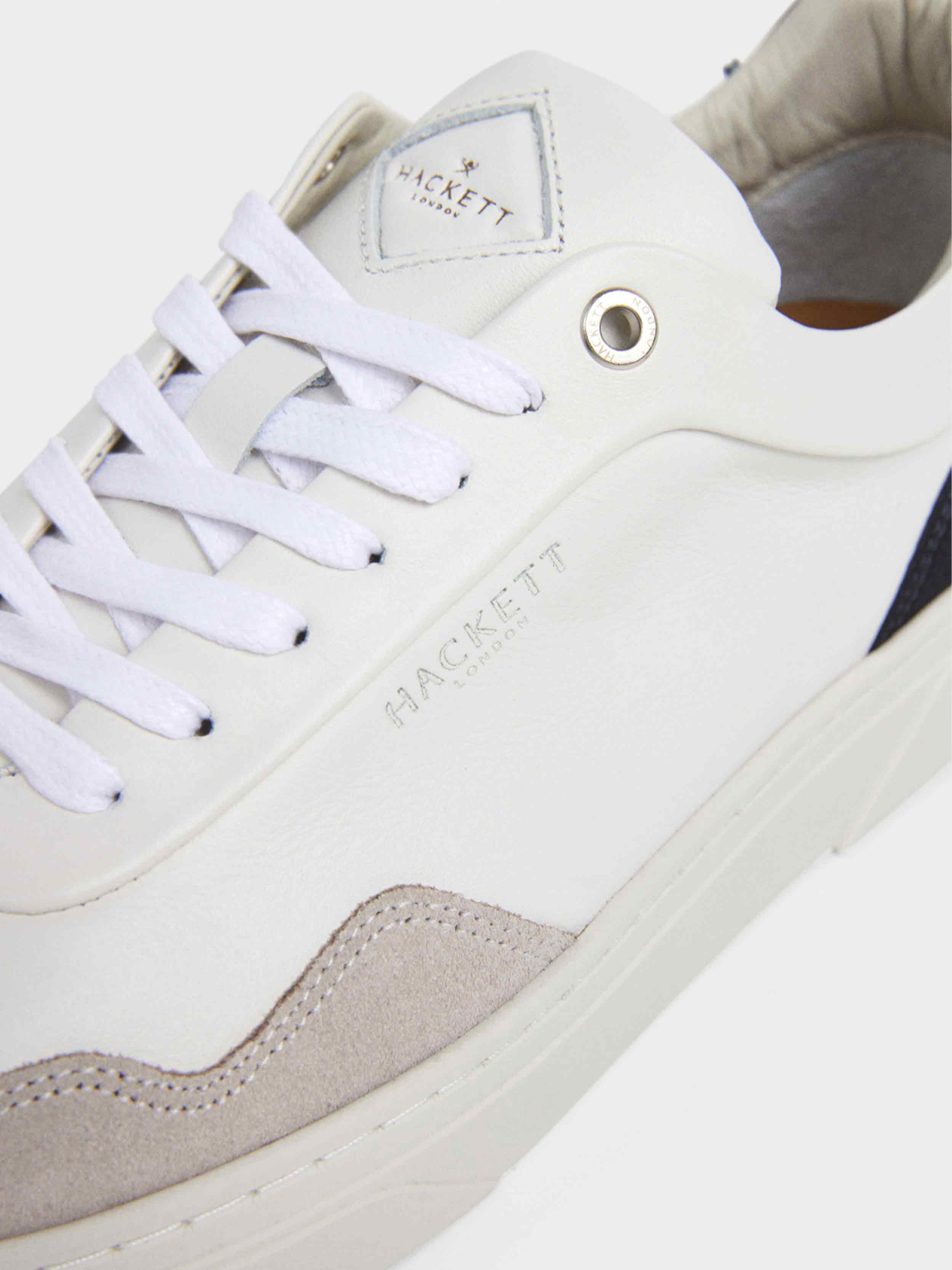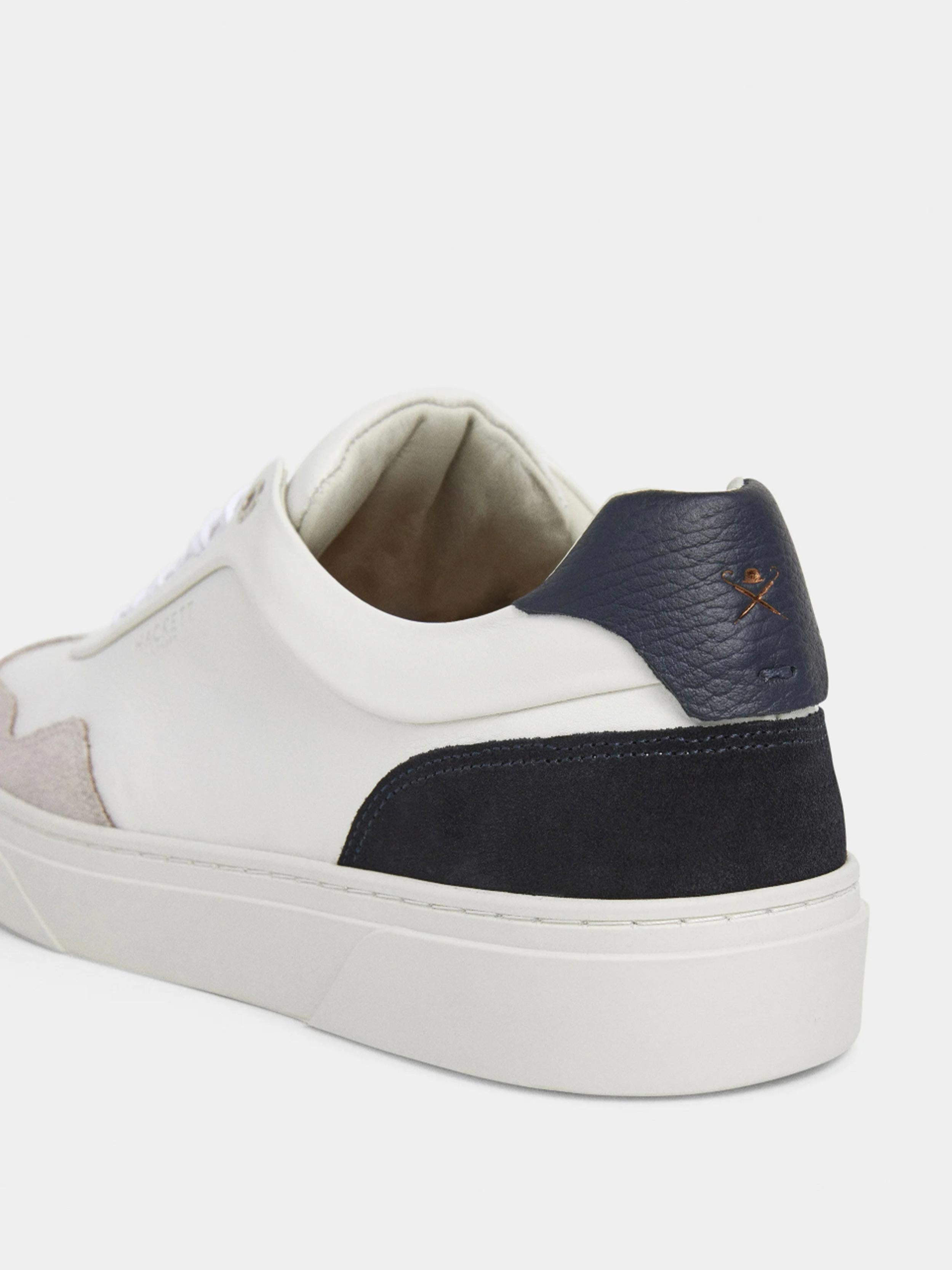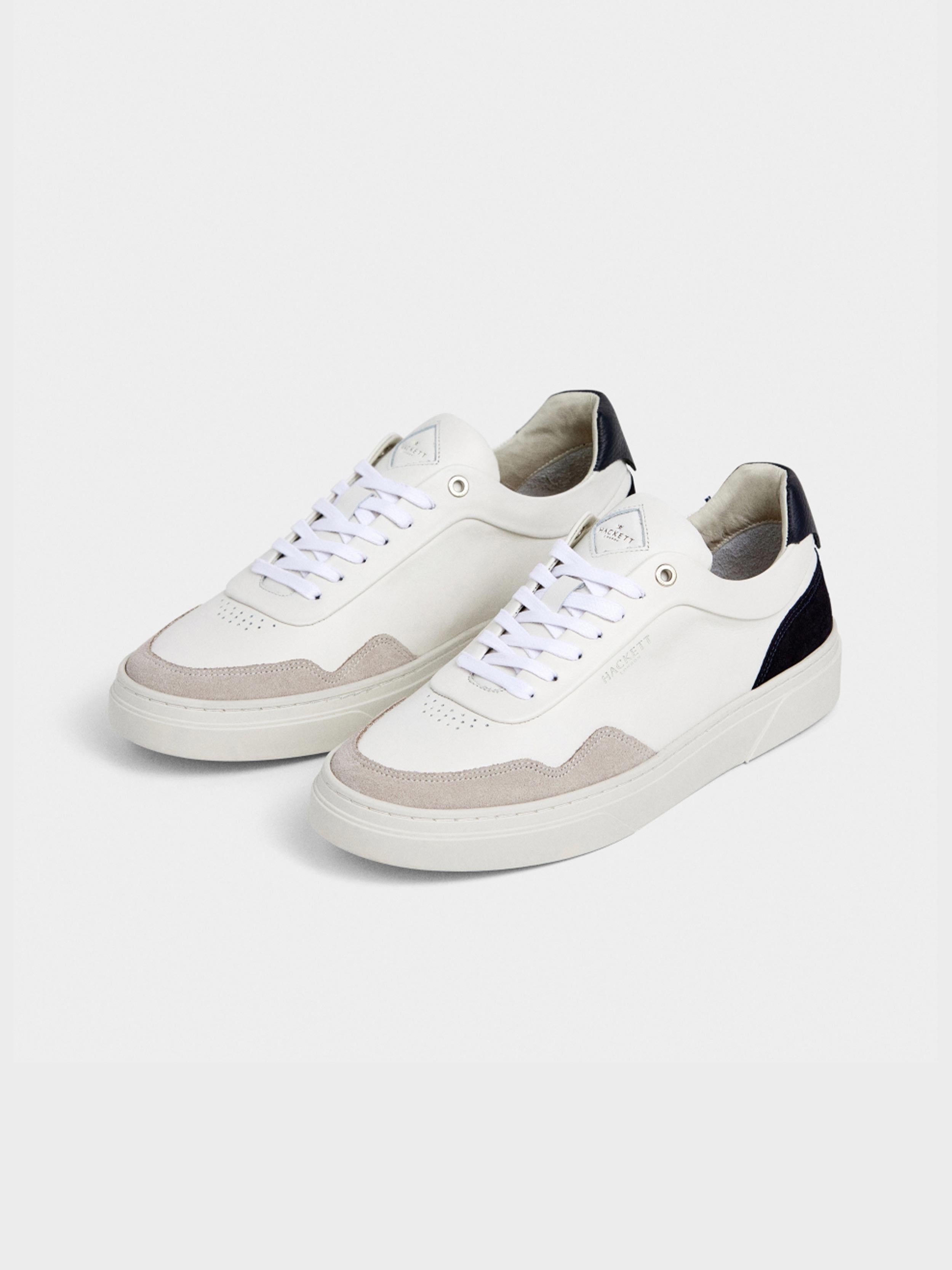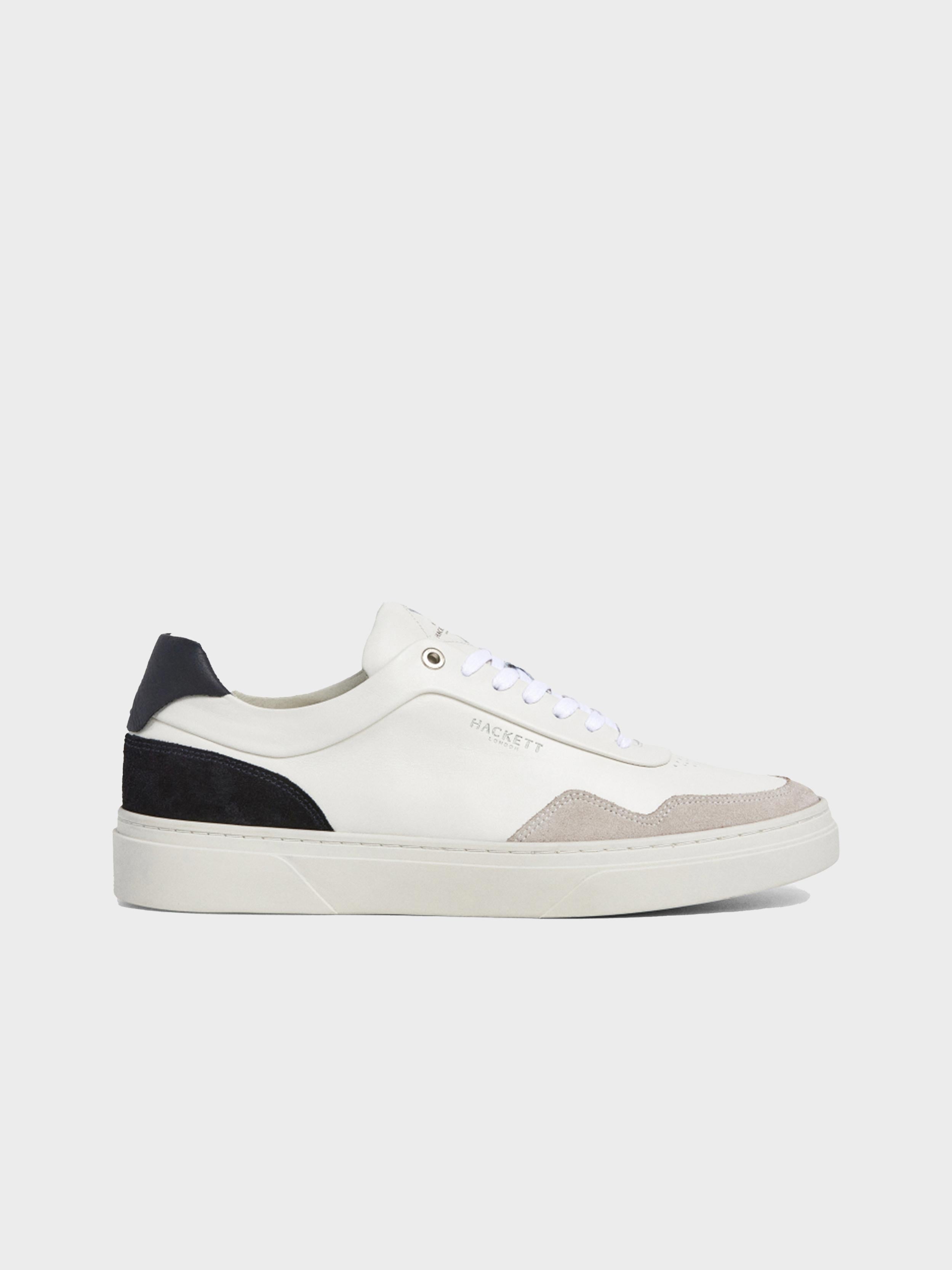 • - Hackett London - Premium sneaker crafted from cow nappa and silky suede- Buffalo tanned leather lining and removable insole- Exclusive cupsole design with personalised eyelet- Classic Hackett logo on the side- Made in Portugal