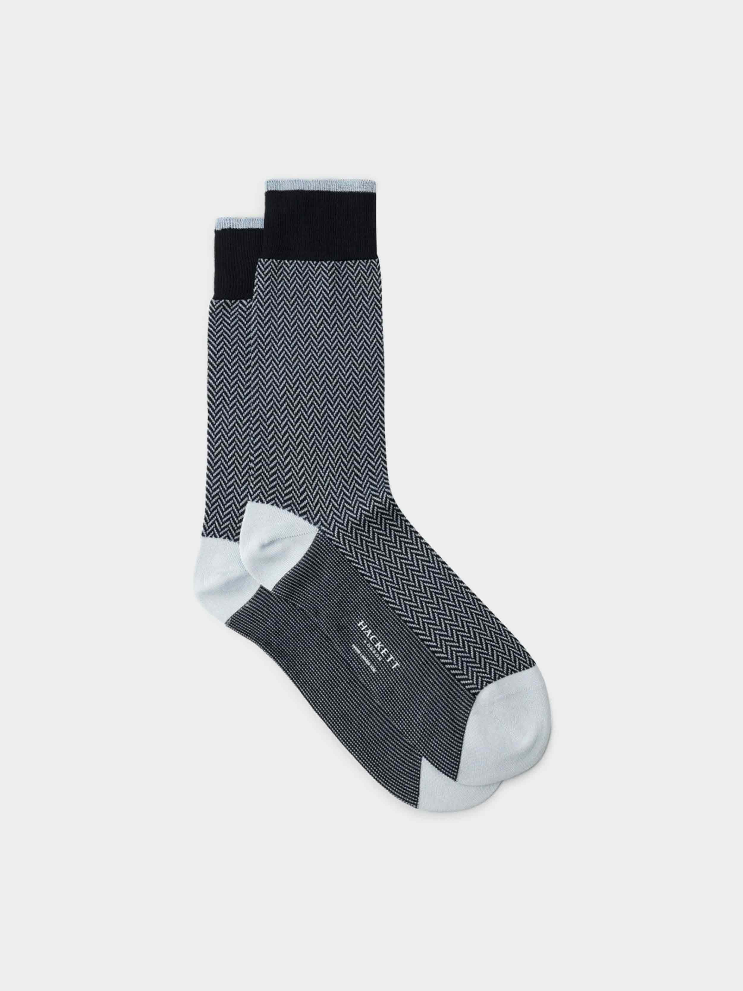 • - Mercerised cotton socks with jacquard herringbone pattern