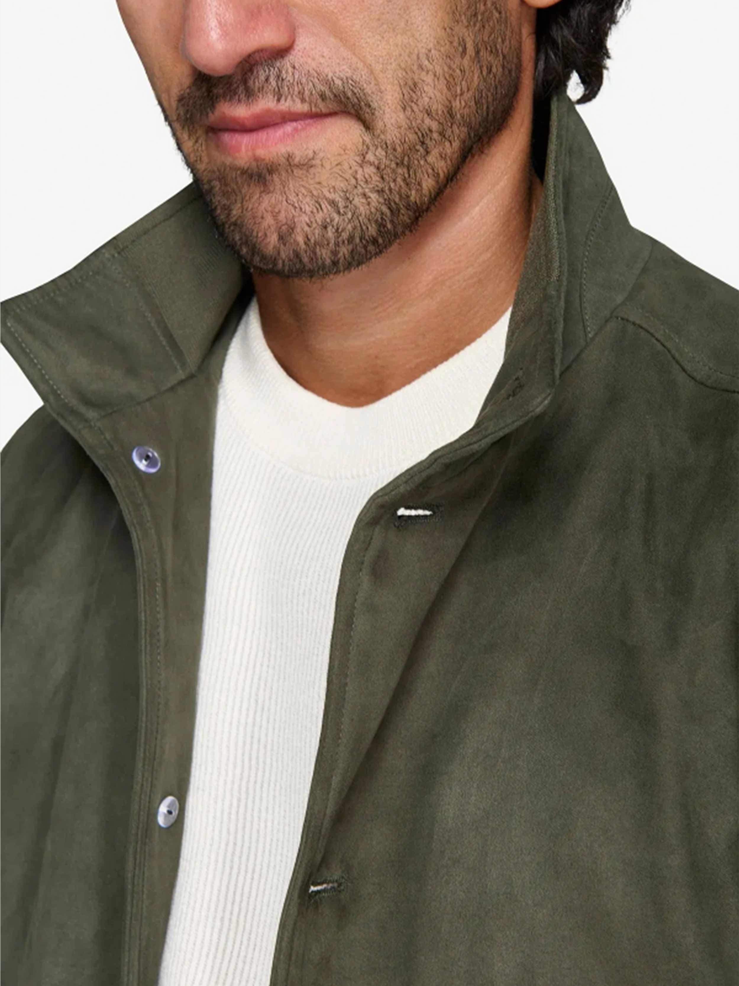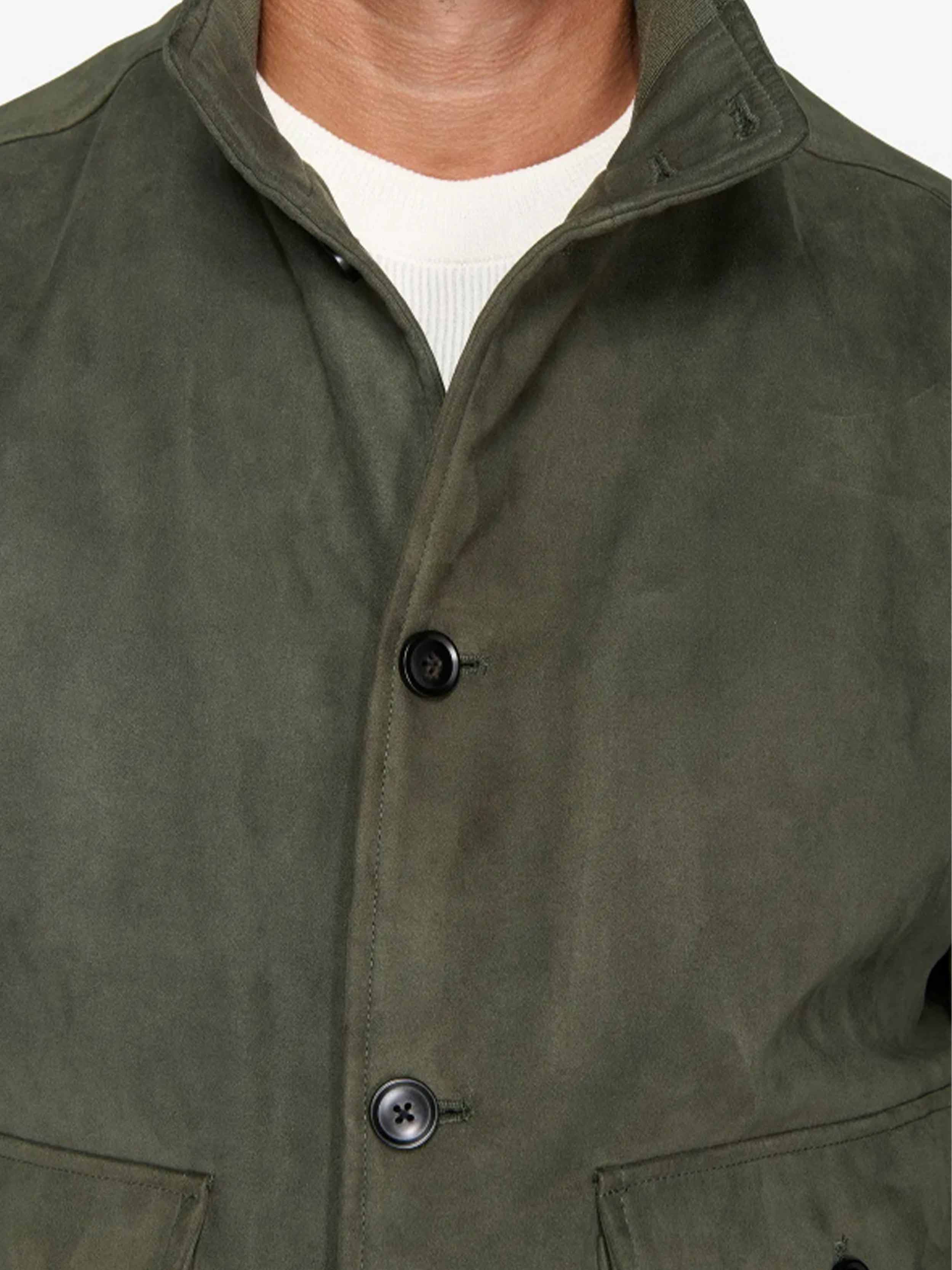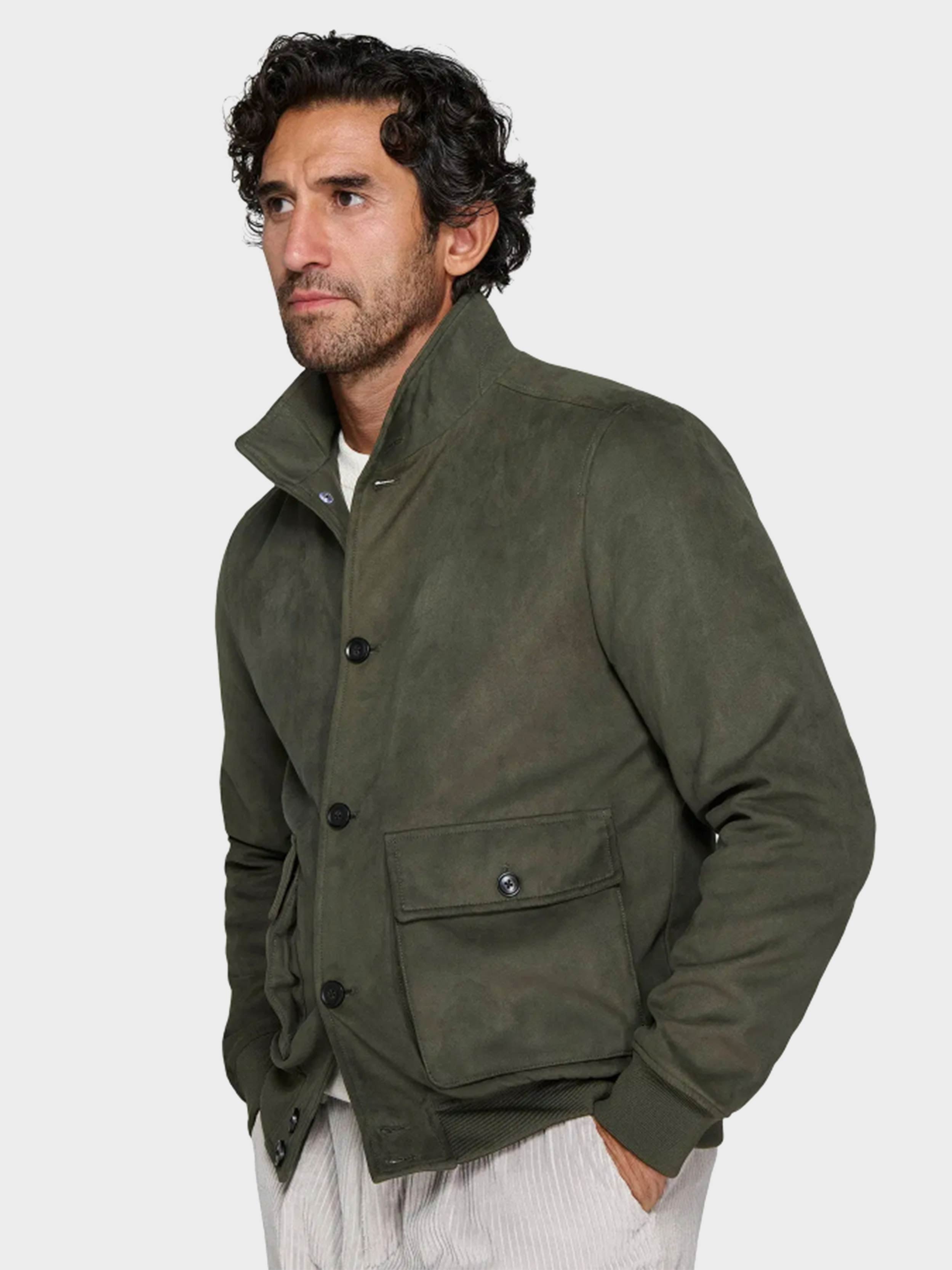 • Eco-suede polo bomber jacket. Lower flap pockets, ribbed cuffs and hem.