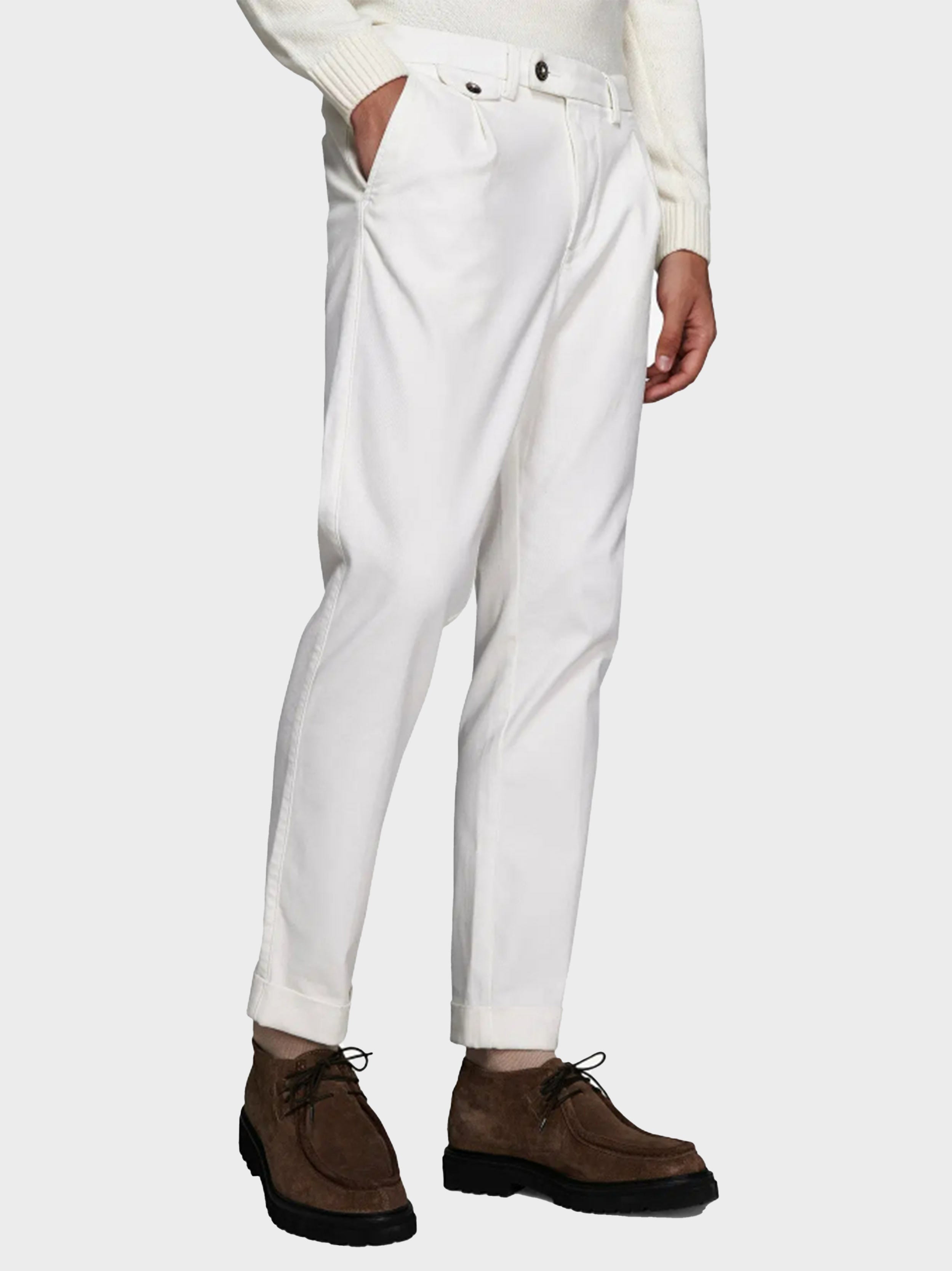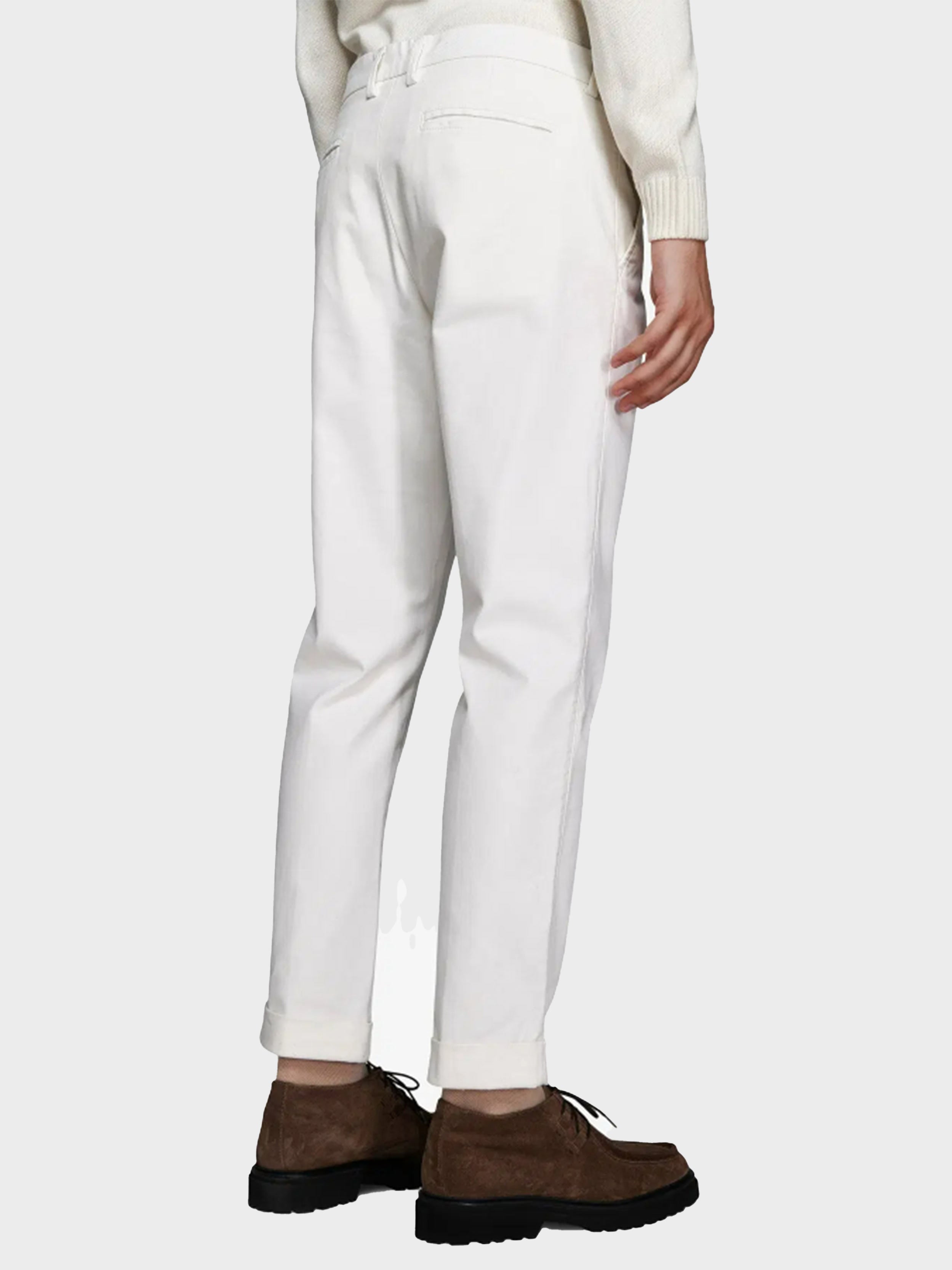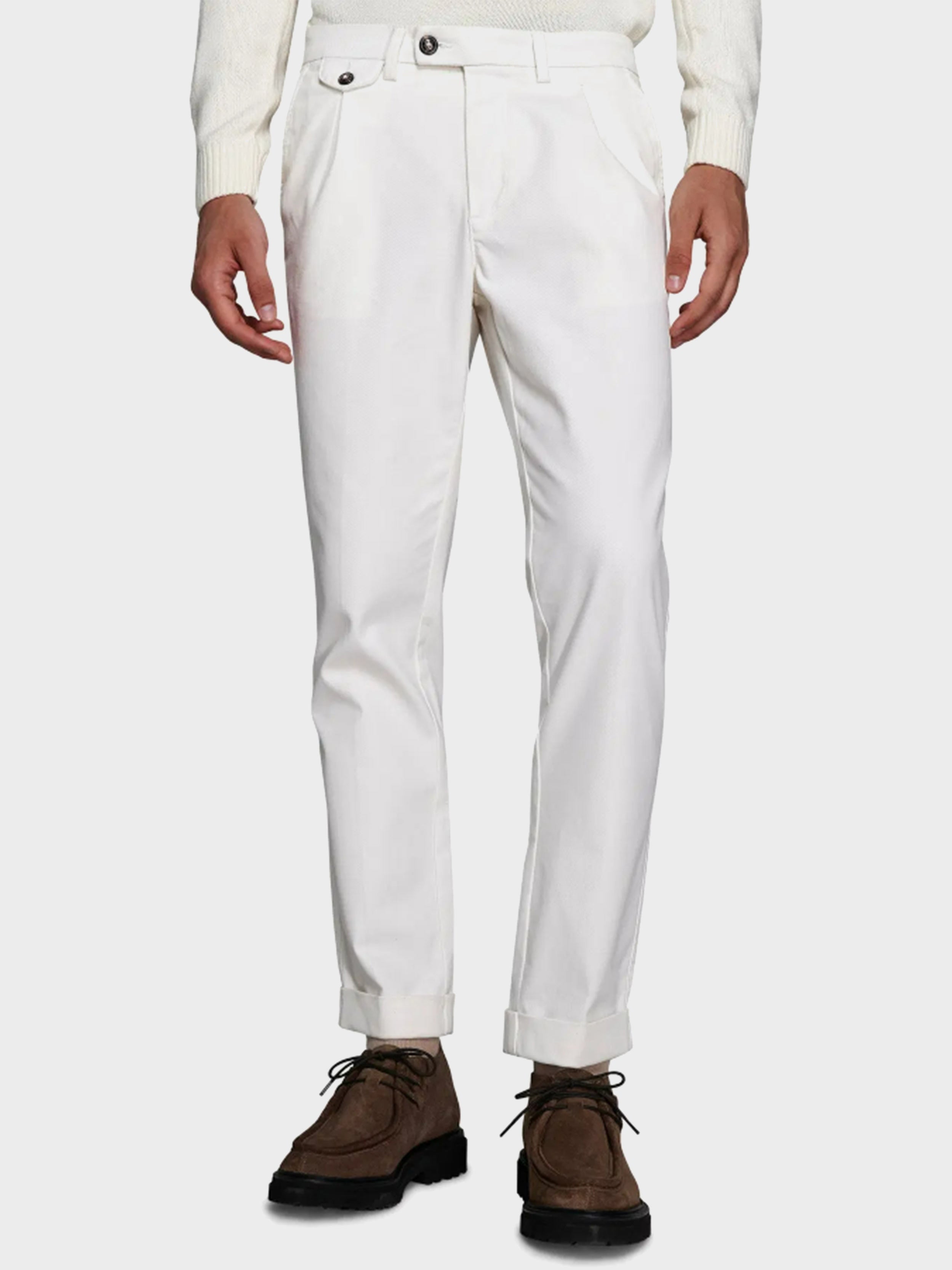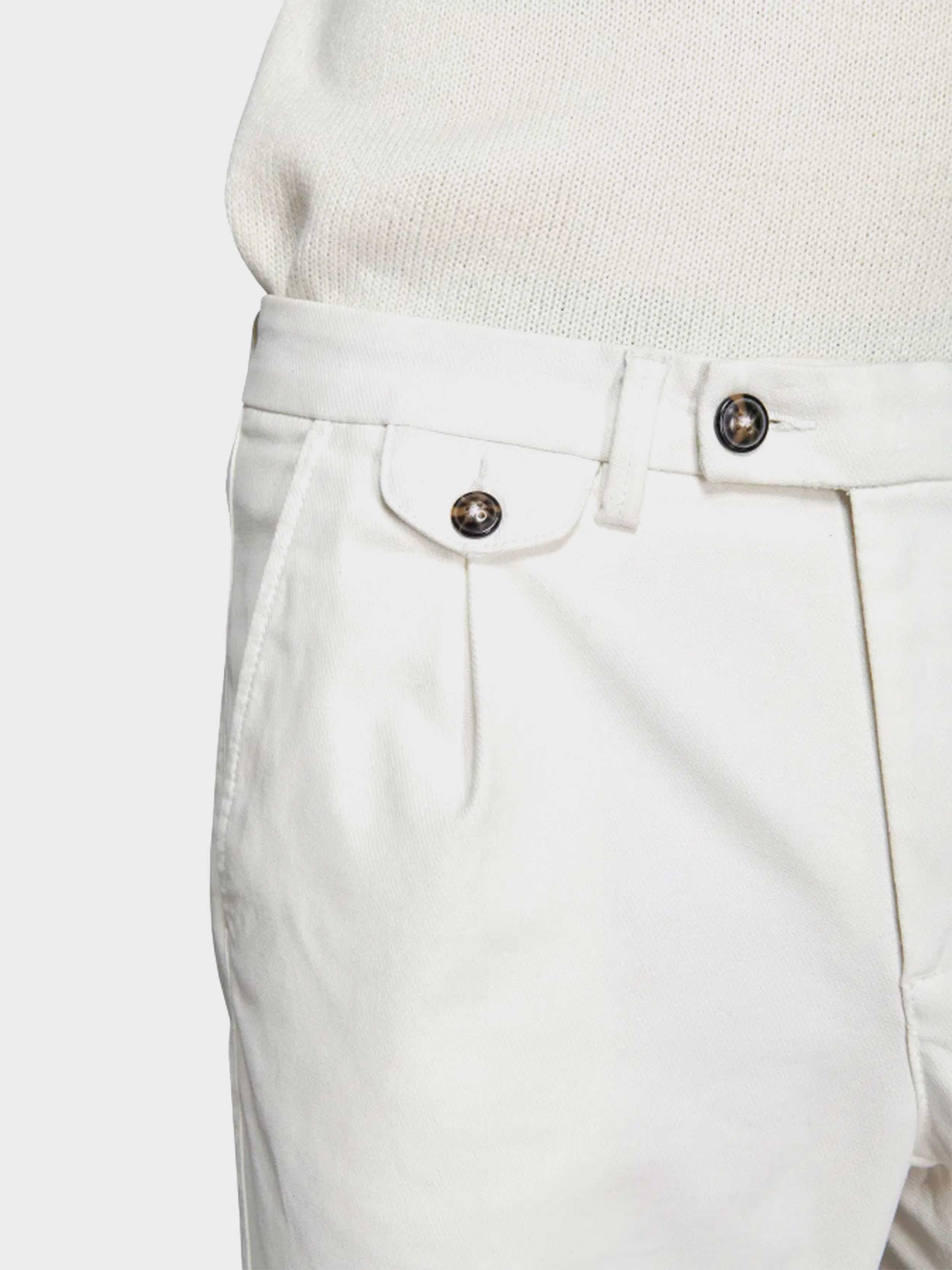 • Trousers in garment-washed Cavalry fabric. Slim fit with slant pockets, a small pocket, and posterior double-welt pockets. Pleated.