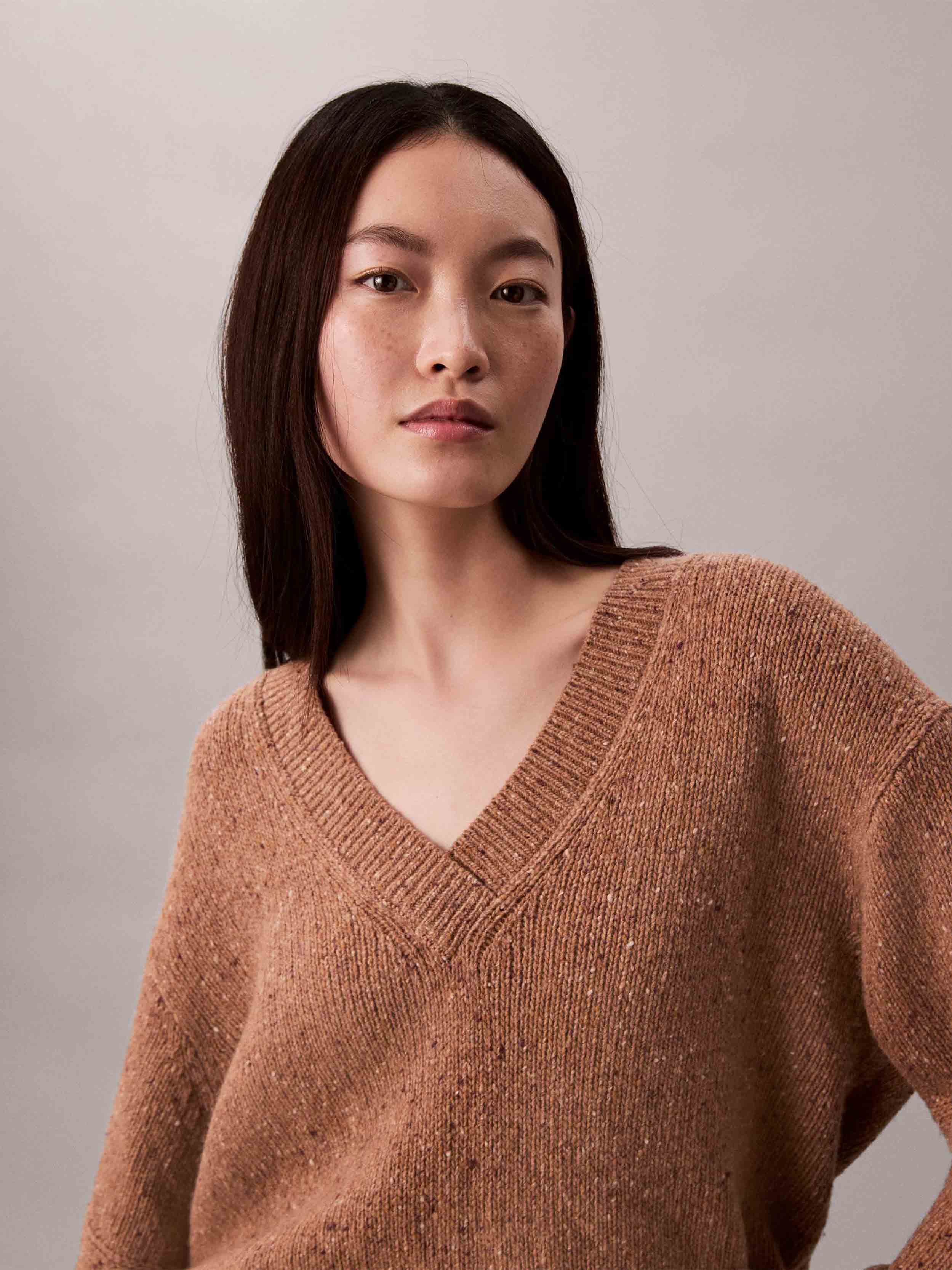 • Calvin Klein Jeans - Women's Chunky Neps V Neck Sweater