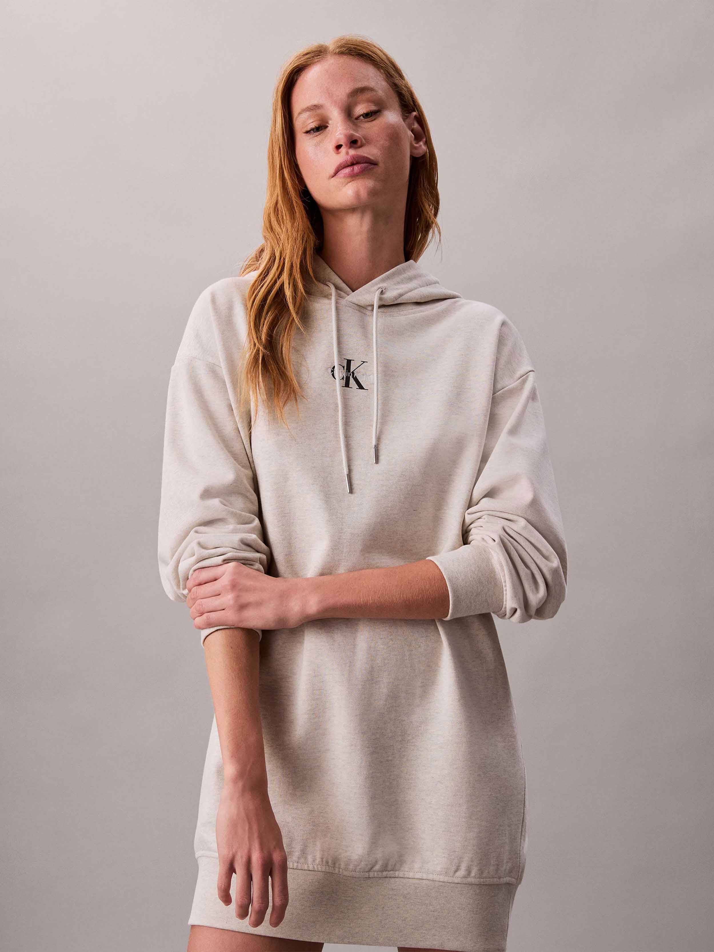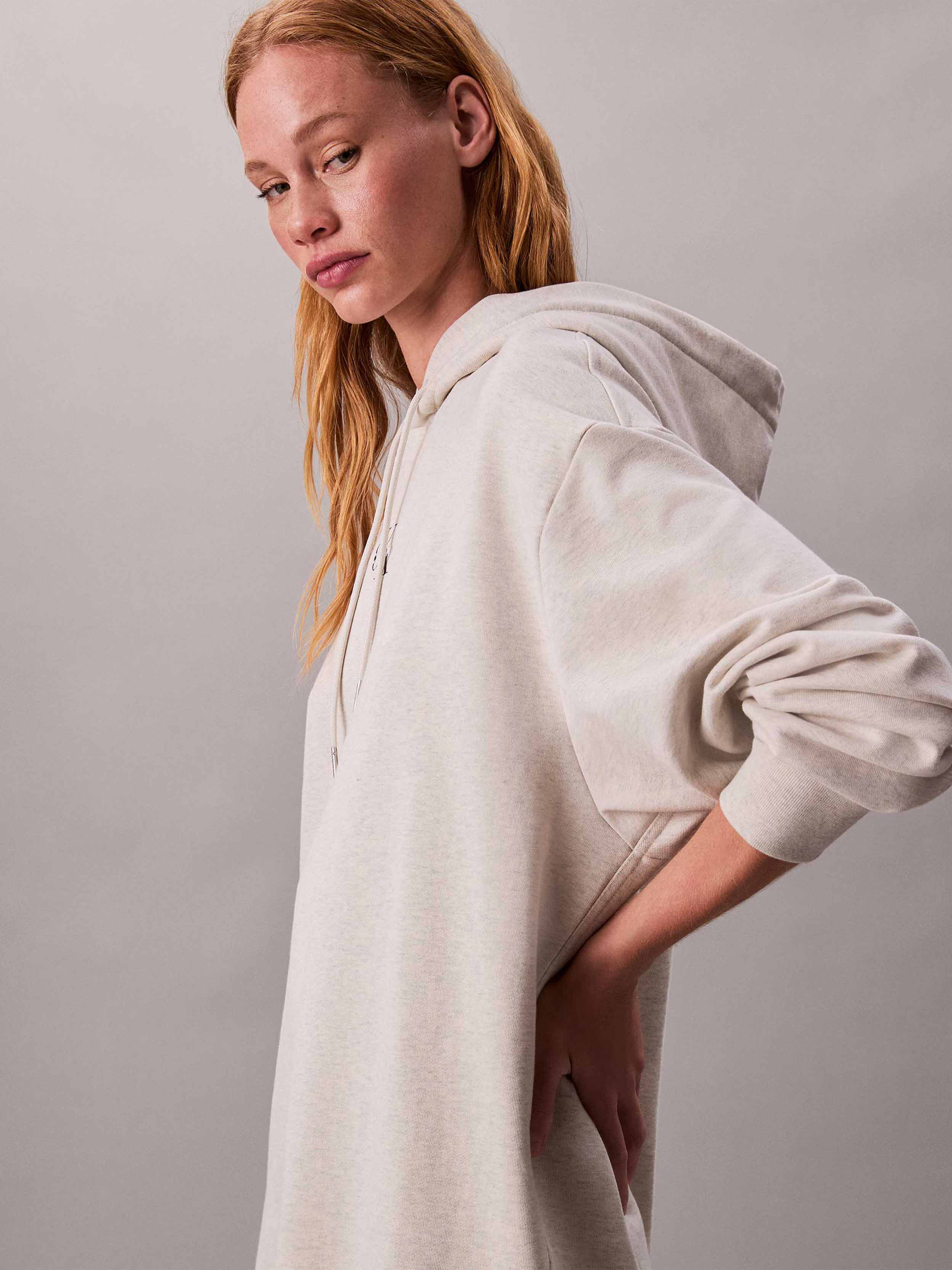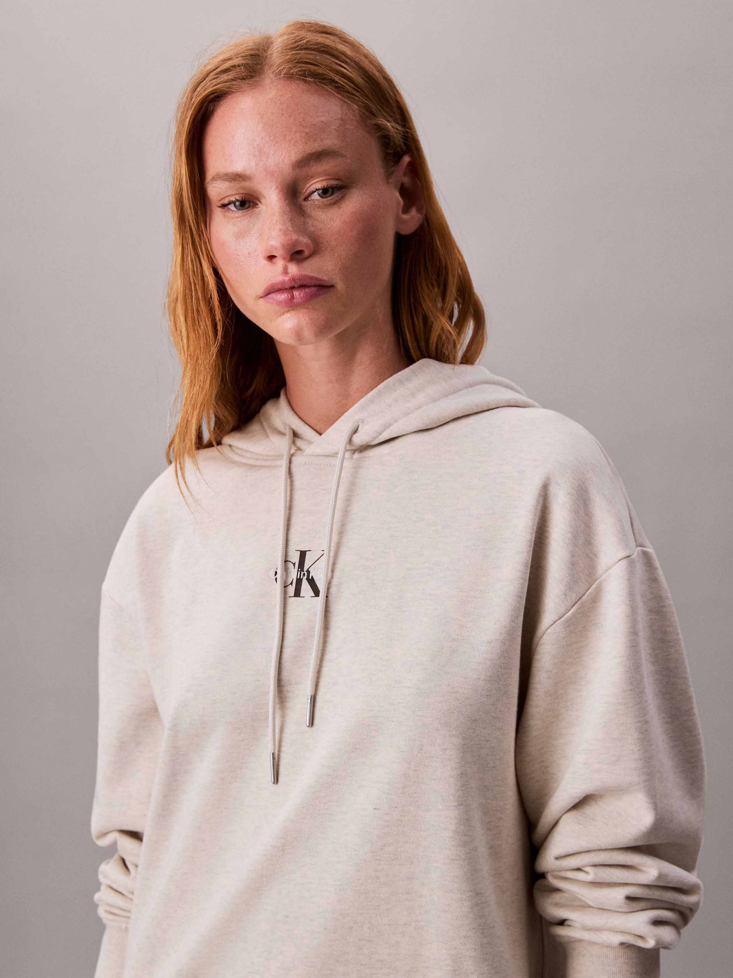 Calvin Klein - LS MONOLOGO PREMIUM TERRY HOODIE , L , Vanilla Heather , Style LV047D229G