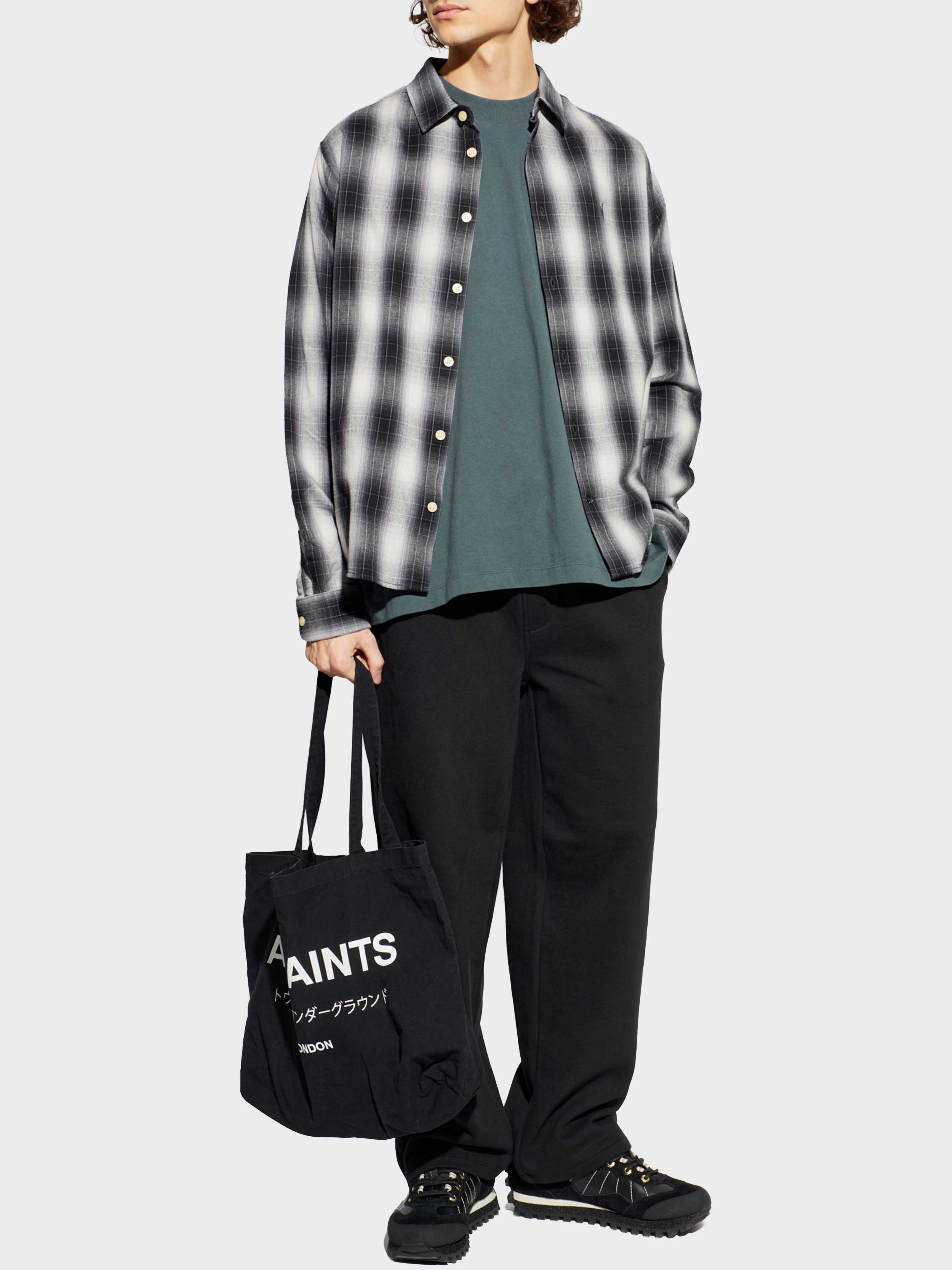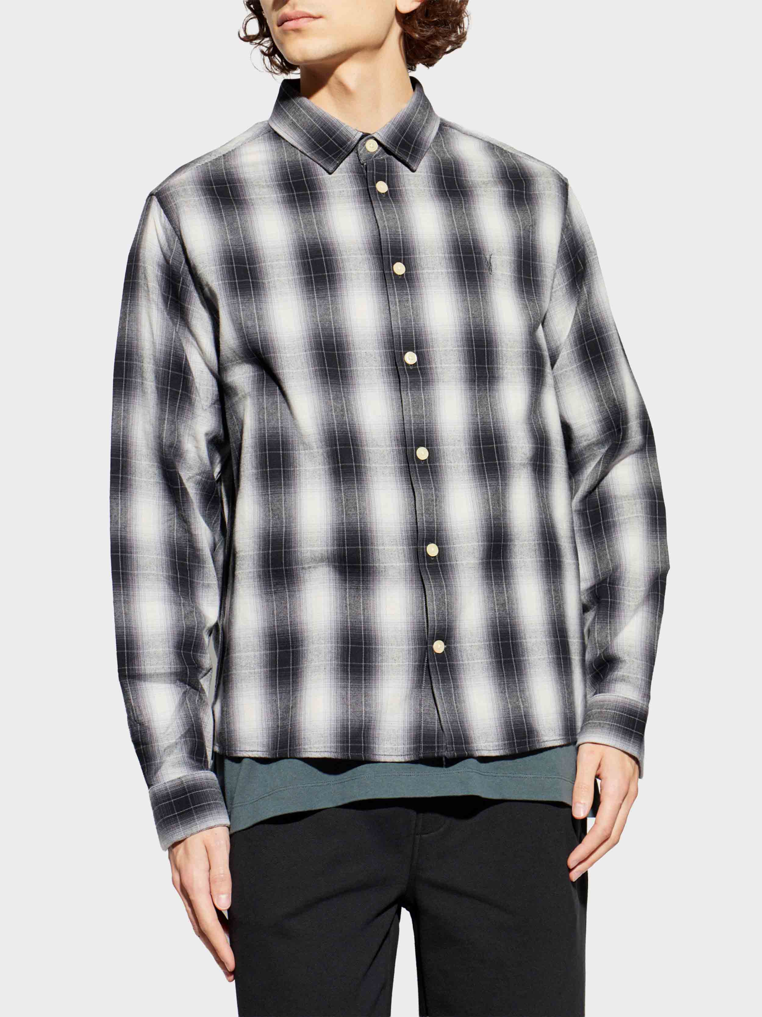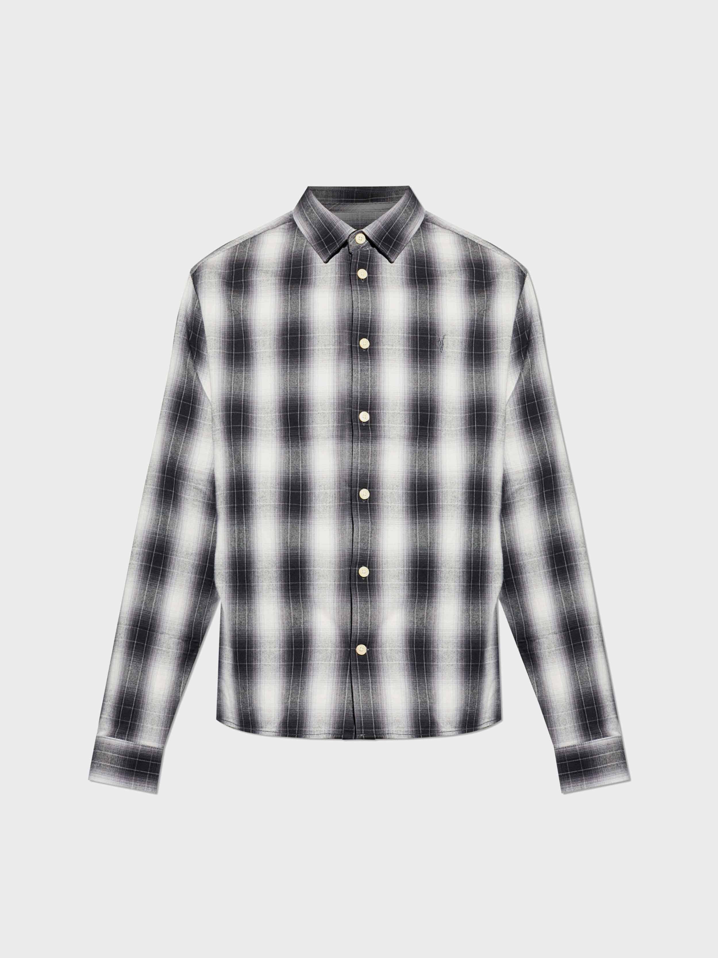 • The Holborn Shirt by AllSaints epitomizes understated sophistication. Rendered in a refined palette of greys with nuanced transitions of white and black, its blurred plaid pattern offers a modern take on timeless casual elegance. Crafted from exquisitely soft cotton, the fabric features a matte, subtly flannel-like finish that exudes both comfort and distinction. This classic men’s shirt showcases a regular fit, traditional collar, long sleeves with button cuffs, and a seamless front accented by contrasting light buttons.
