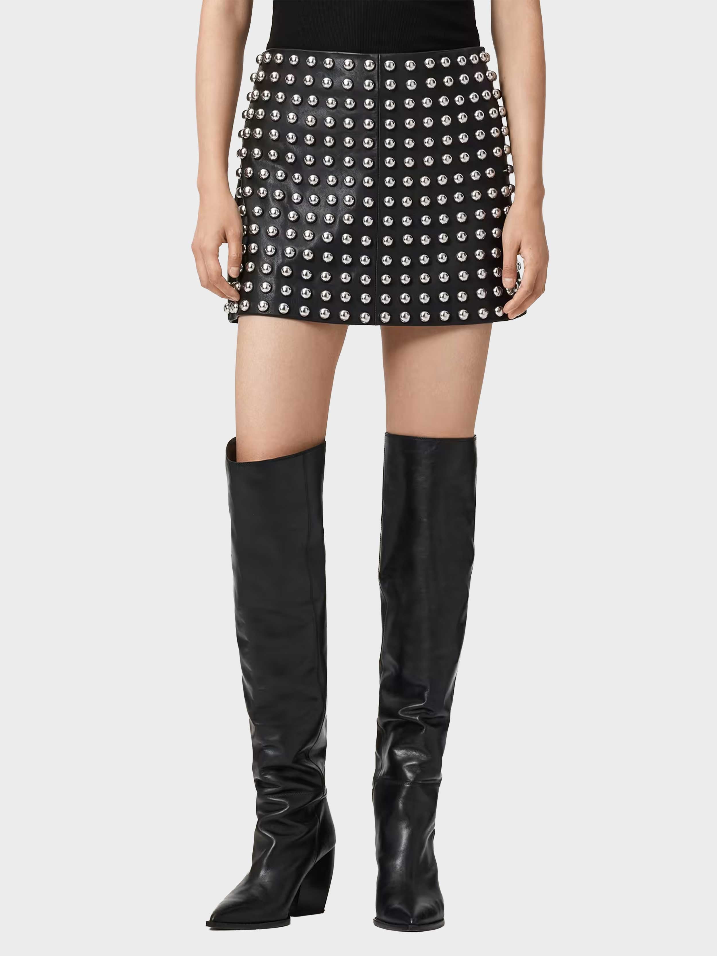 • AllSaints - Women's Lea Studded Leather Mini Skirt