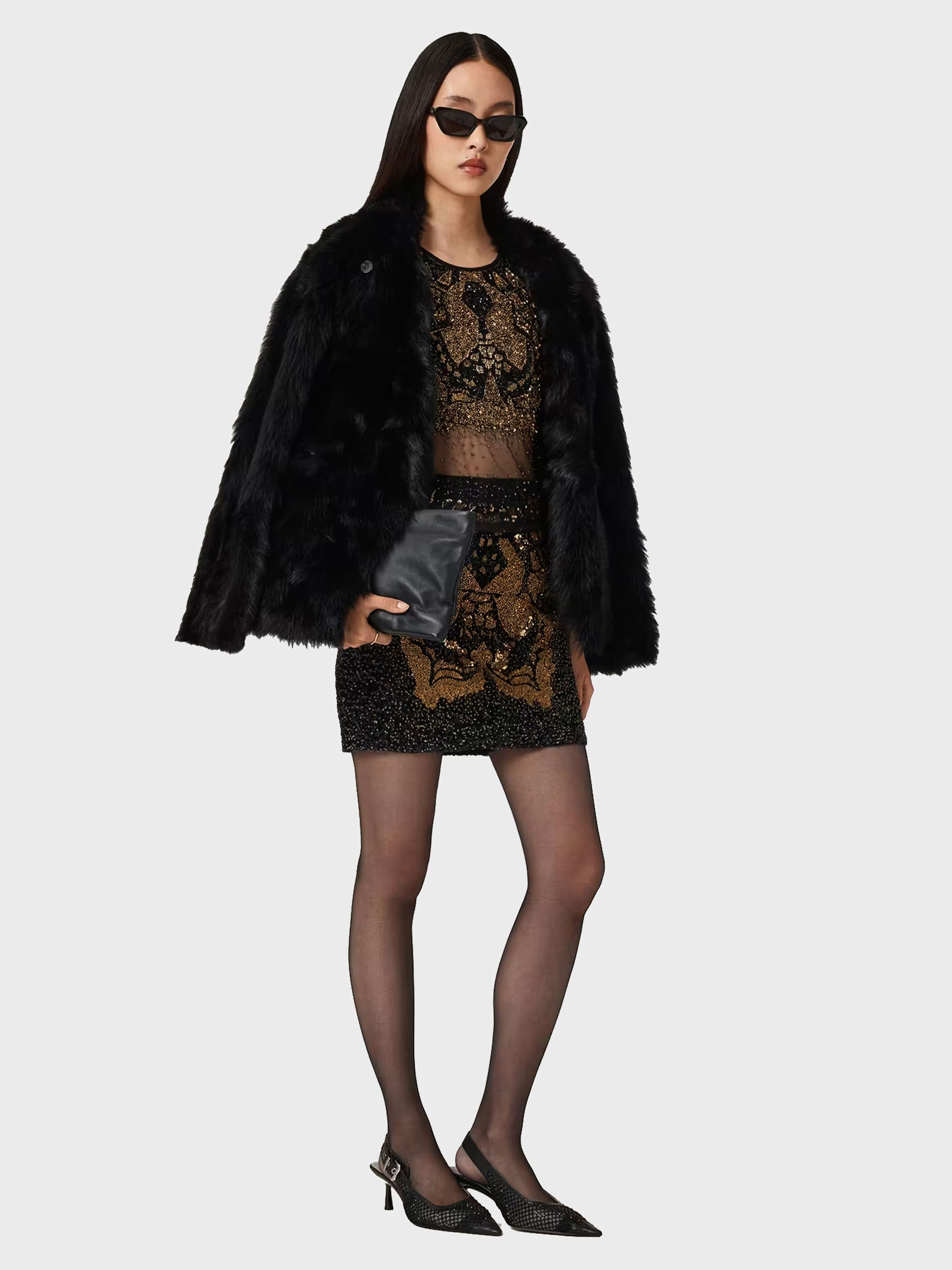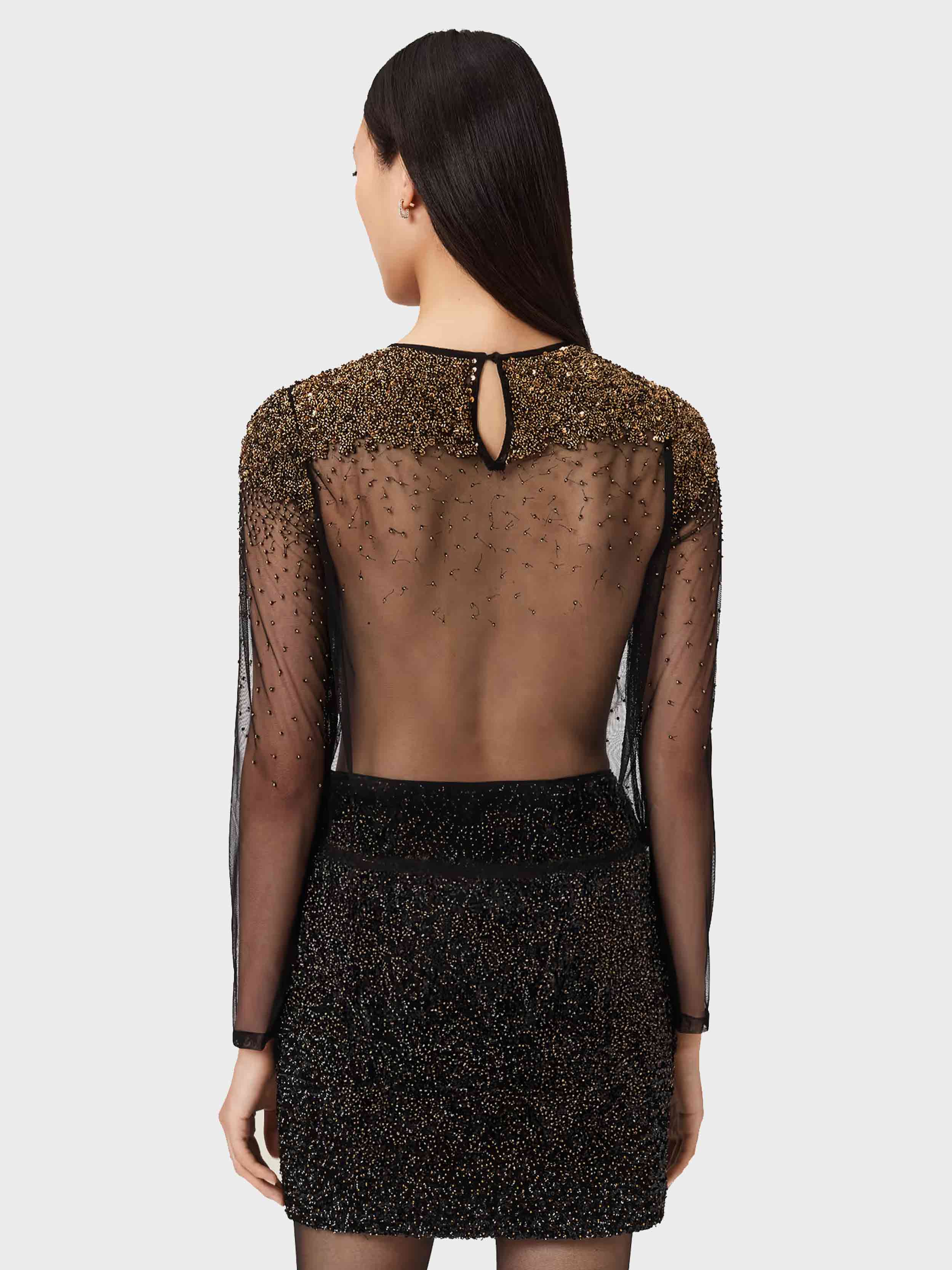 AllSaints - GRETA EMB TOP , UK 12/US 8 , BLACK/GOLD , Style W090PD