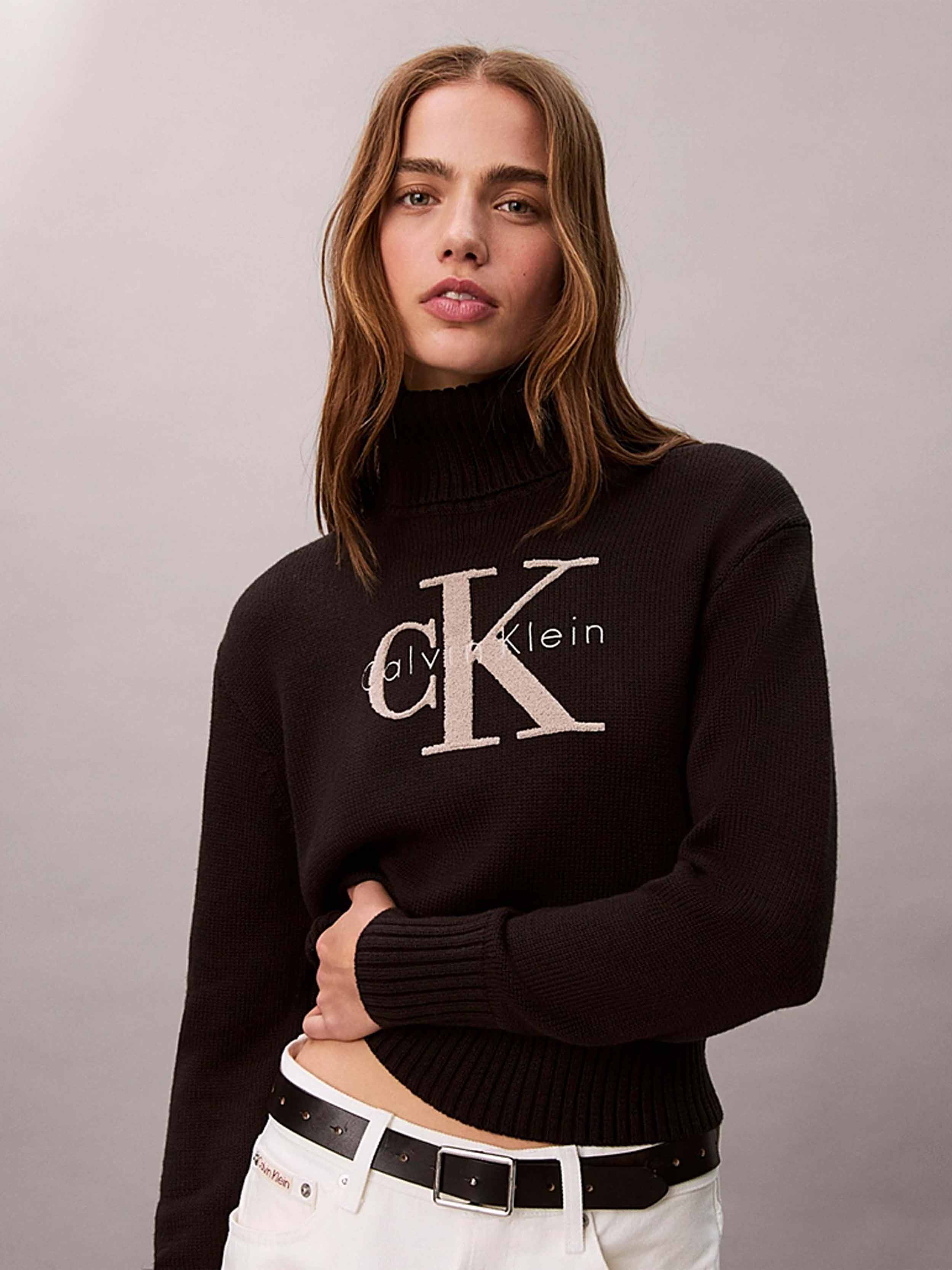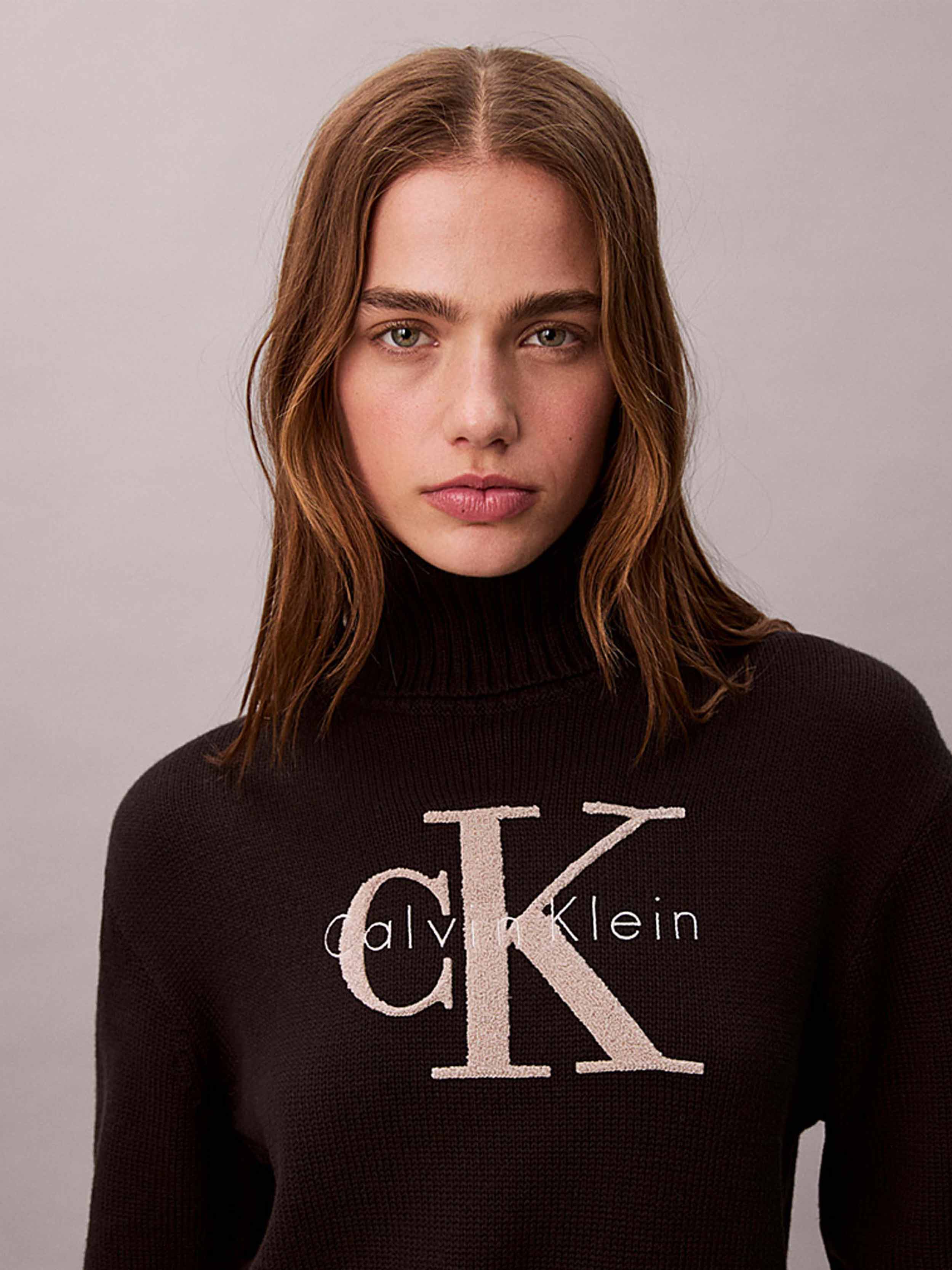 Calvin Klein - CHENILLE MONOLOGO SWEATER , S , Black , Style LV047D354G