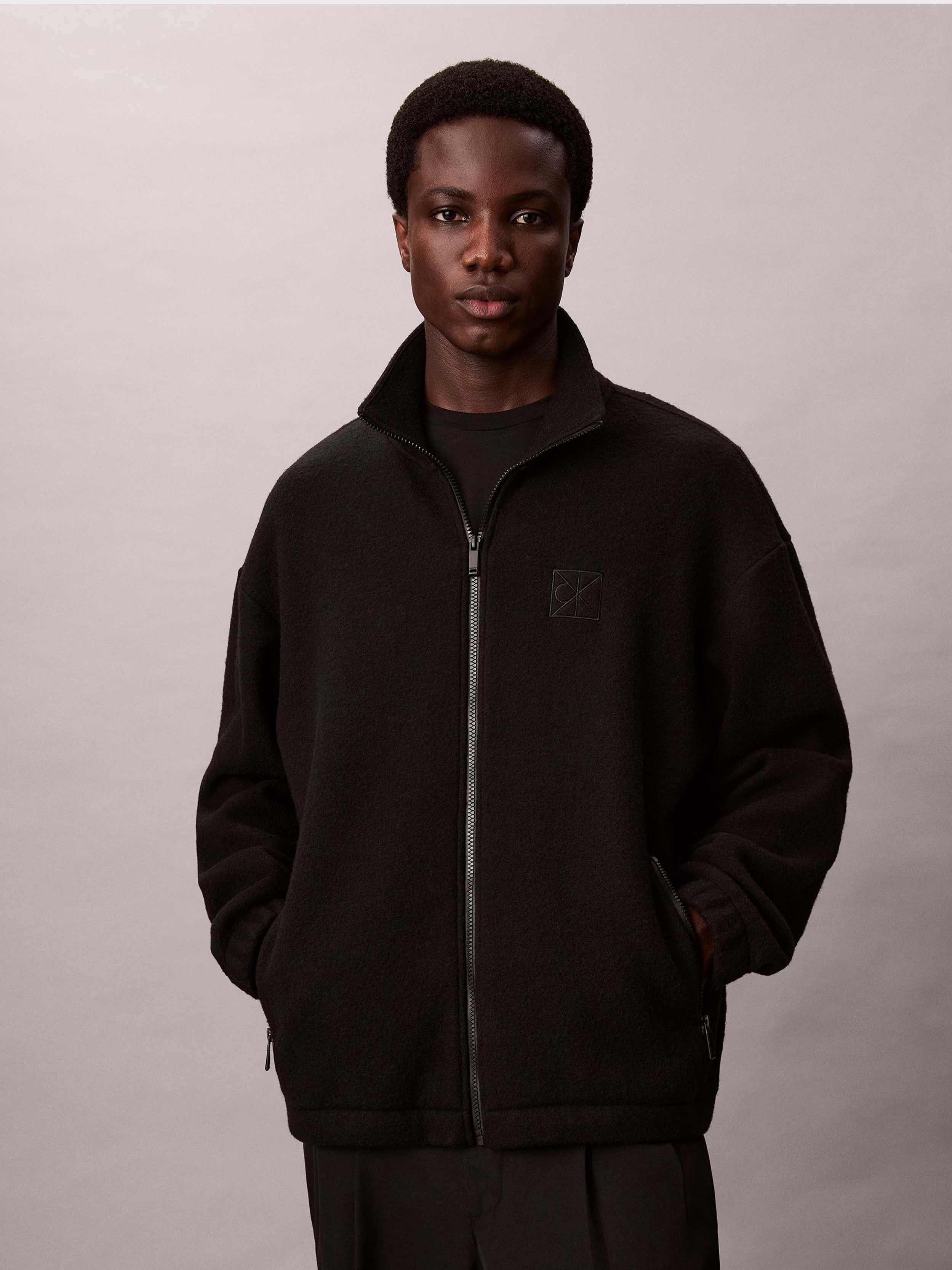 Calvin Klein - WOOL BLEND POLAR FLEECE JACKET , L , Black , Style LV04LD218G
