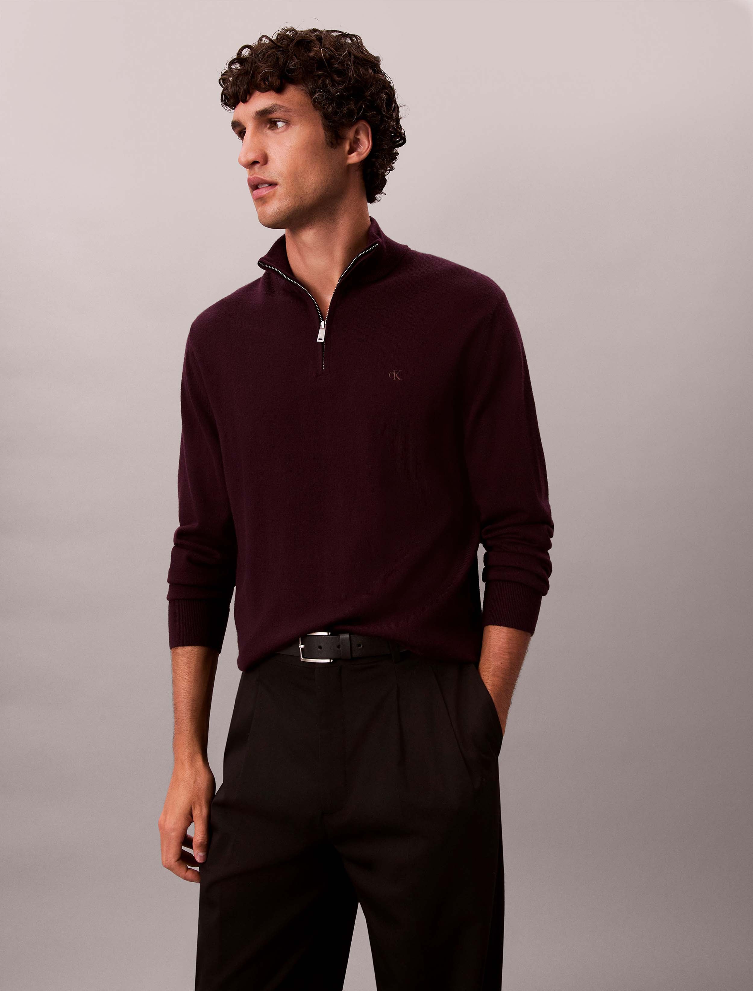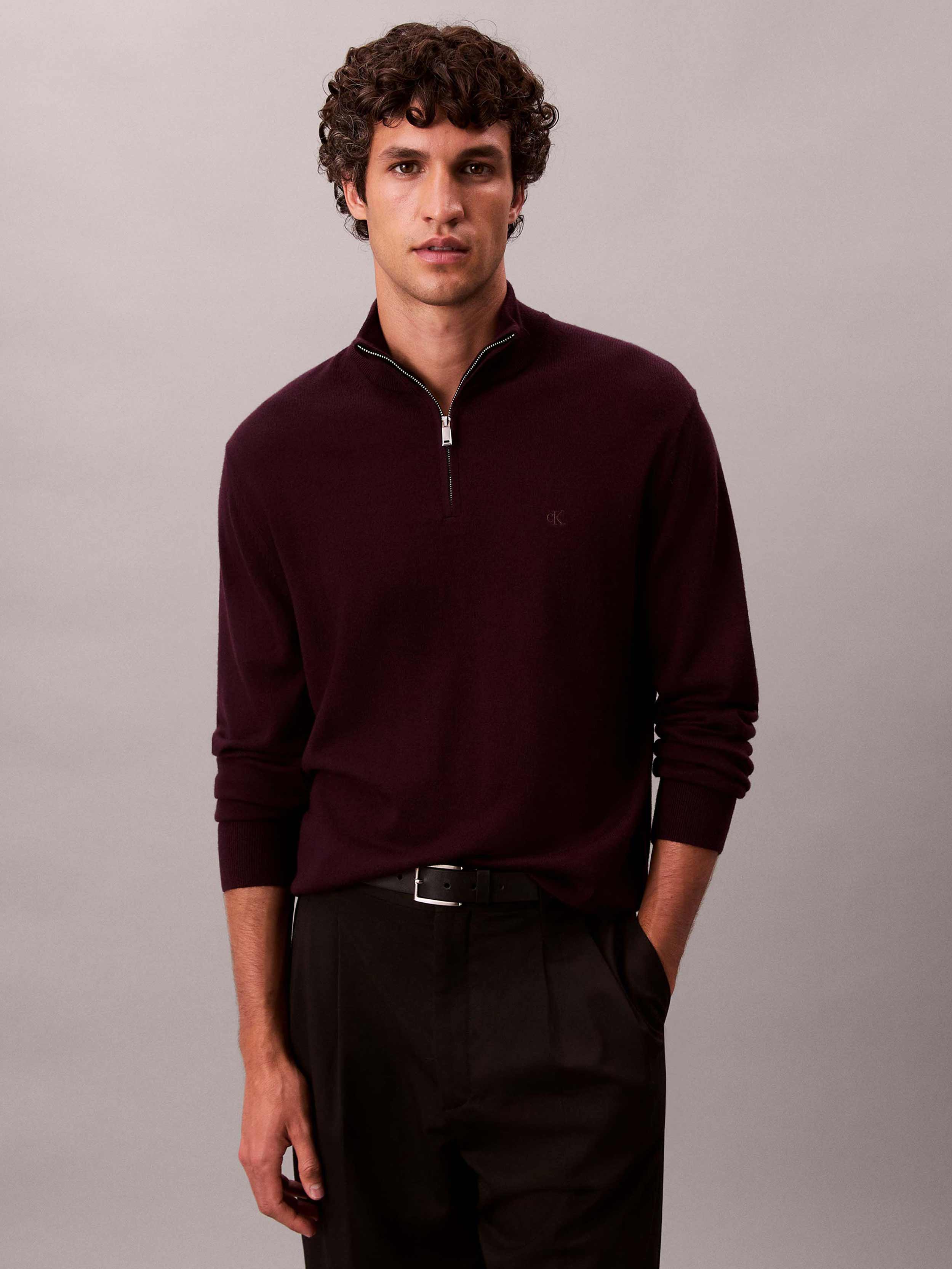 Calvin Klein - LS 100% MERINO QZ 14GG , L , Moroccan Brown , Style LV04LD318G