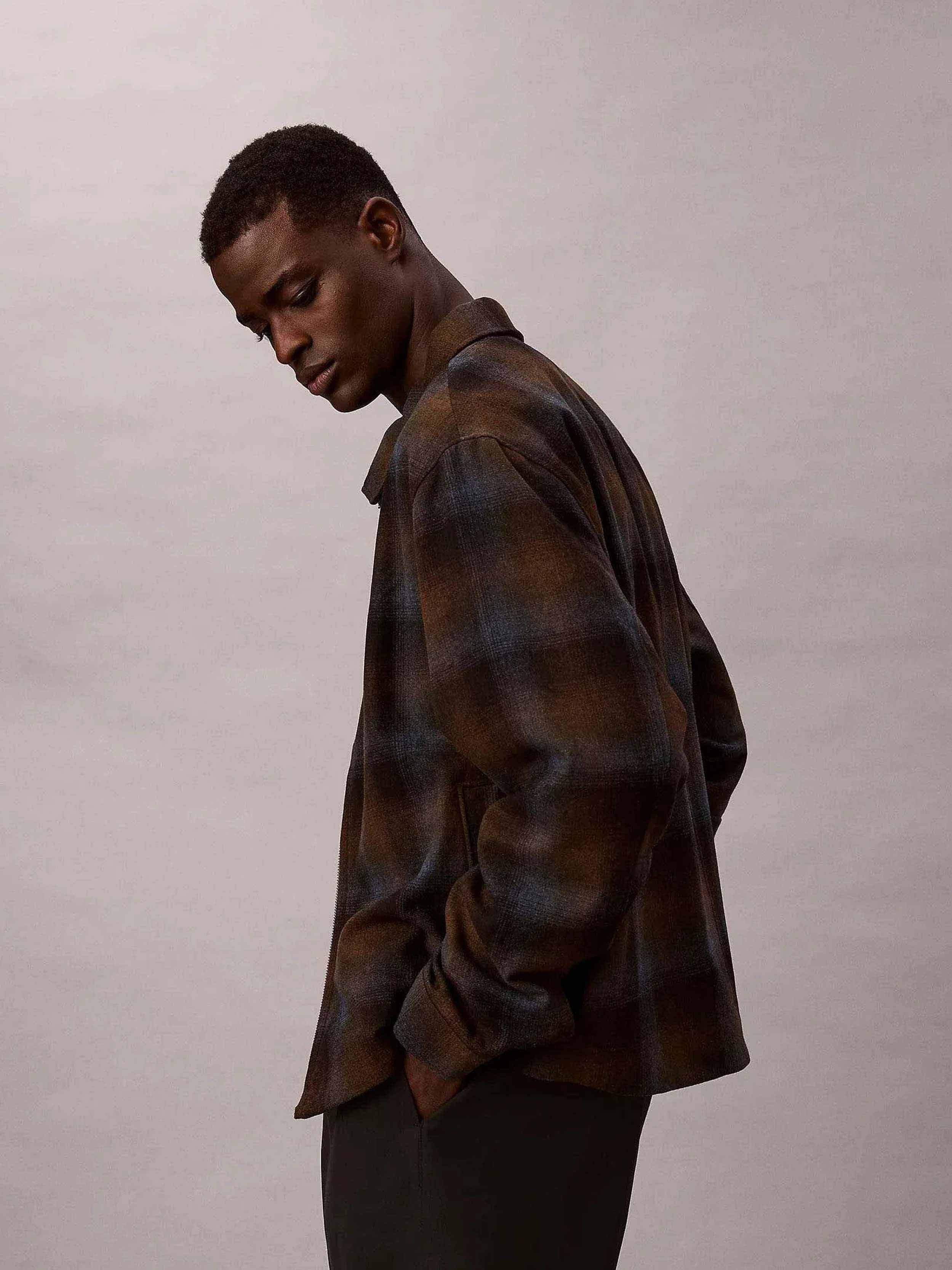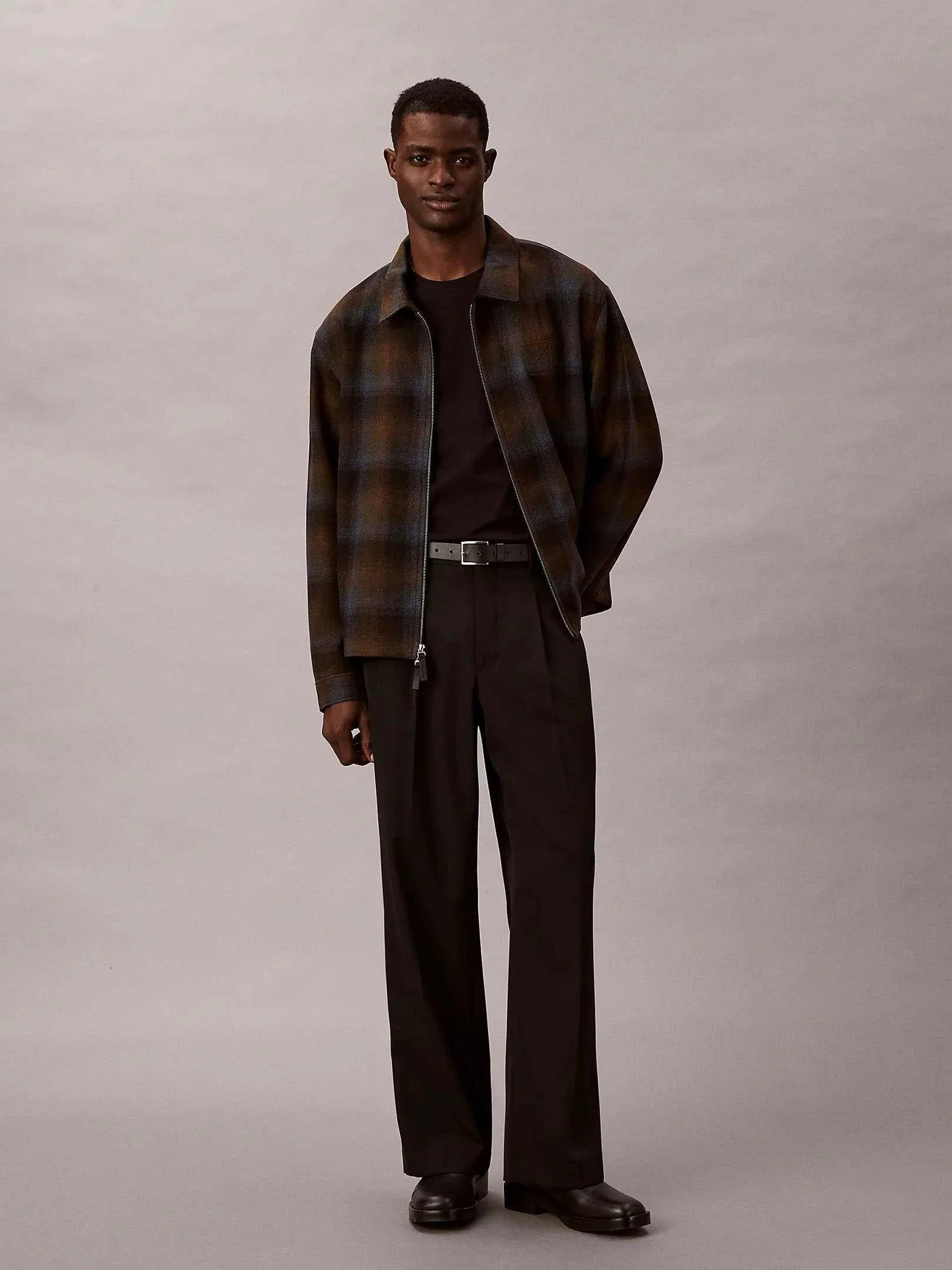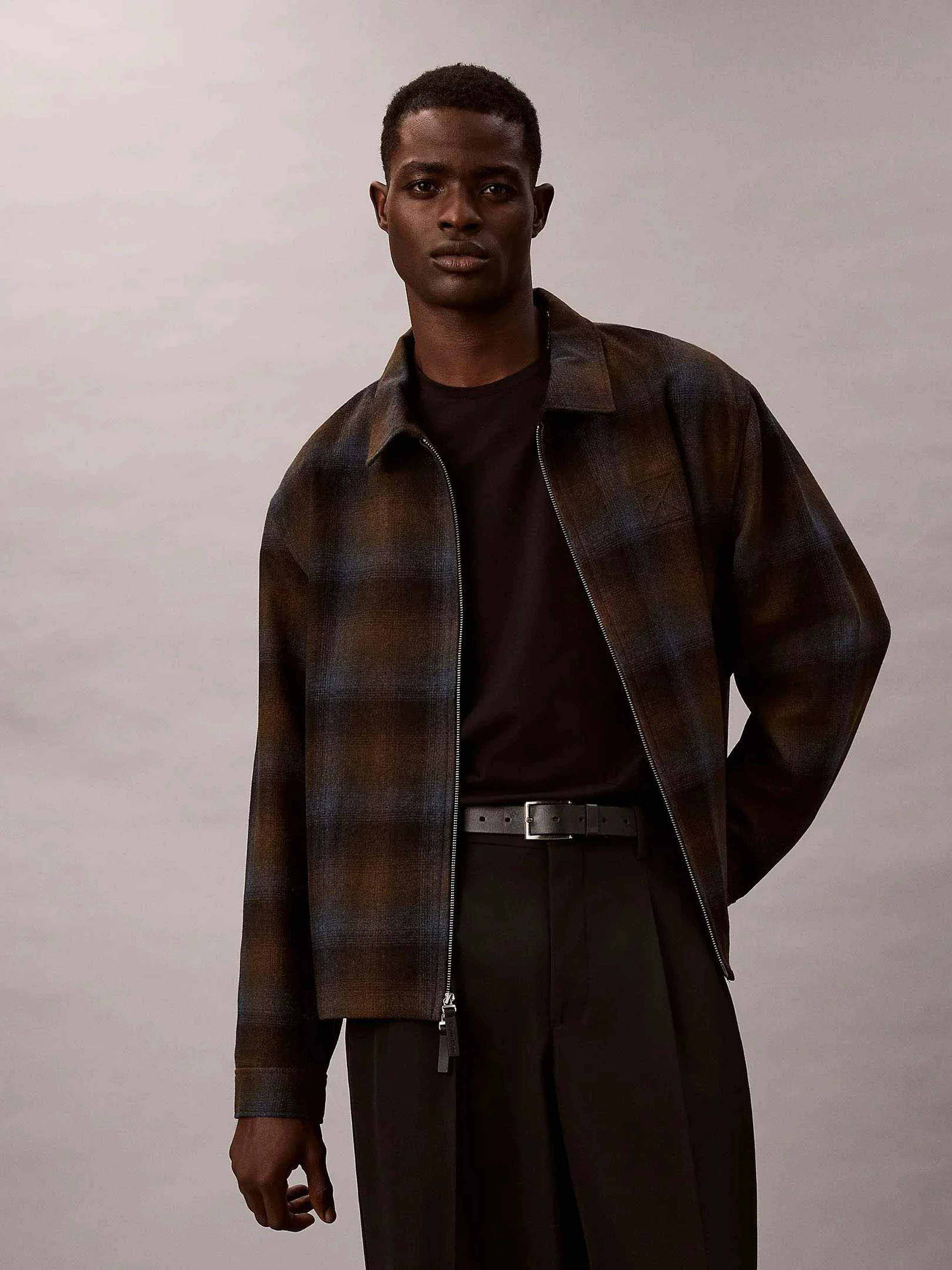 • Calvin Klein Jeans - Men's Yarn-Dyed Wool Blend Flannel Zip Jacket