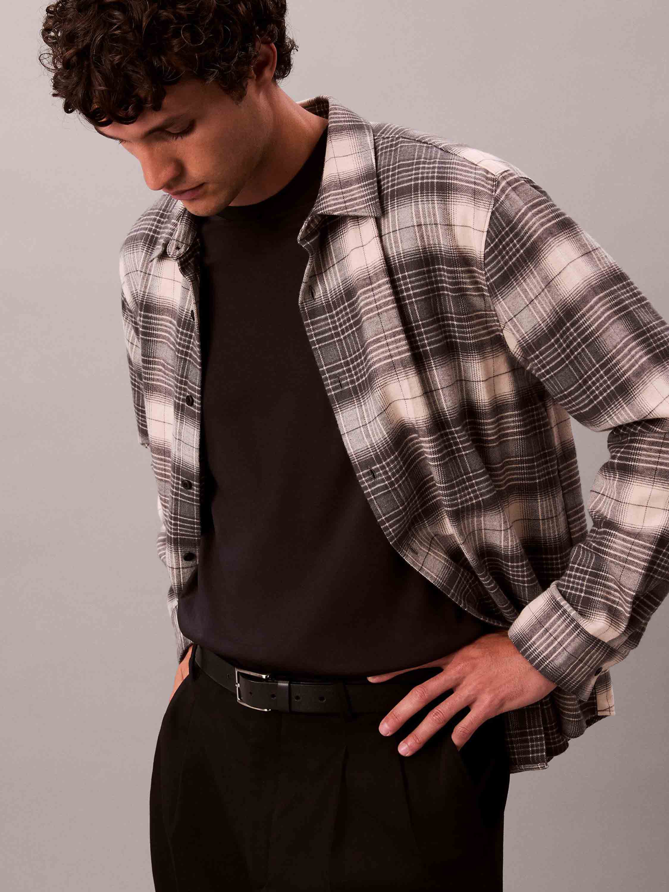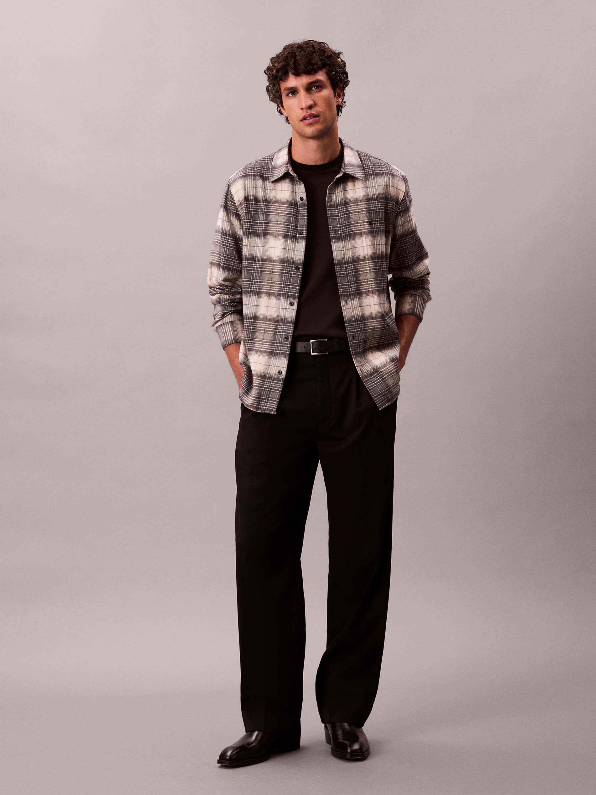 Calvin Klein - LS BRUSHED PLAID EASY SHIRT , S , Black , Style LV04RD105G