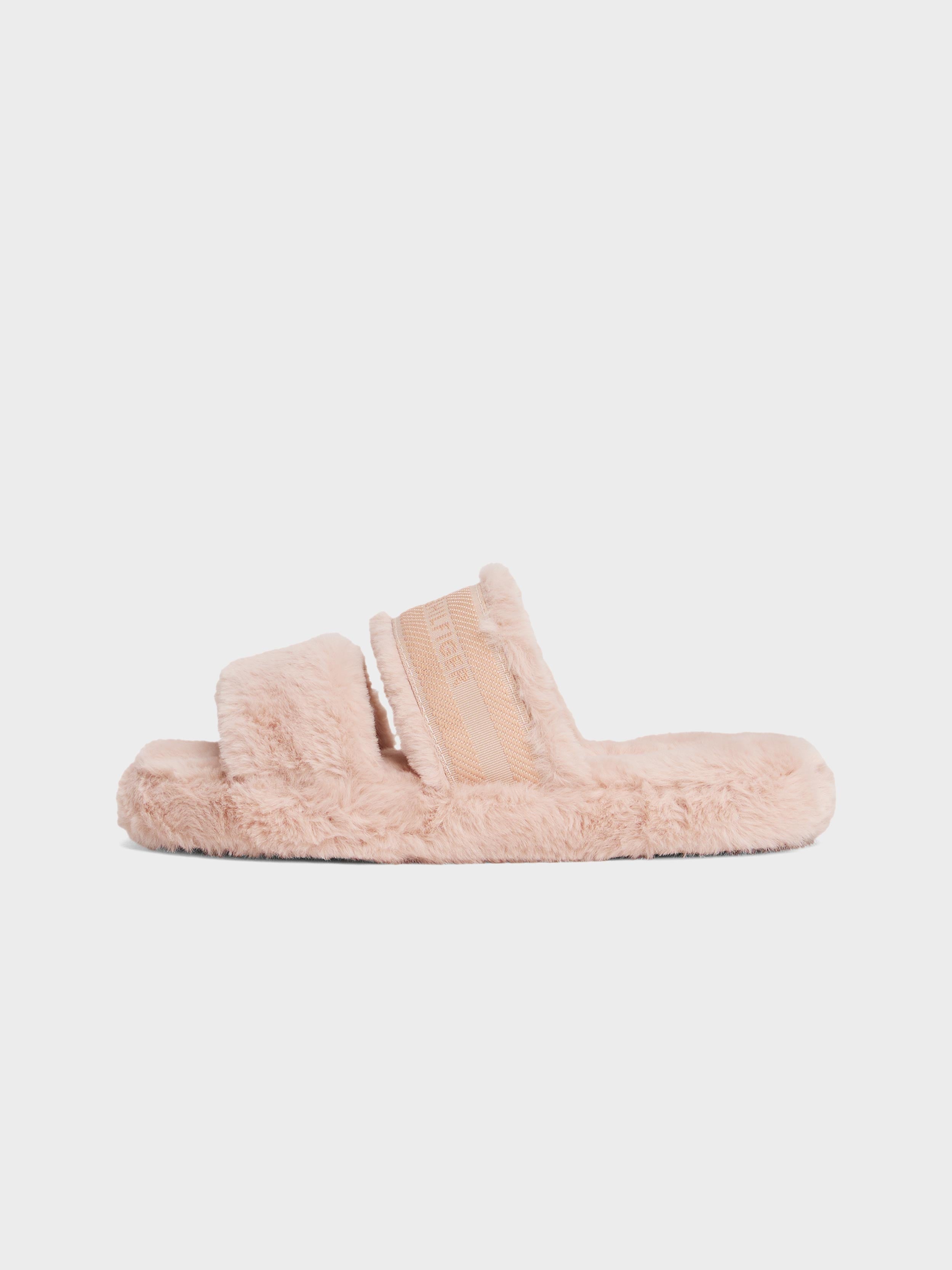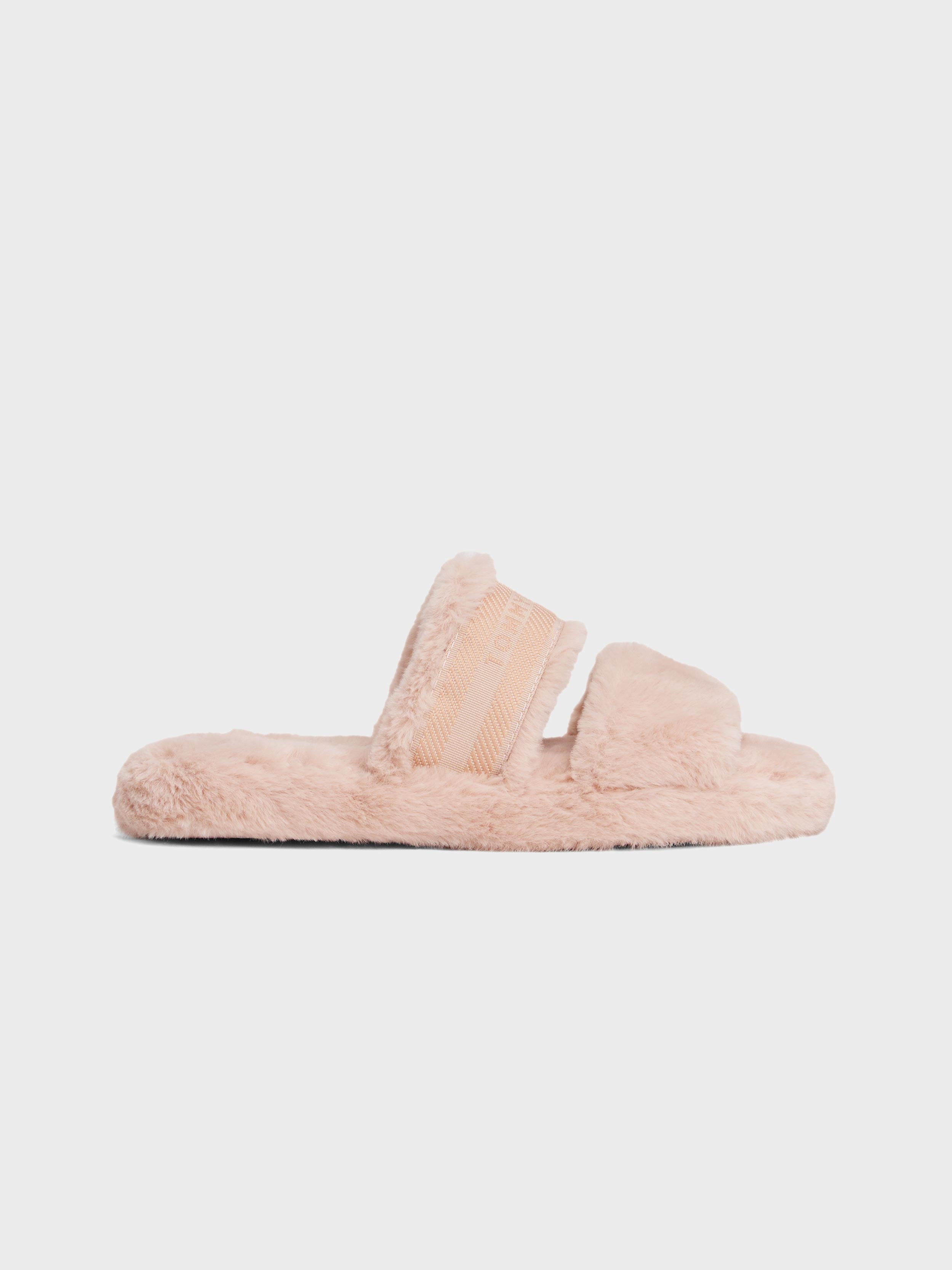 • Tommy Hilfiger - Women's Faux Fur Woven Logo Slippers