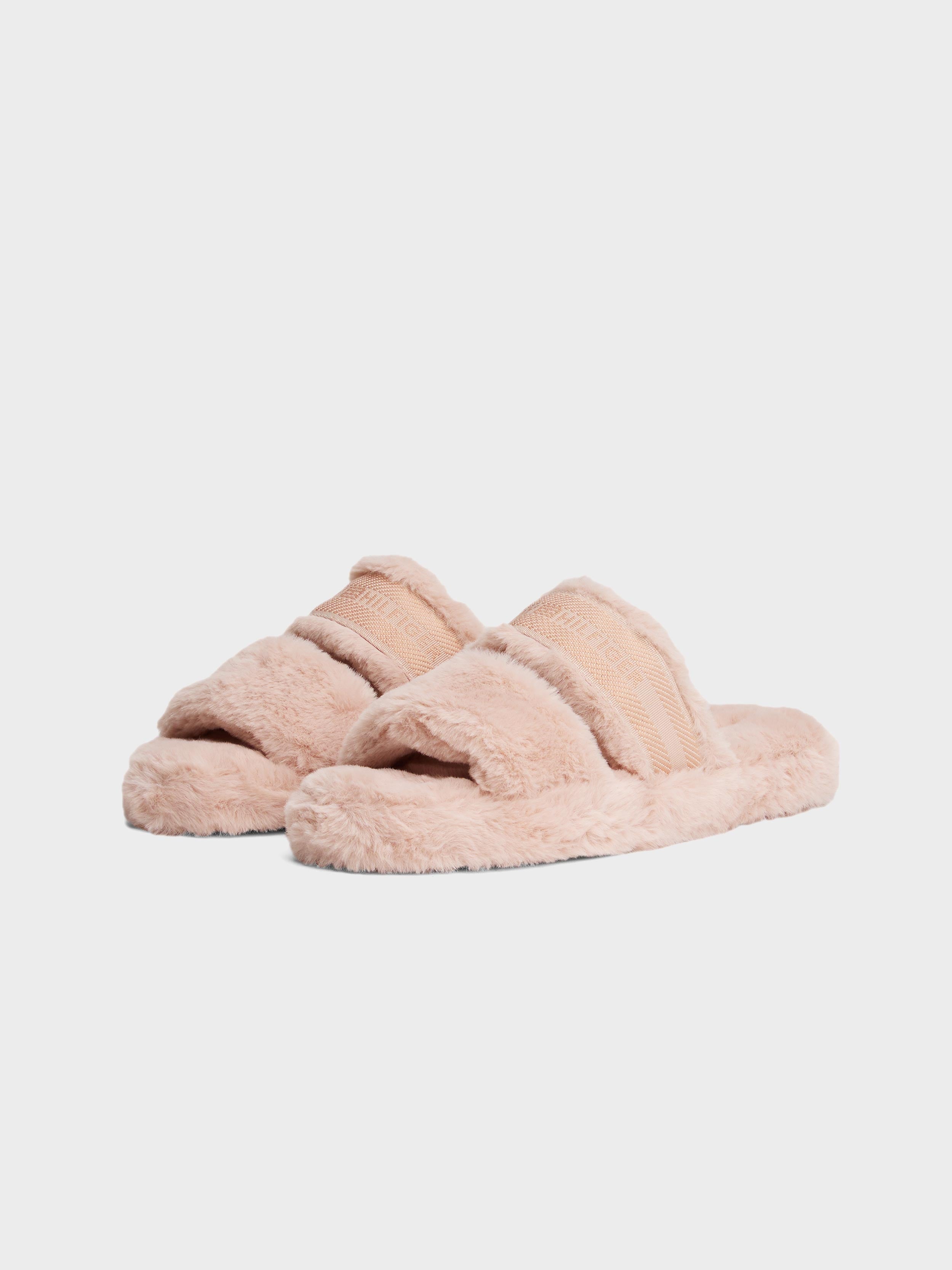 Tommy Hilfiger - Women's Faux Fur Woven Logo Slippers