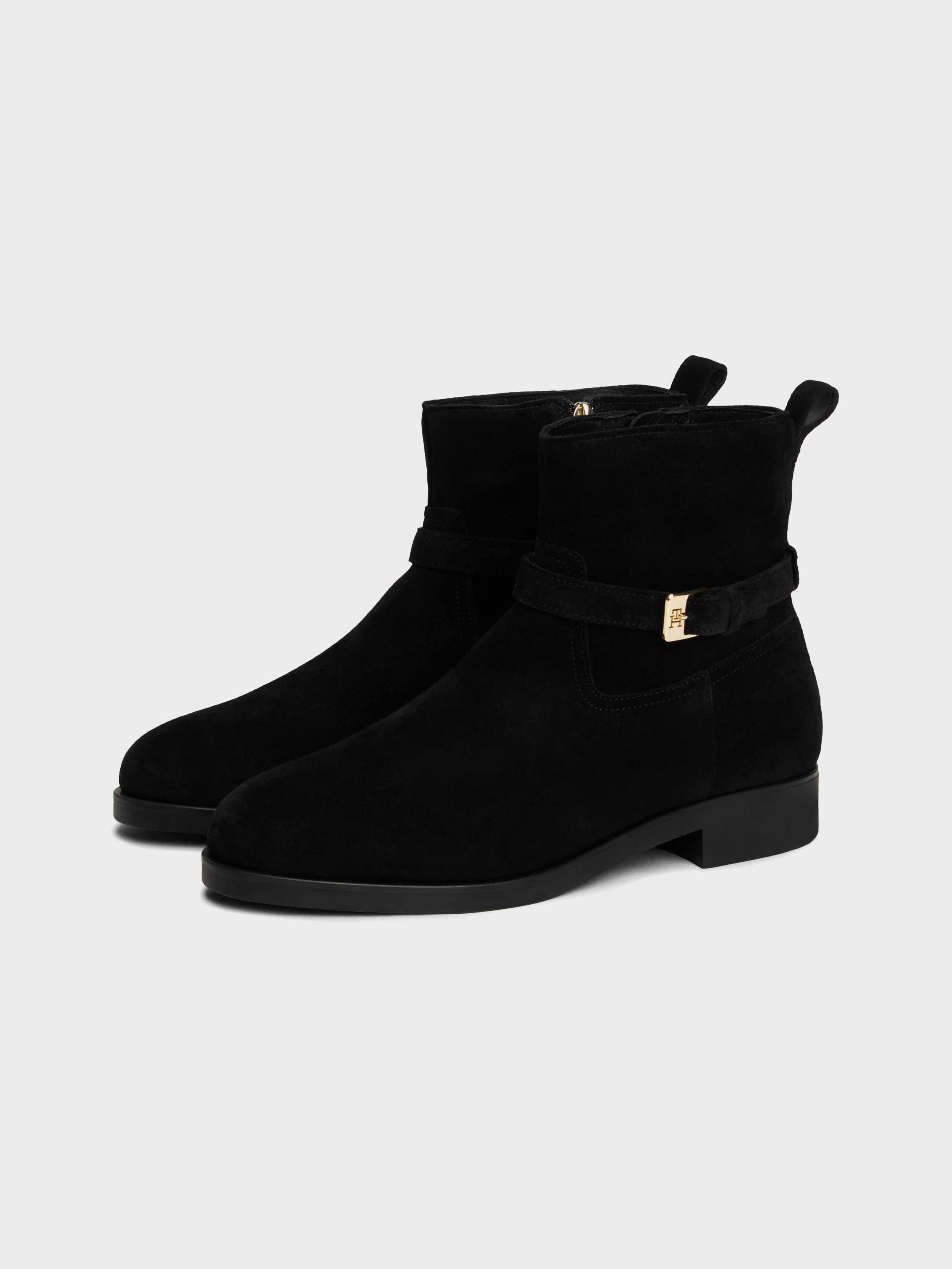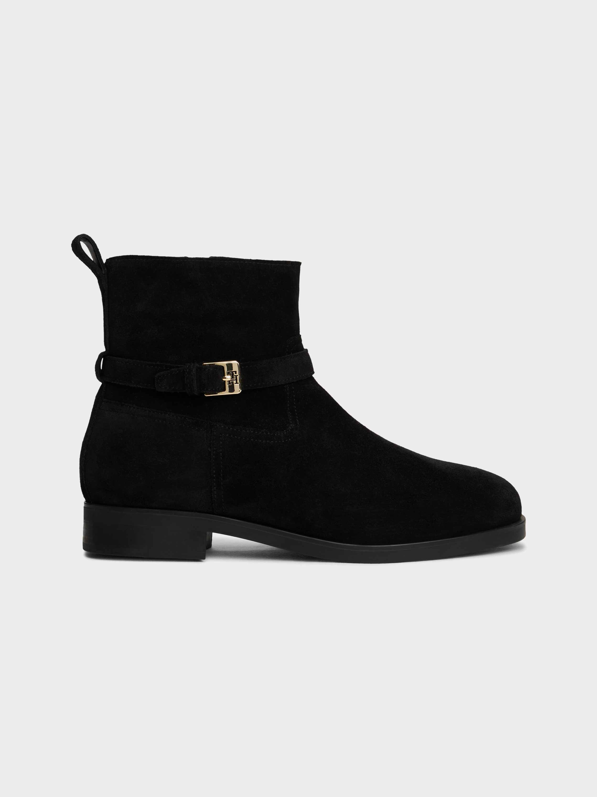 Tommy Hilfiger - TH BUCKLE RIDING SUEDE BOOTIE , 36 , Black , Style FW0FW09047