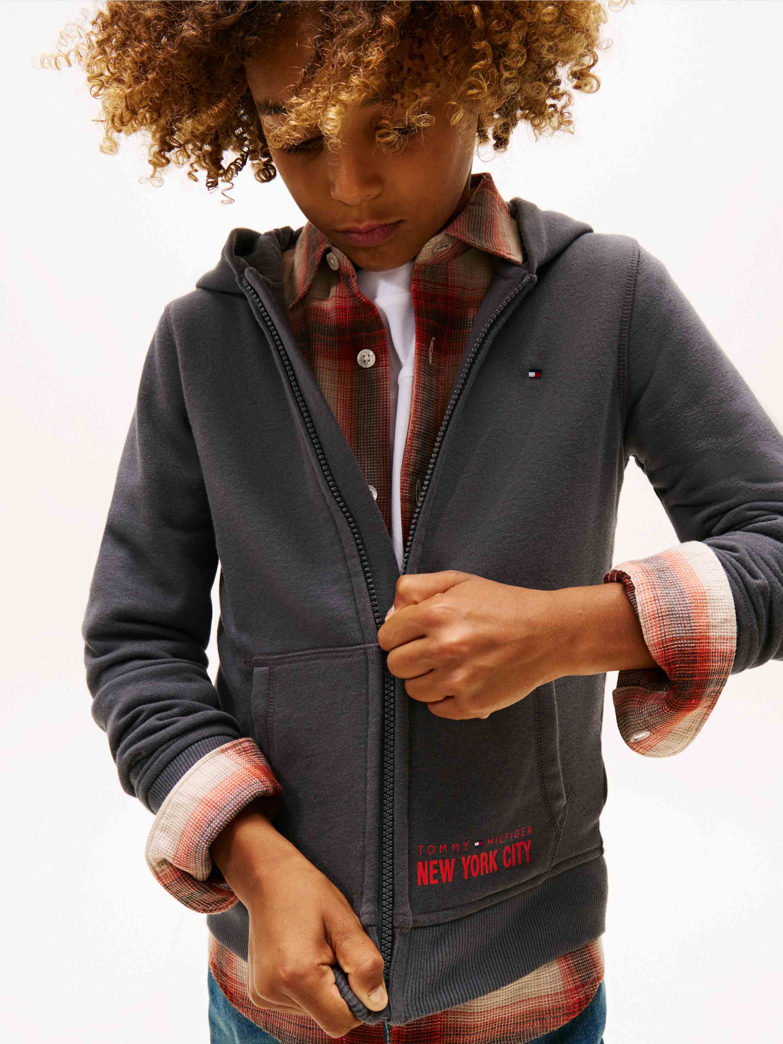 Tommy Hilfiger - NYC PRINT ZIPTHROUGH HOODIE , 8 , WASHED BLACK , Style KB0KB09894
