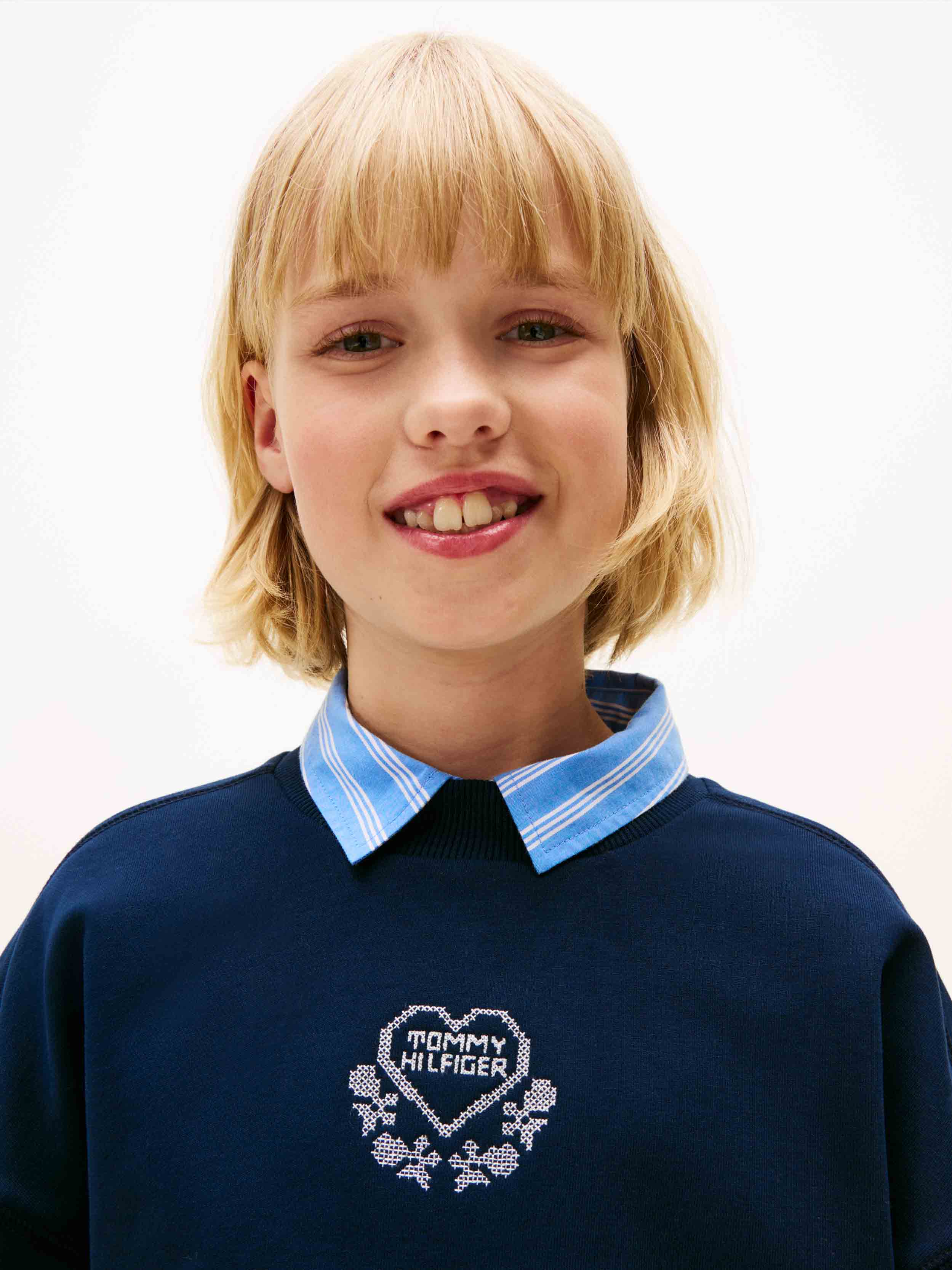 Tommy Hilfiger - EMBROIDERED HEART SWEATSHIRT , 10 , Dark Night Navy , Style KG0KG08782