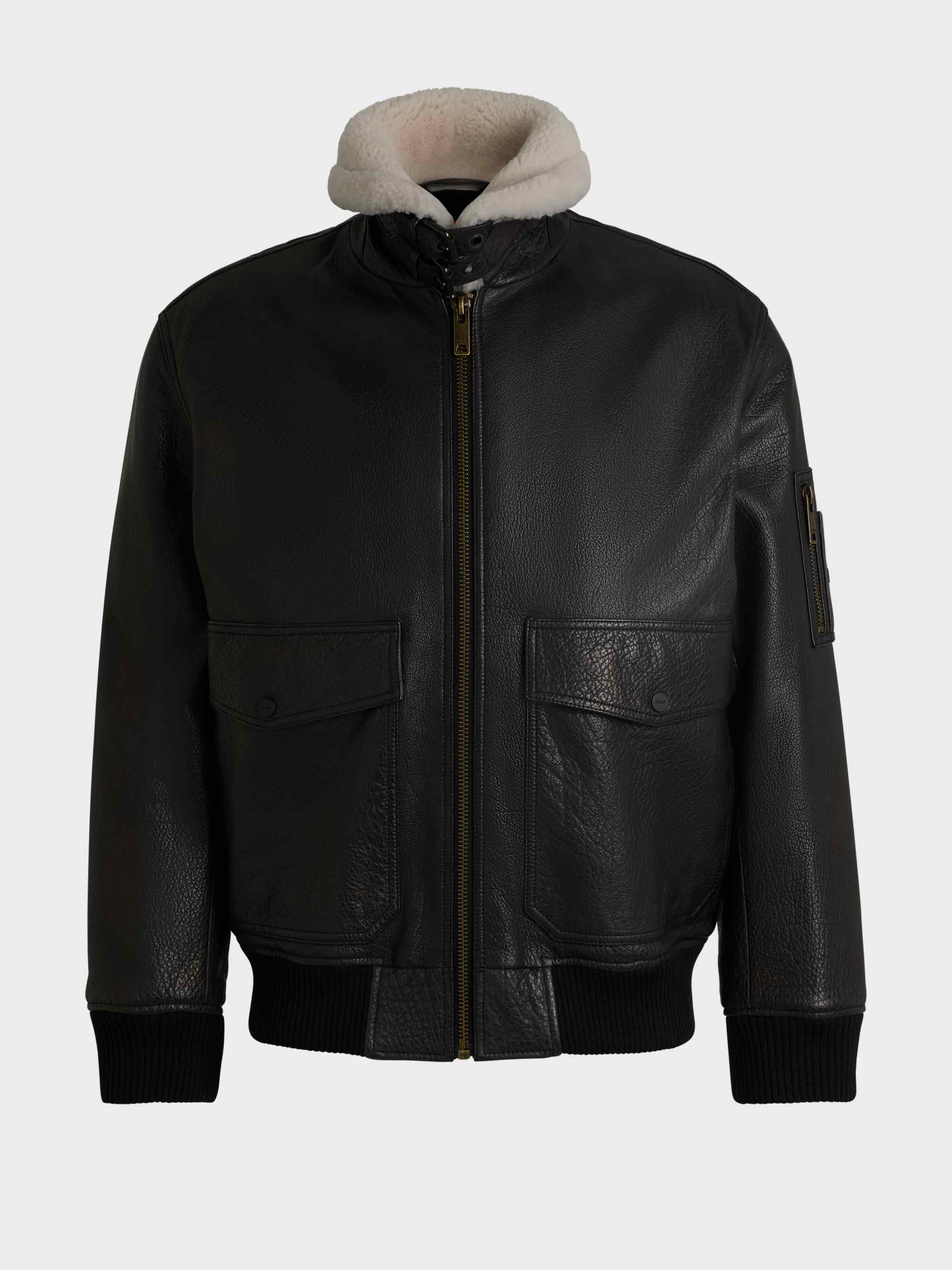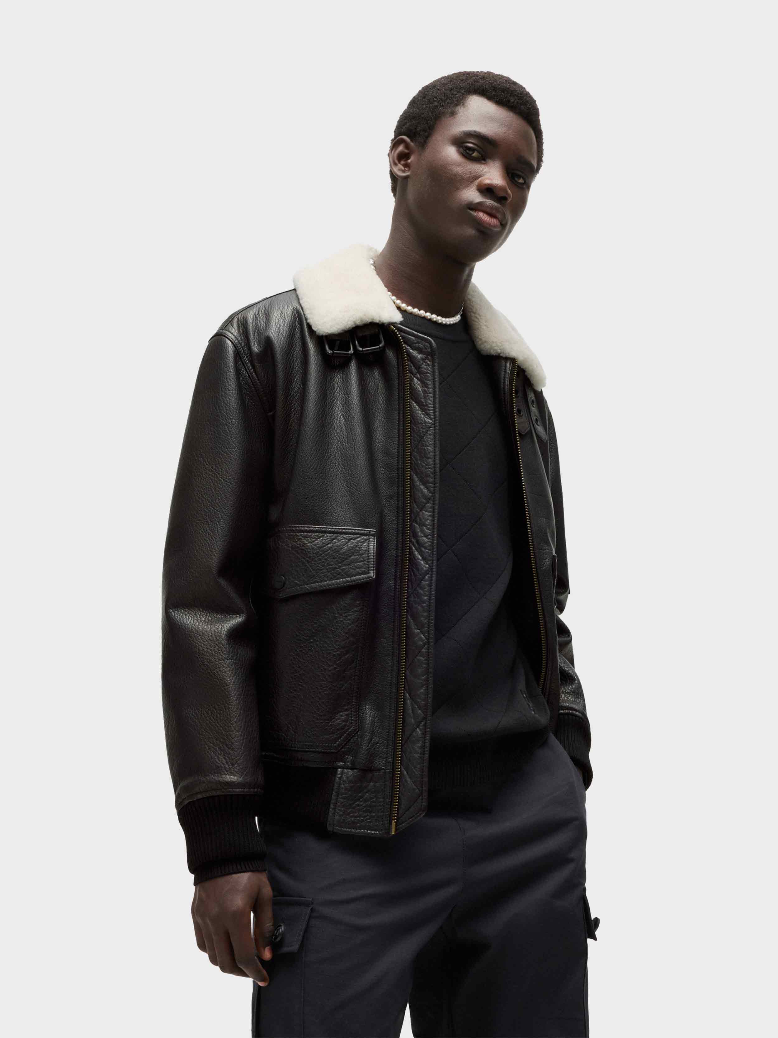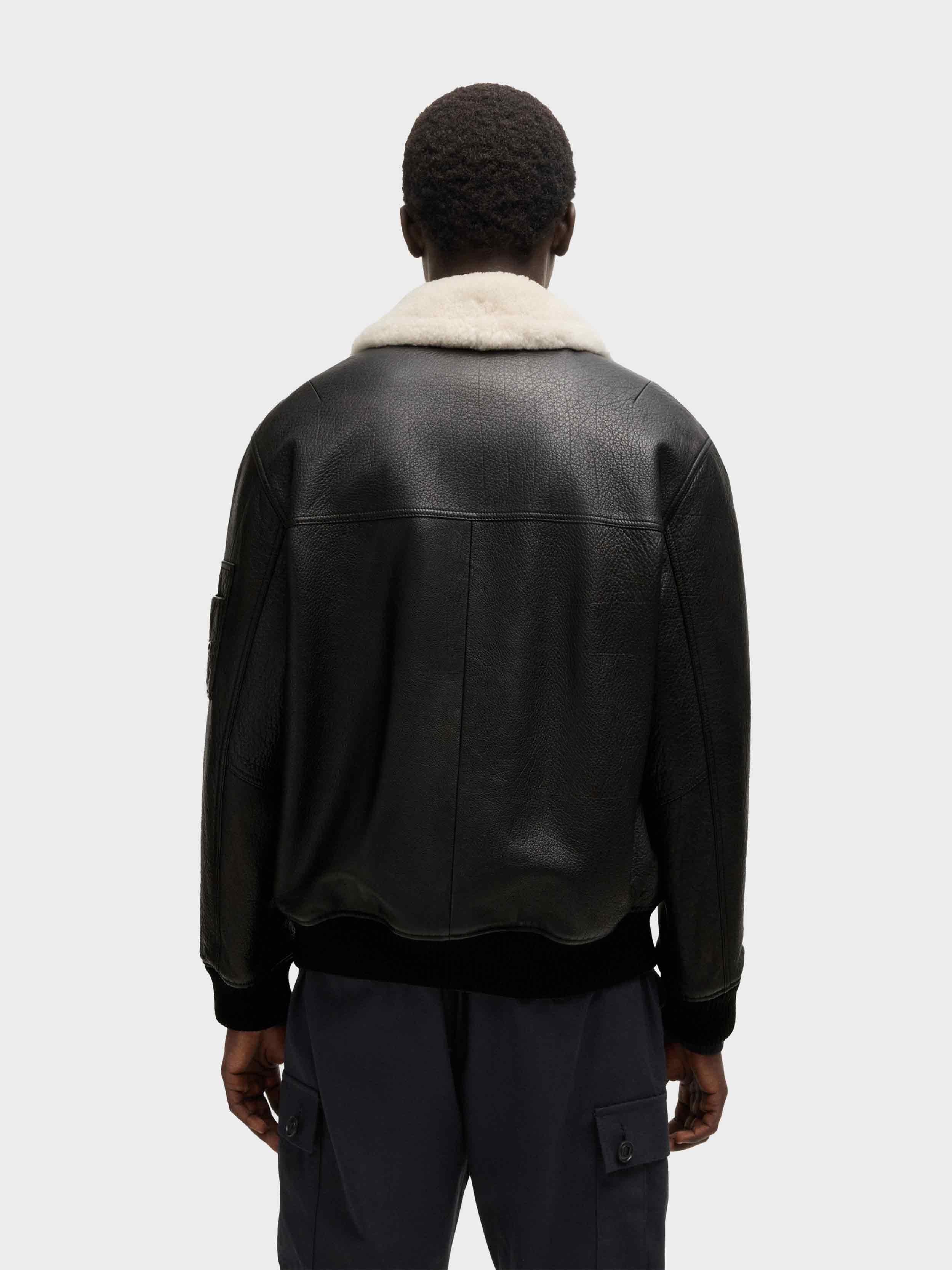 HUGO - Men's Leather Aviator Jacket With Faux-Fur Collar