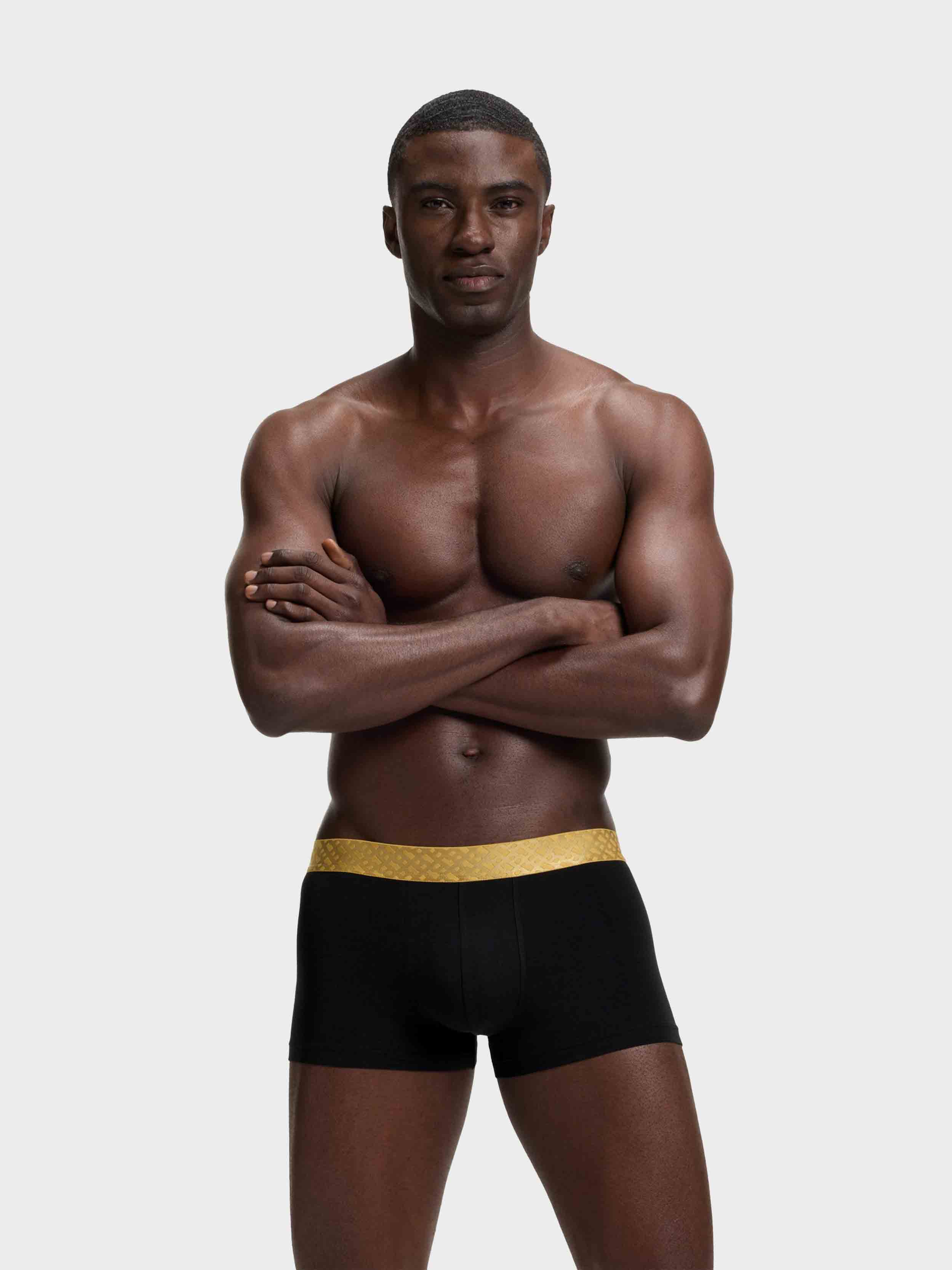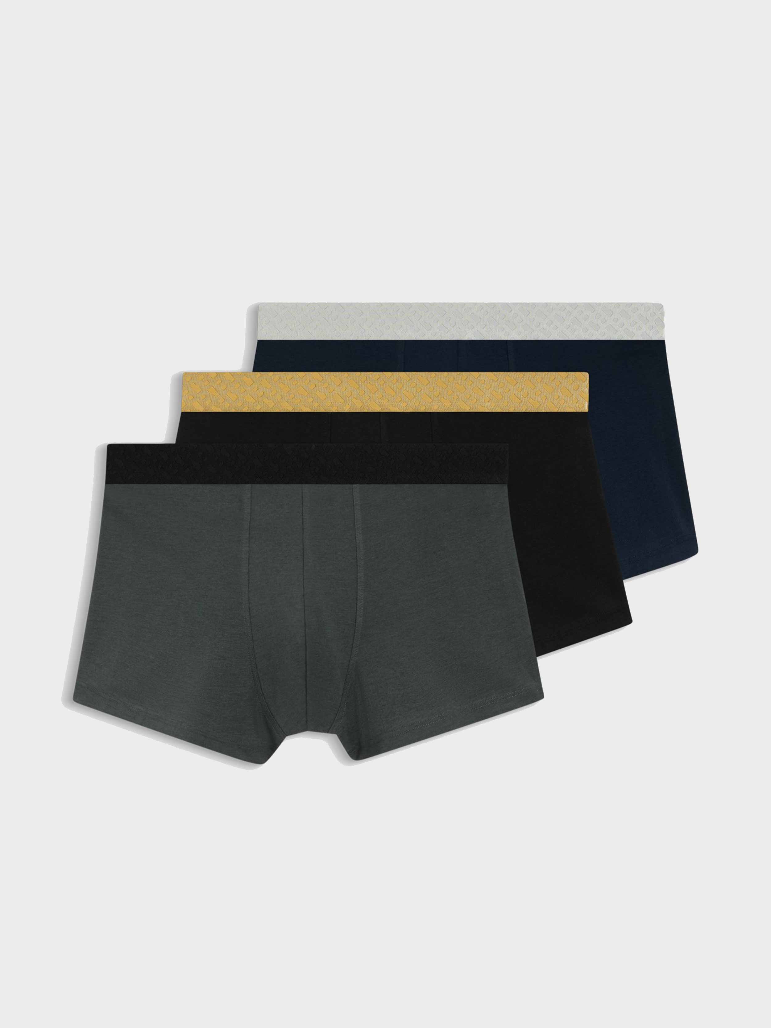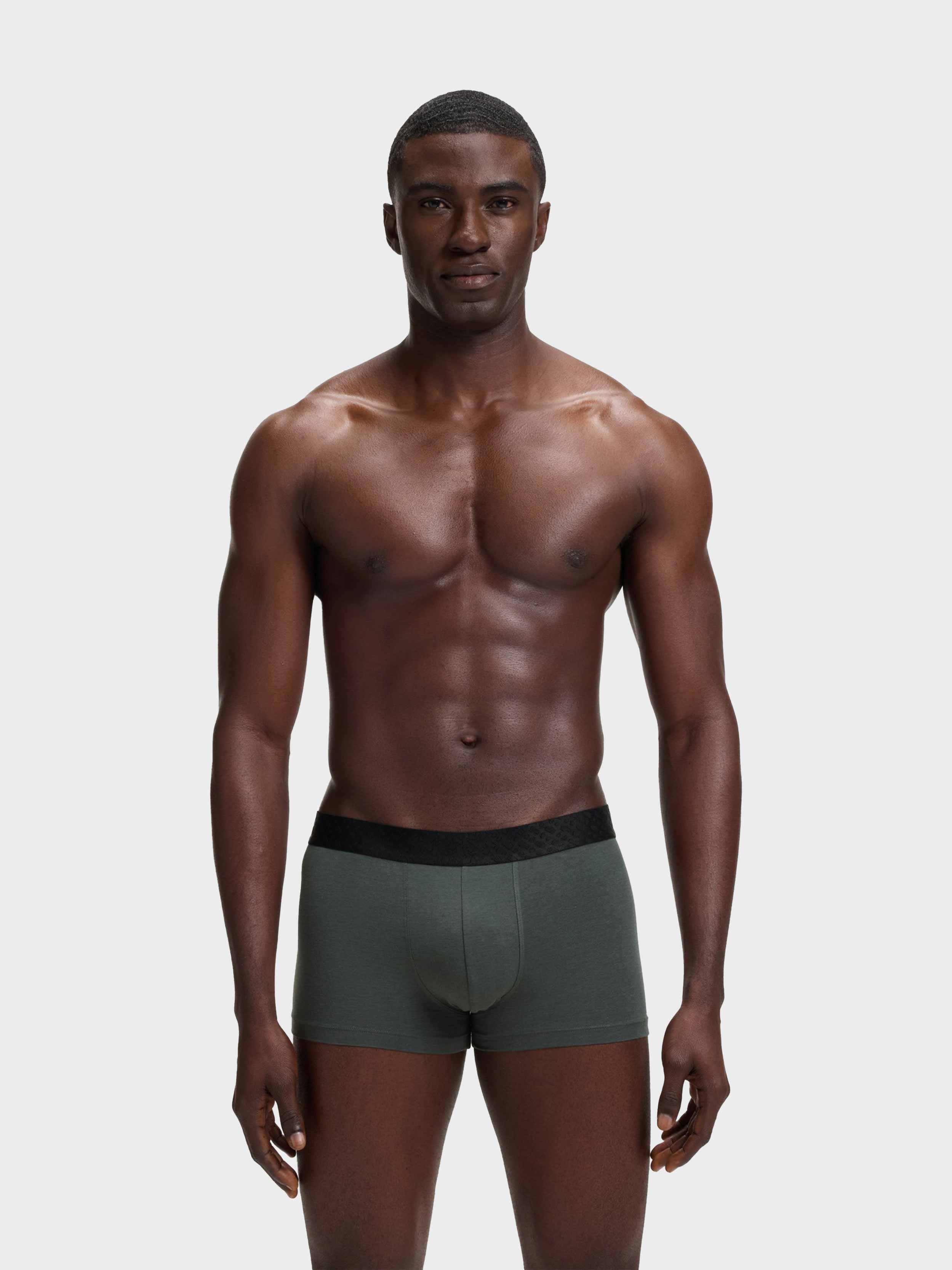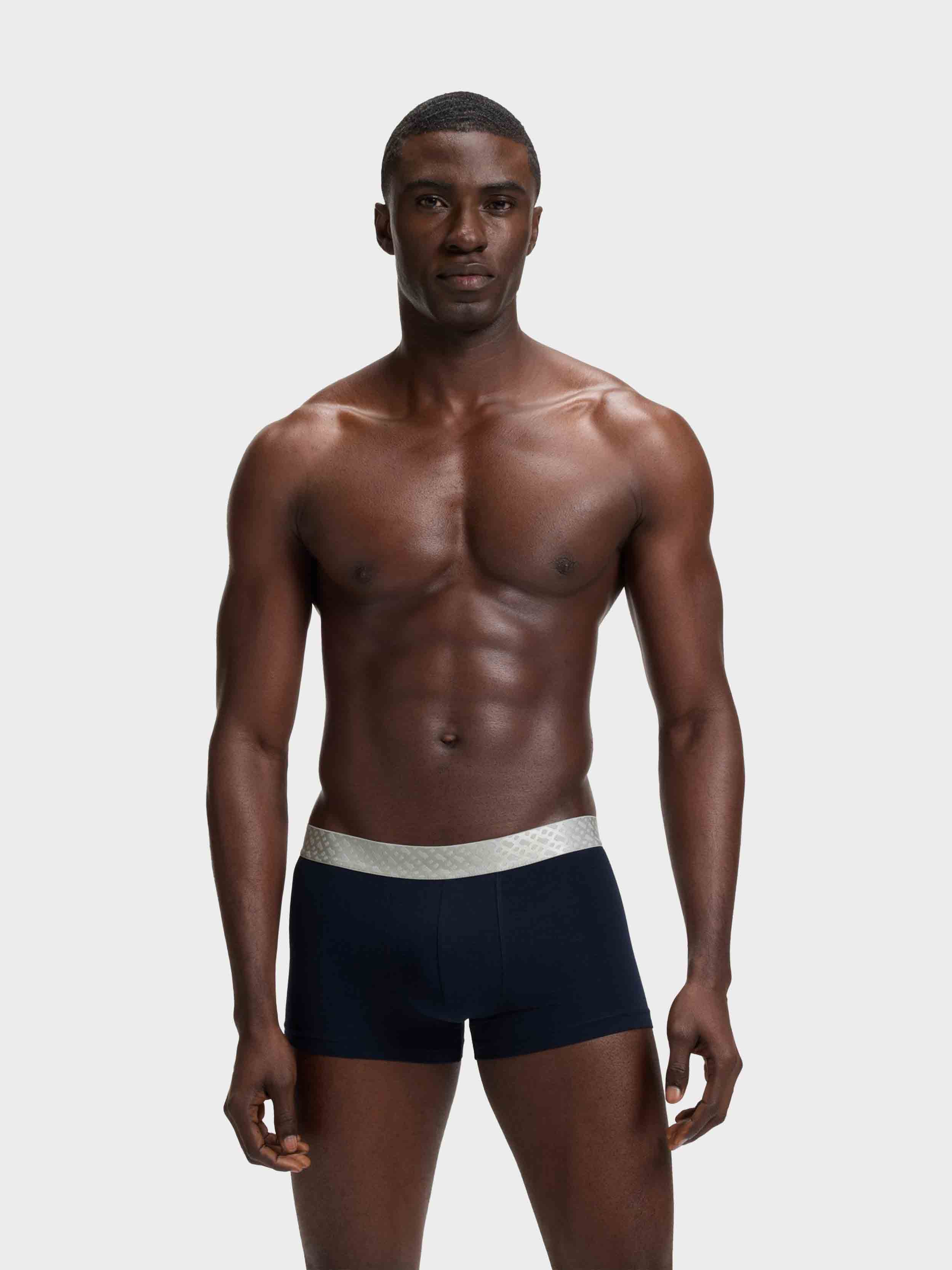 • In an extra-soft and stretchy blend, these three pairs of BOSS Menswear trunks have statement metallic waistbands with monograms. Gift-boxed presentation.