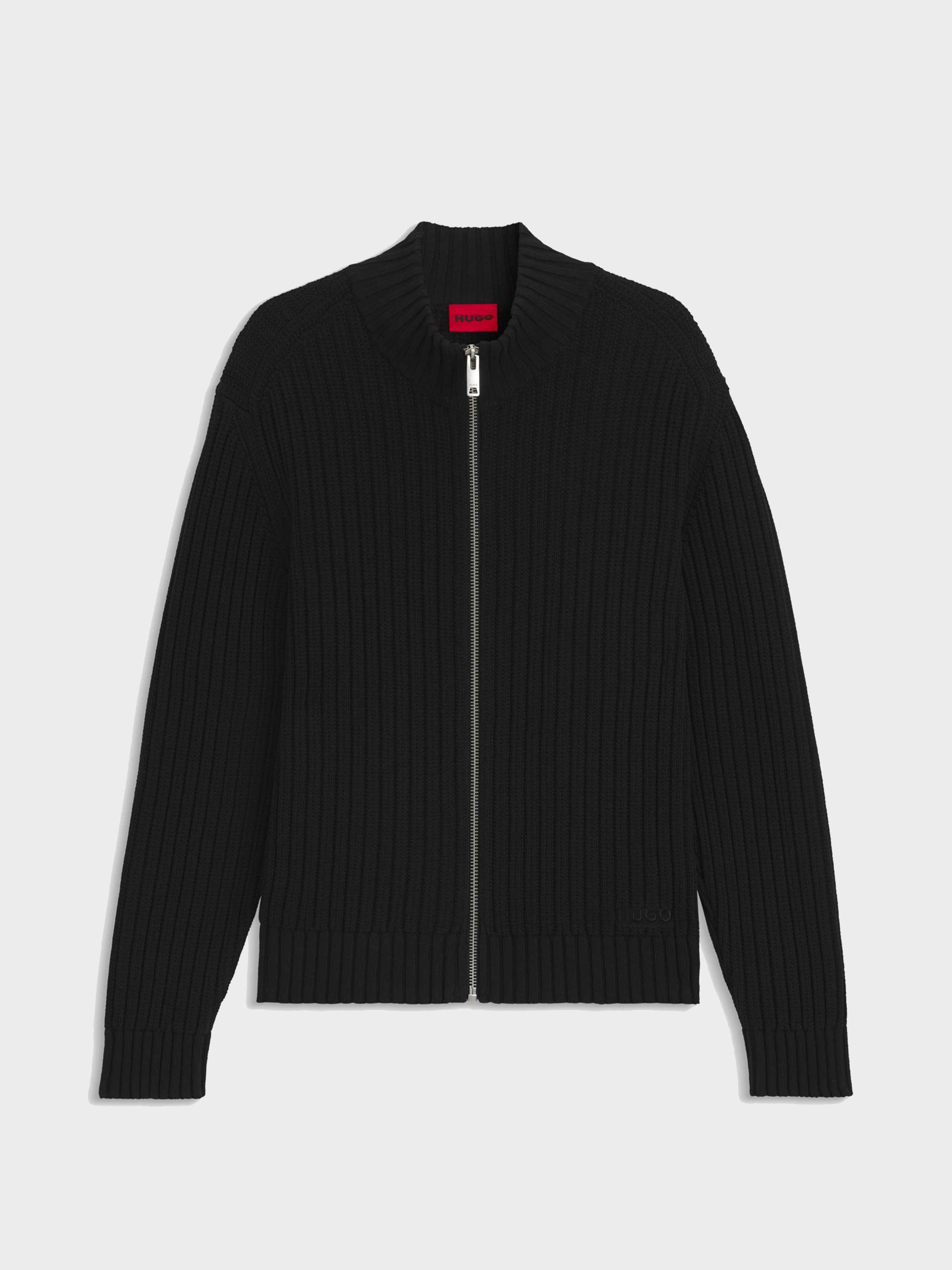 HUGO - Men's Cotton Zip Up Jacket With Ribbed Knit