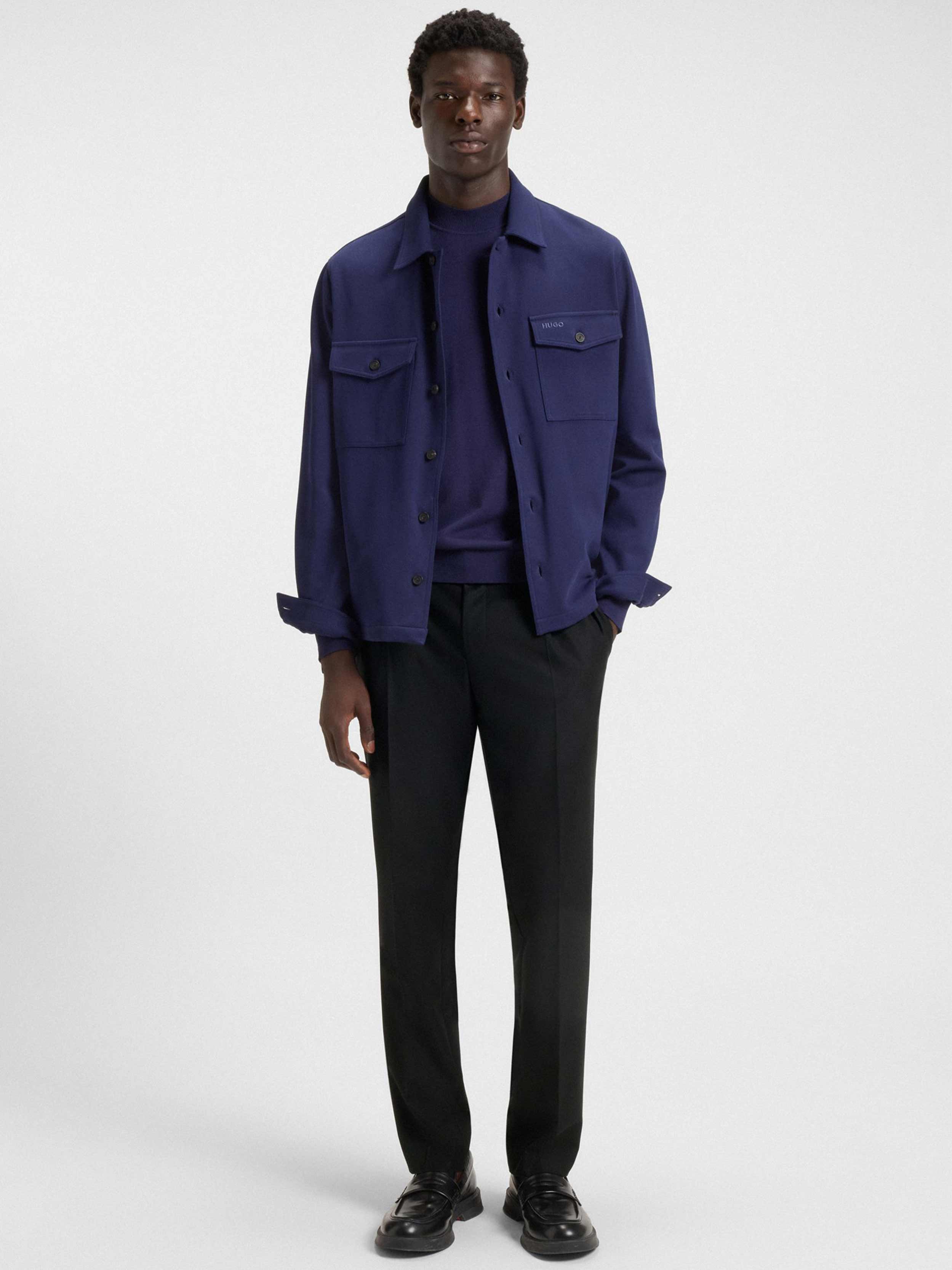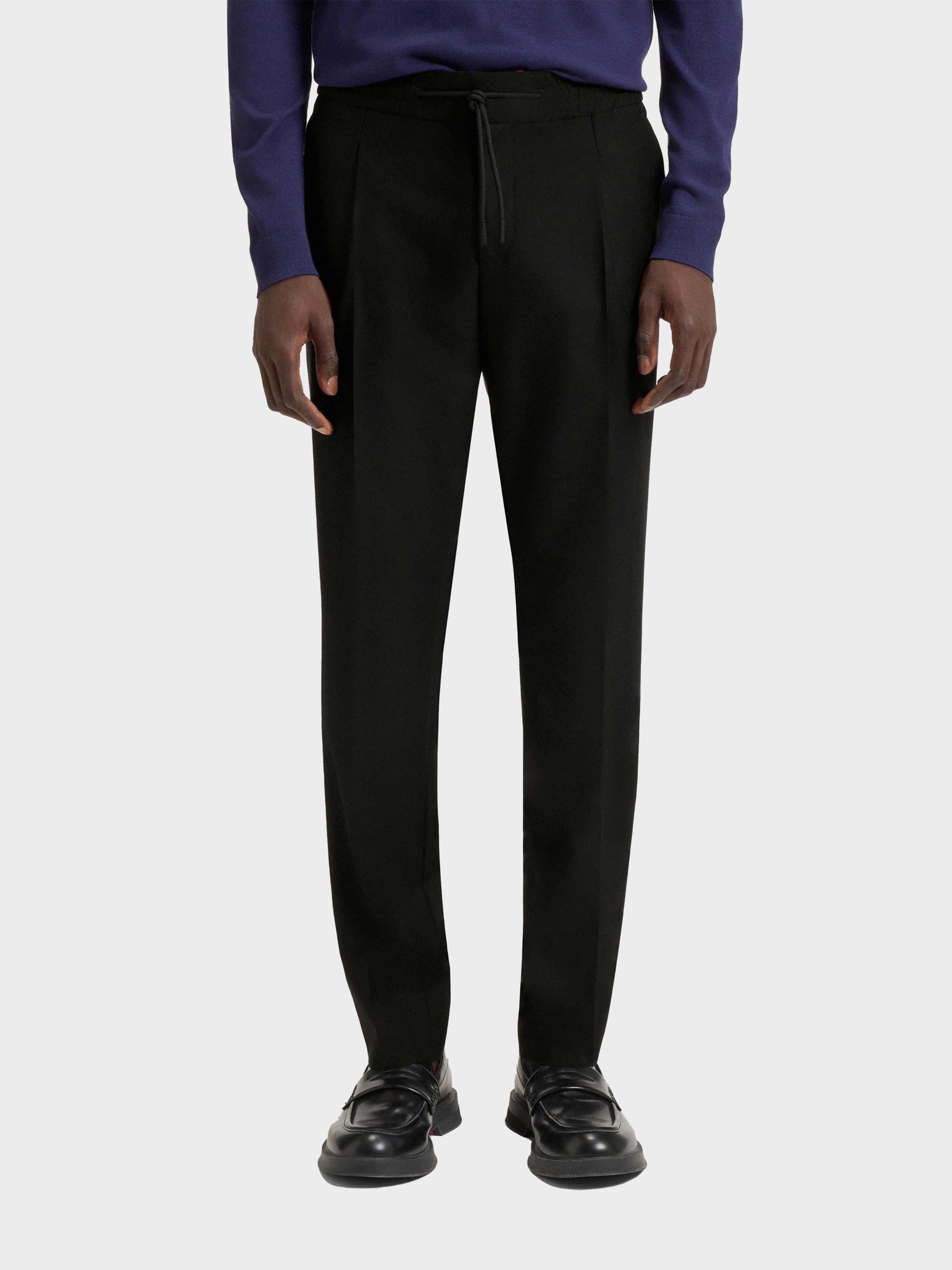 • In superblack twill made from a wool blend, these HUGO Menswear trousers are a formal must. Slim fit with pleats and ironed creases.