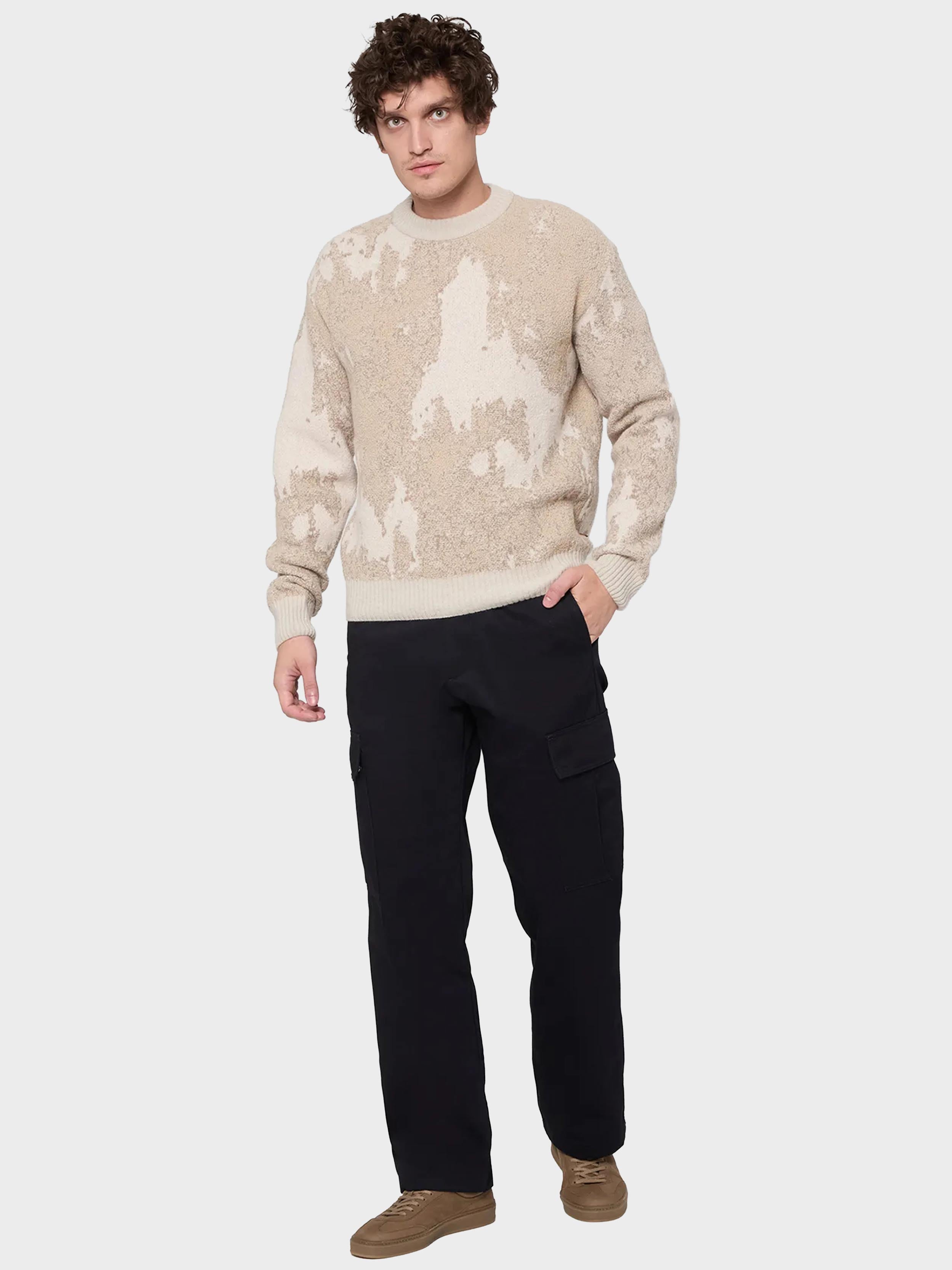 • BOSS - Men's Relaxed Fit Knit Sweater Kradar Beige Patterned
