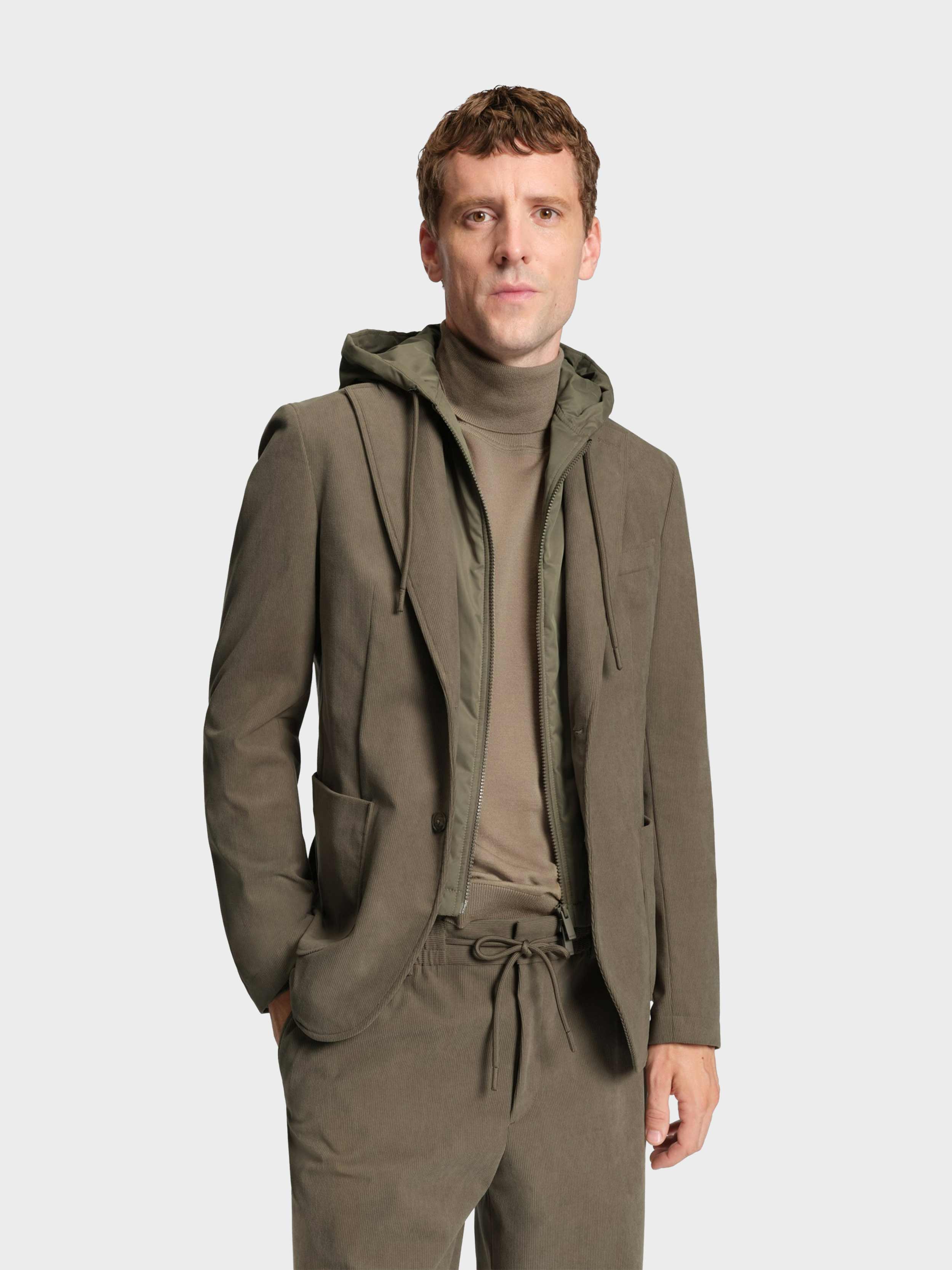 • In performance corduroy with added stretch, this slim-cut BOSS Menswear jacket is a versatile investment. Packable design with integrated zip-up hoodie. This product contains at least 60% better raw materials. This product is partly created with recycled polyester. We at HUGO BOSS prefer recycled polyester from pre- and post-consumer textile waste and do our best to phase out polyester from PET bottles.