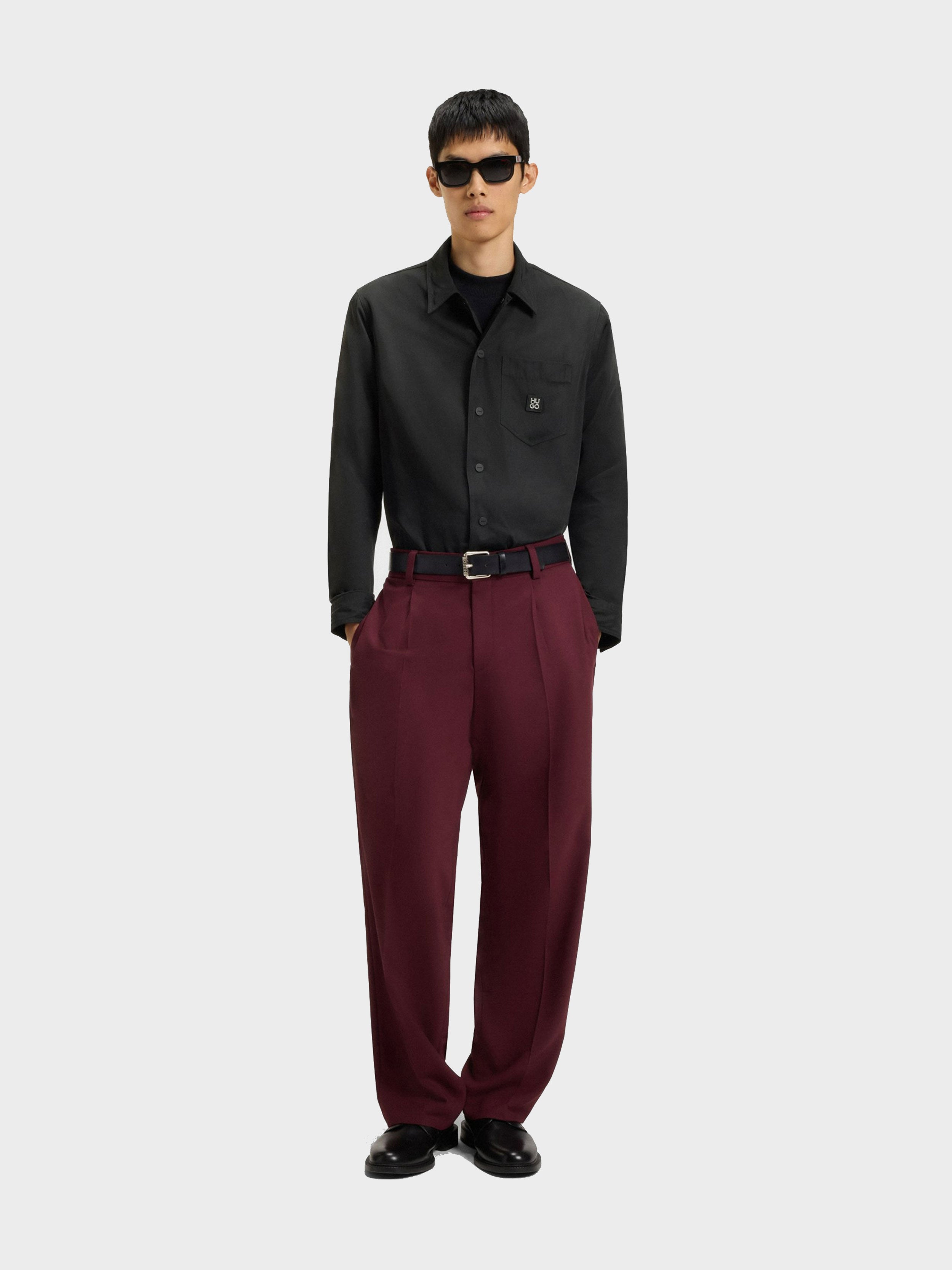 HUGO - Men's Oversized-Fit Shirt With Stacked-Logo Badge