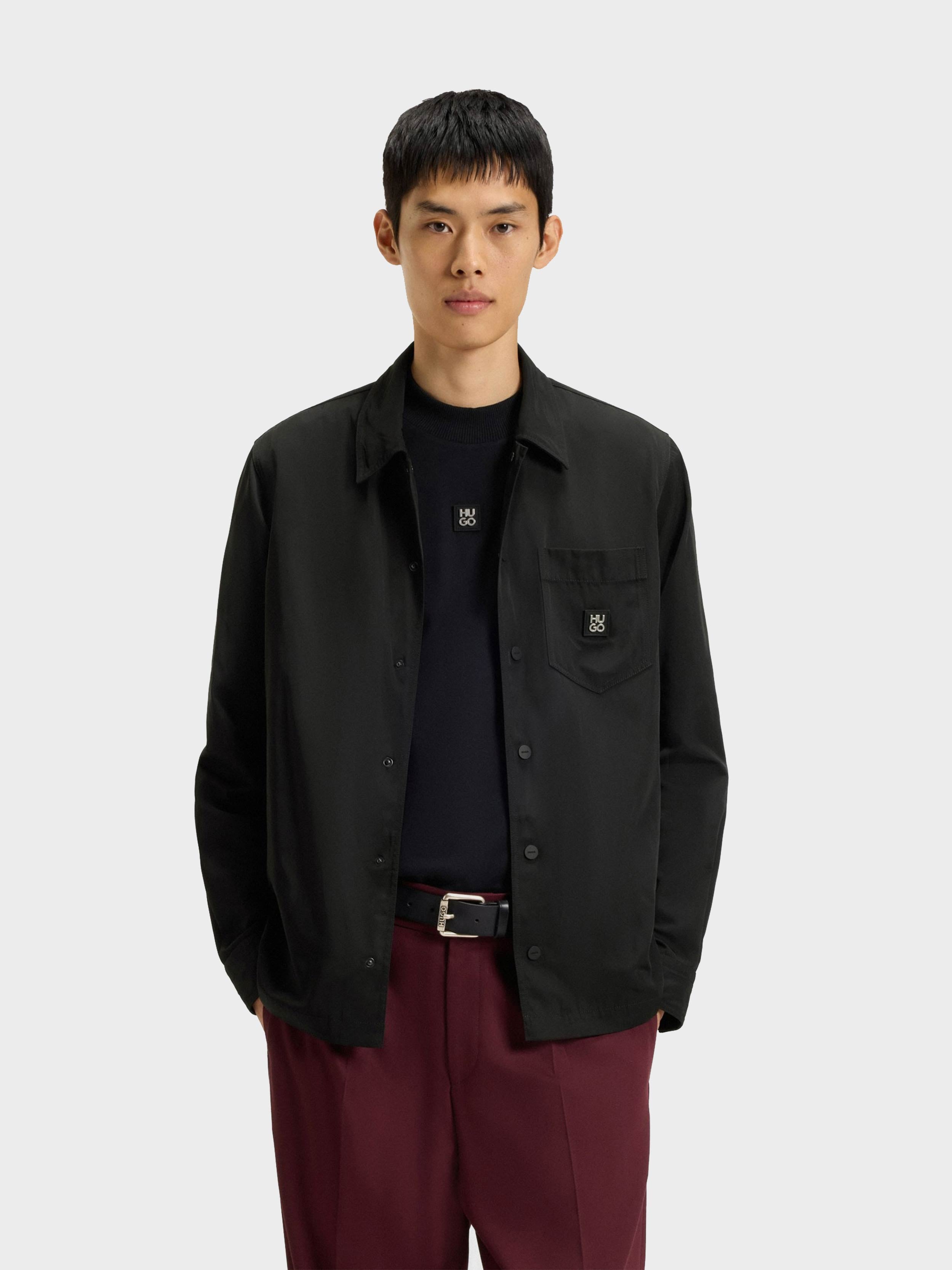 • Crafted in water-repellent canvas, this HUGO Menswear shirt is incredibly versatile. Modern oversized fit. Stacked-logo detail.