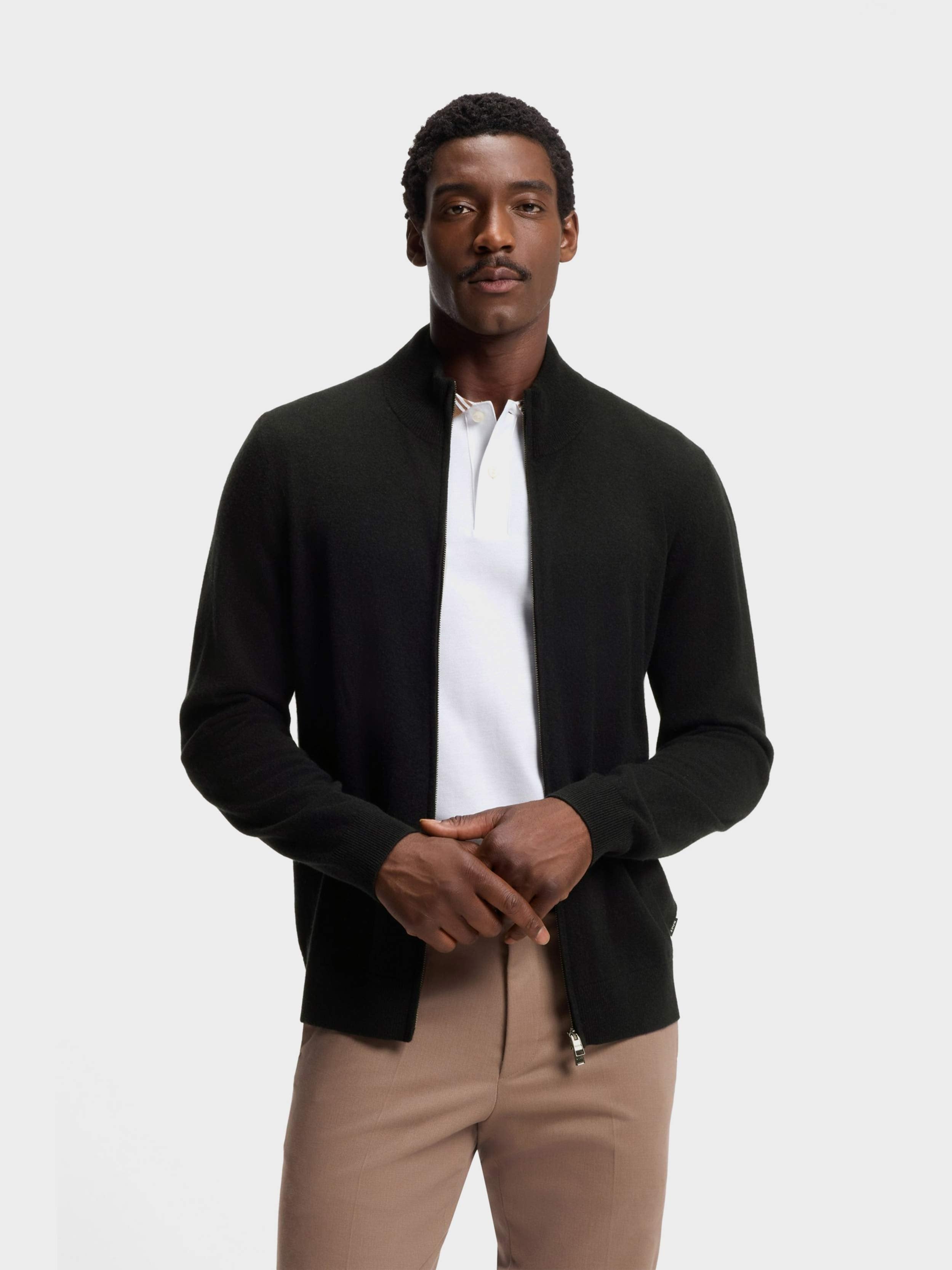 • With its pure-cashmere construction and double-ended zip, this BOSS Menswear cardigan is a luxurious layering option. Regular fit.
