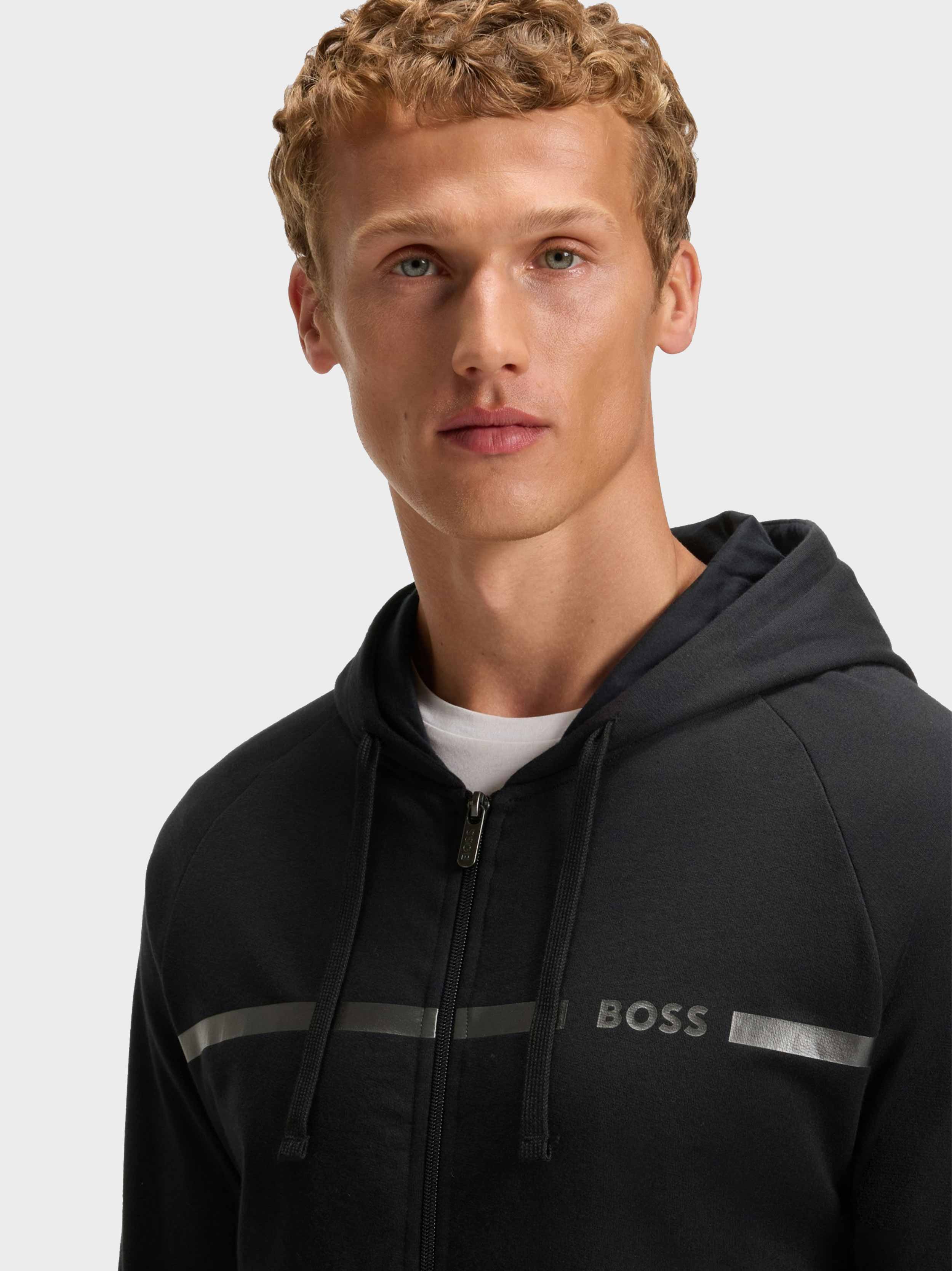 • BOSS - Men's Cotton-Terry Jacket With Logo And Stripe