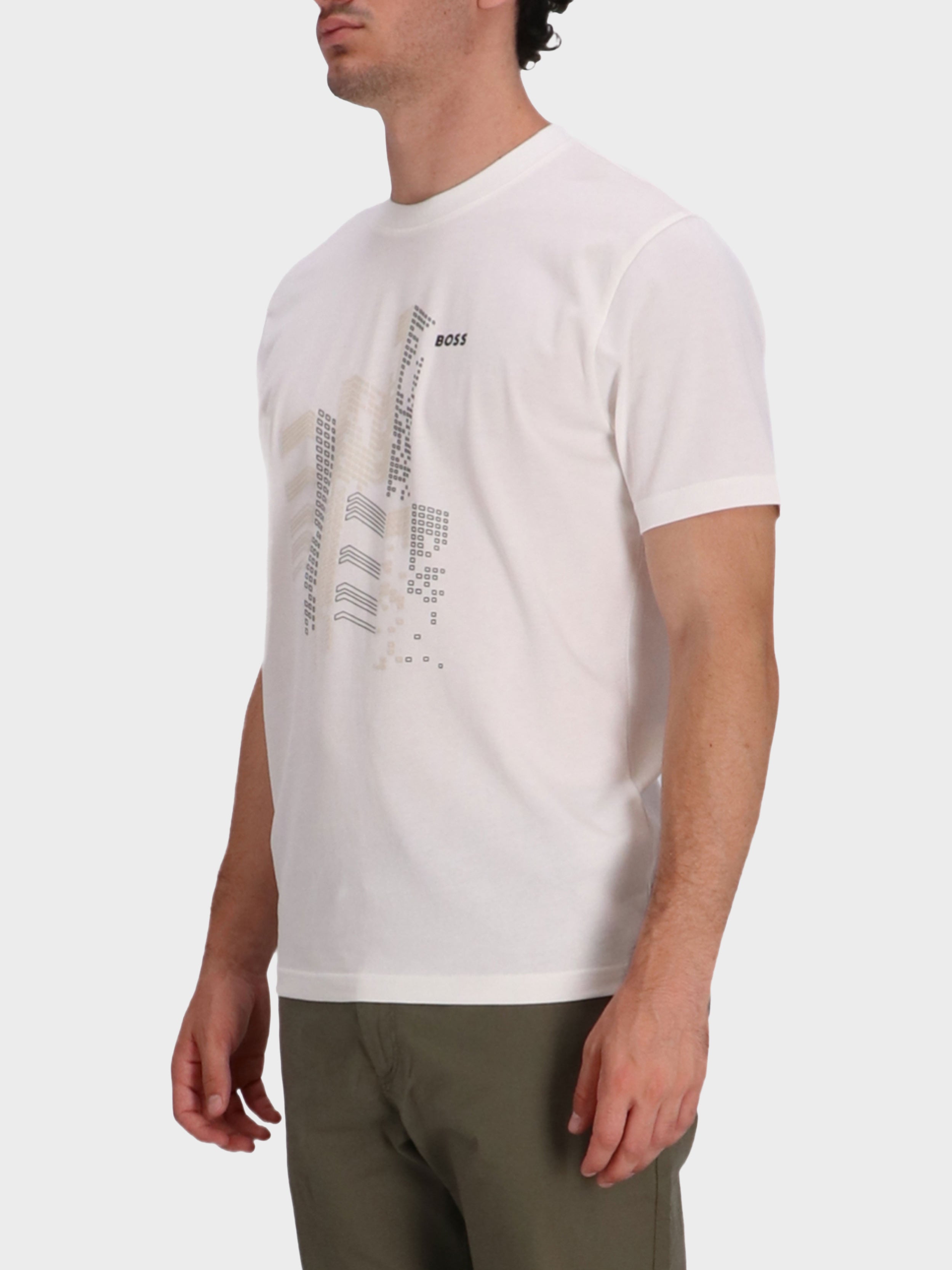 • Update your casuals with this relaxed-fit BOSS Menswear T-shirt, printed with creative graphics and contrast branding. Designed in soft, breathable cotton.