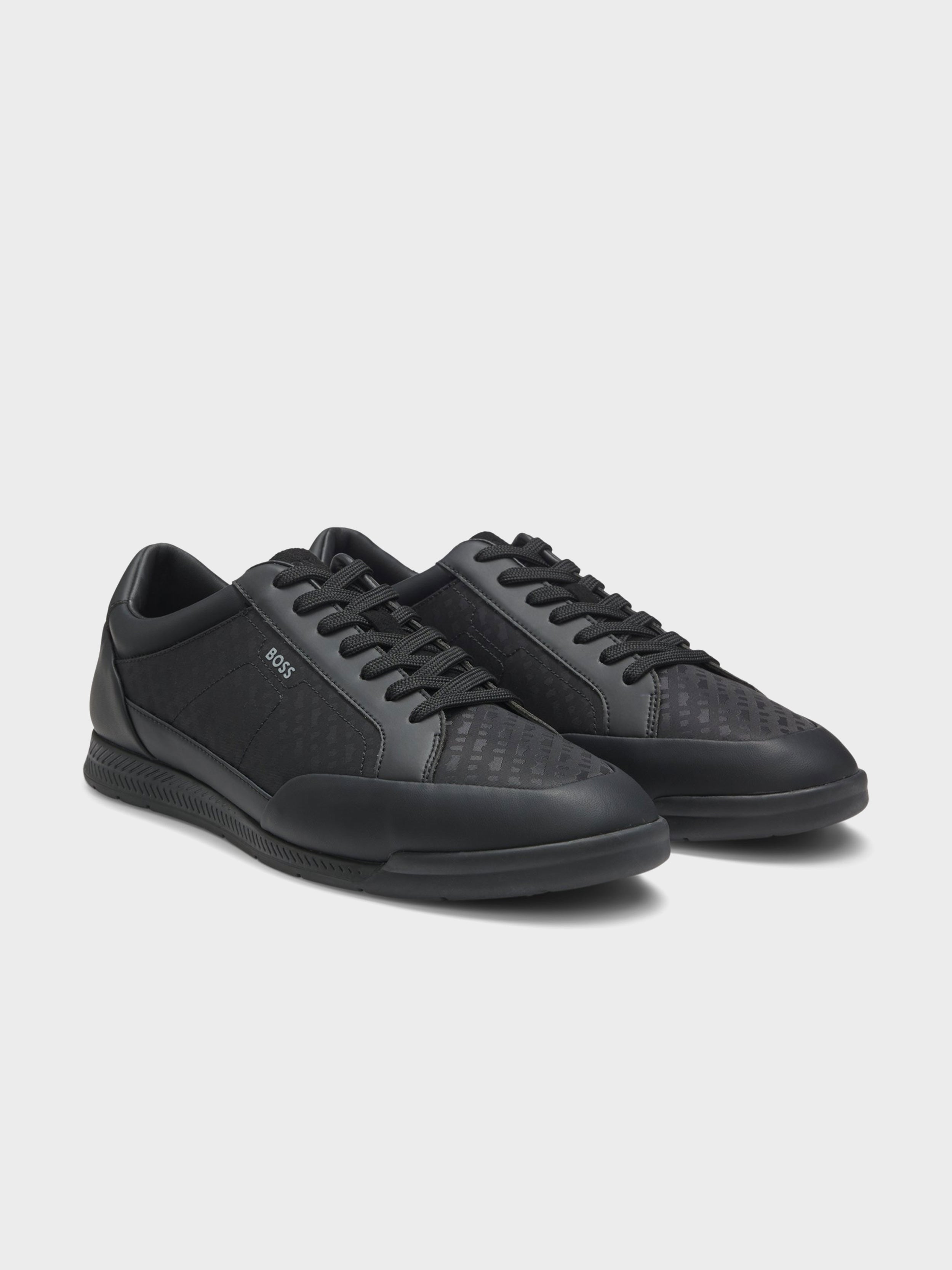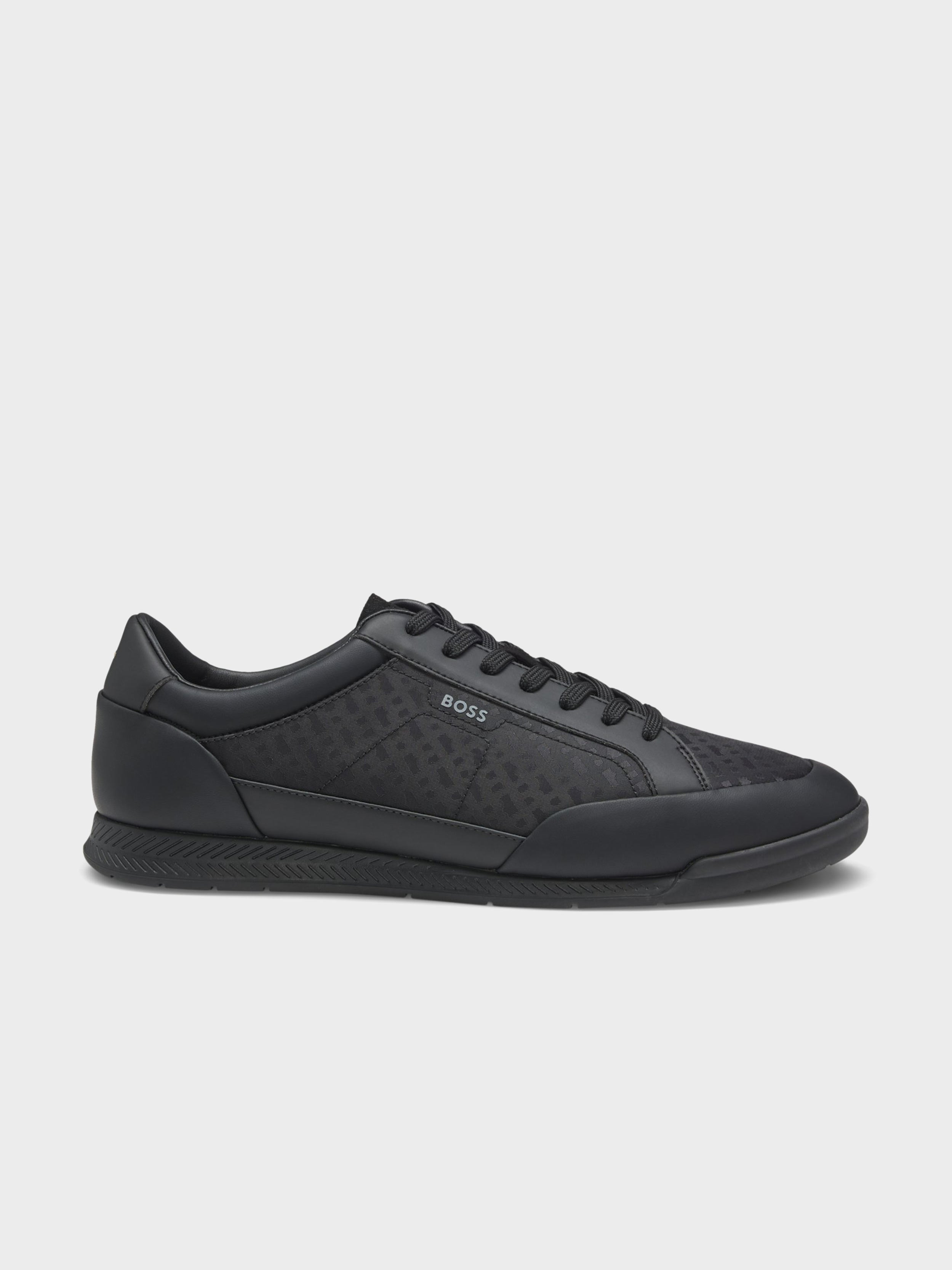BOSS - Men's Leather-Trim Trainers With Monogram Jacquard