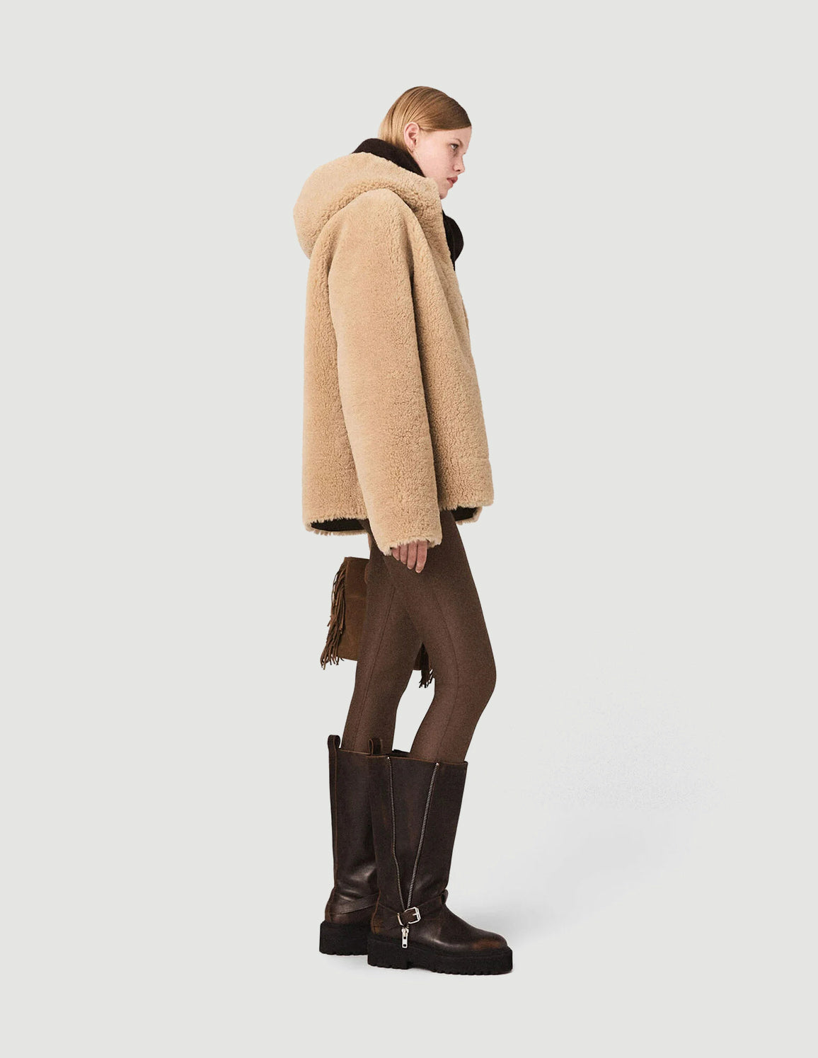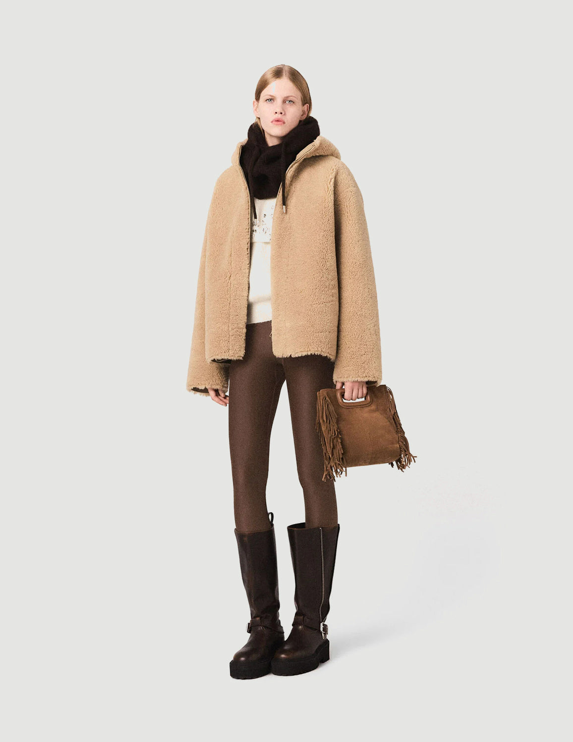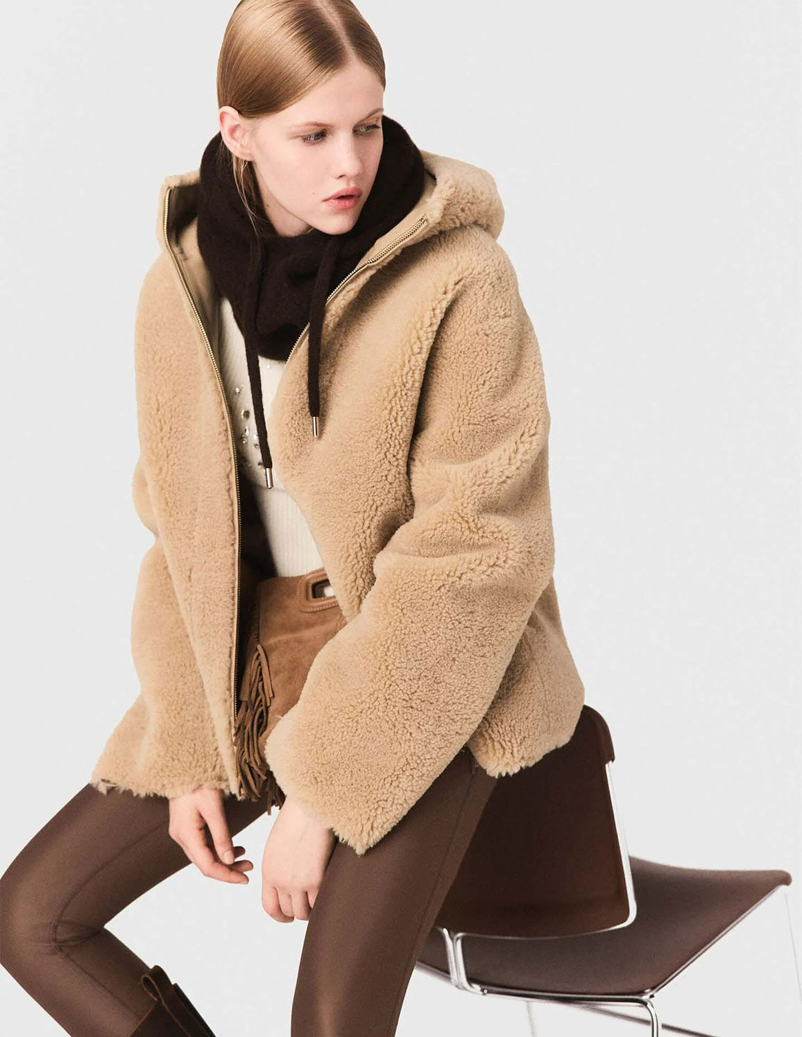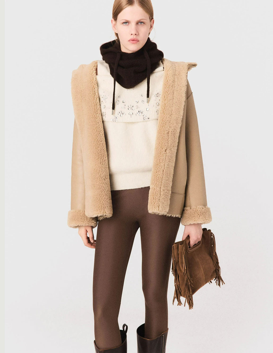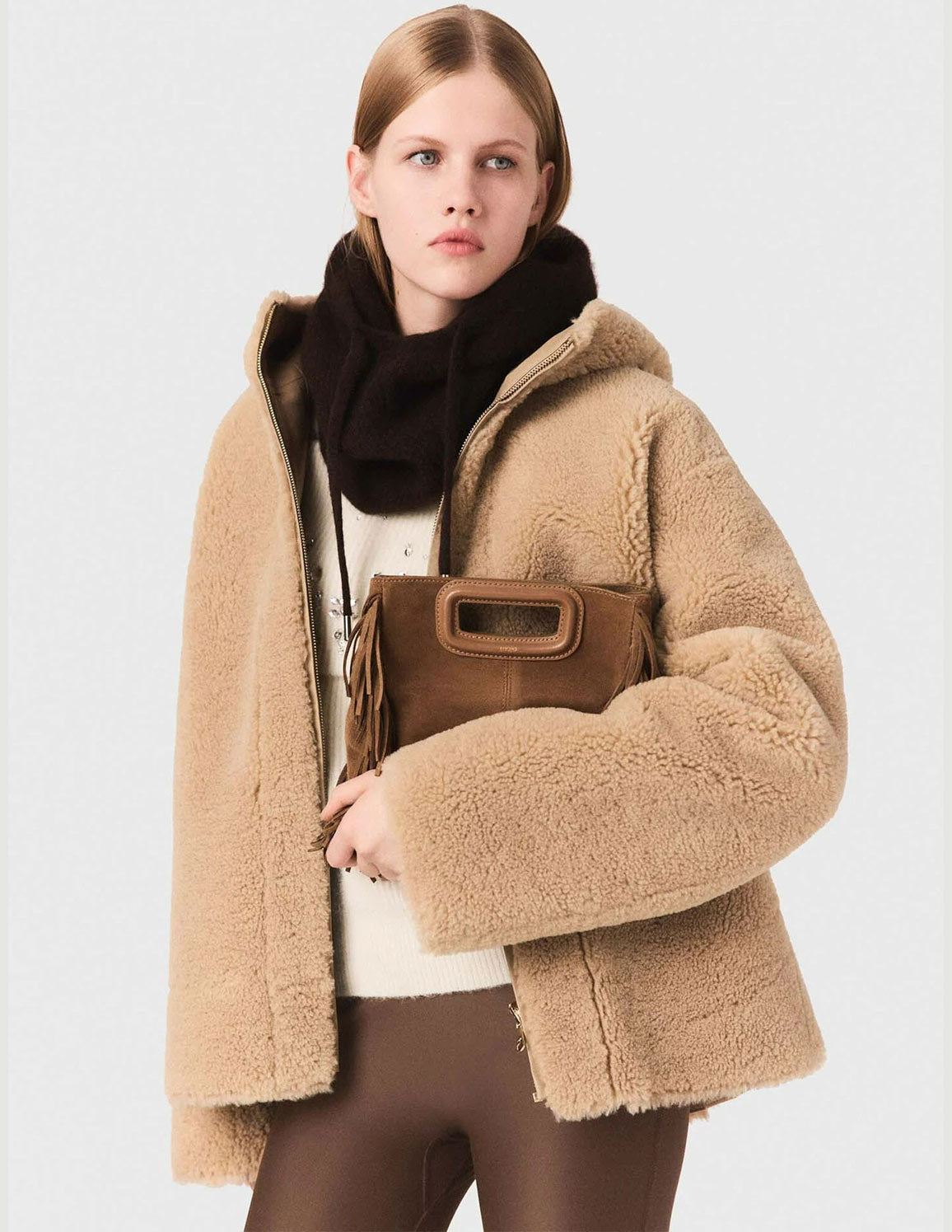 The season highlights enveloping pieces that combine warmth and elegance. Fabrics are reversible and volumes are structured, creating a wardrobe that plays with contrasts and adapts to your mood.This reversible coat combines two complementary finishes: a smooth leather side for a sleek, metropolitan look, and a fur side for a cocooning effect. The attached hood and practical pockets enhance its functionality while asserting its style.Wear it with leggings, biker boots and a yak balaclava, and complete the look with a fringed bag for a sophisticated modern look.