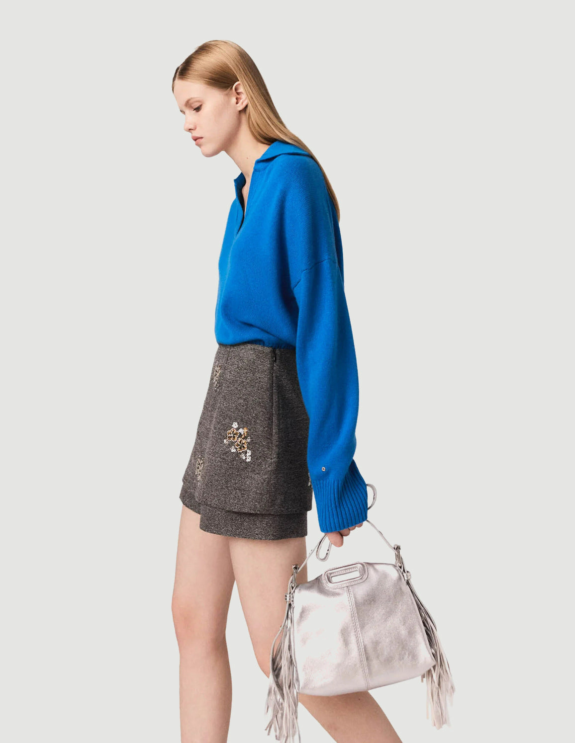 • Pair with the matching jacket for a bold silhouette, or contrast with an oversized knit for a more casual twist. A structured, luminous piece, ideal for punctuating the winter season.