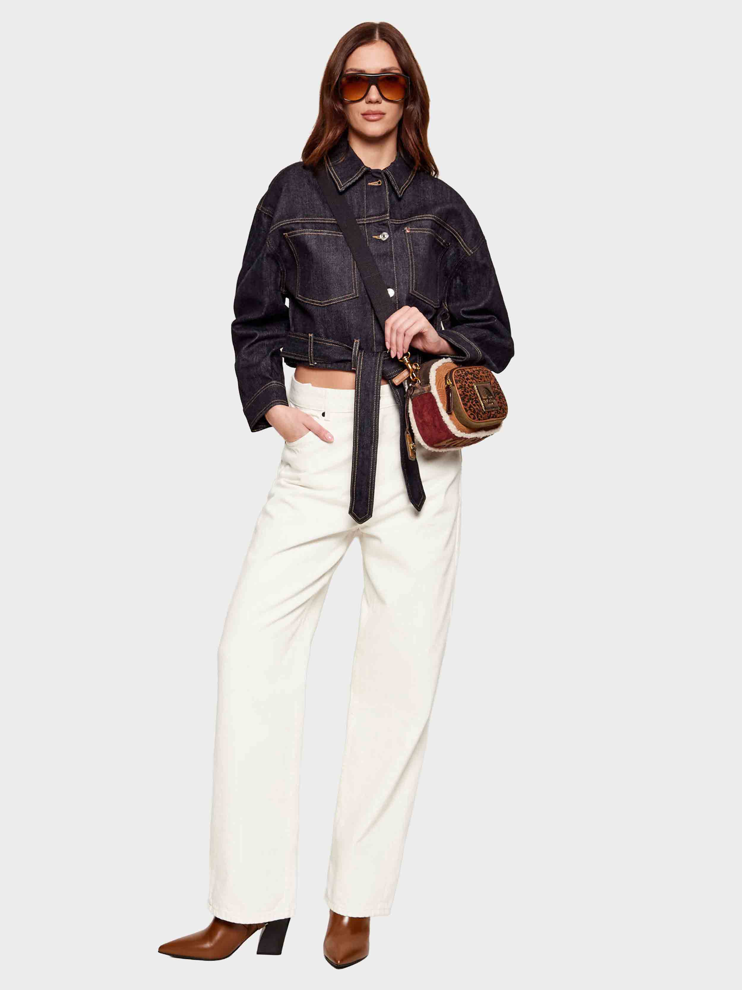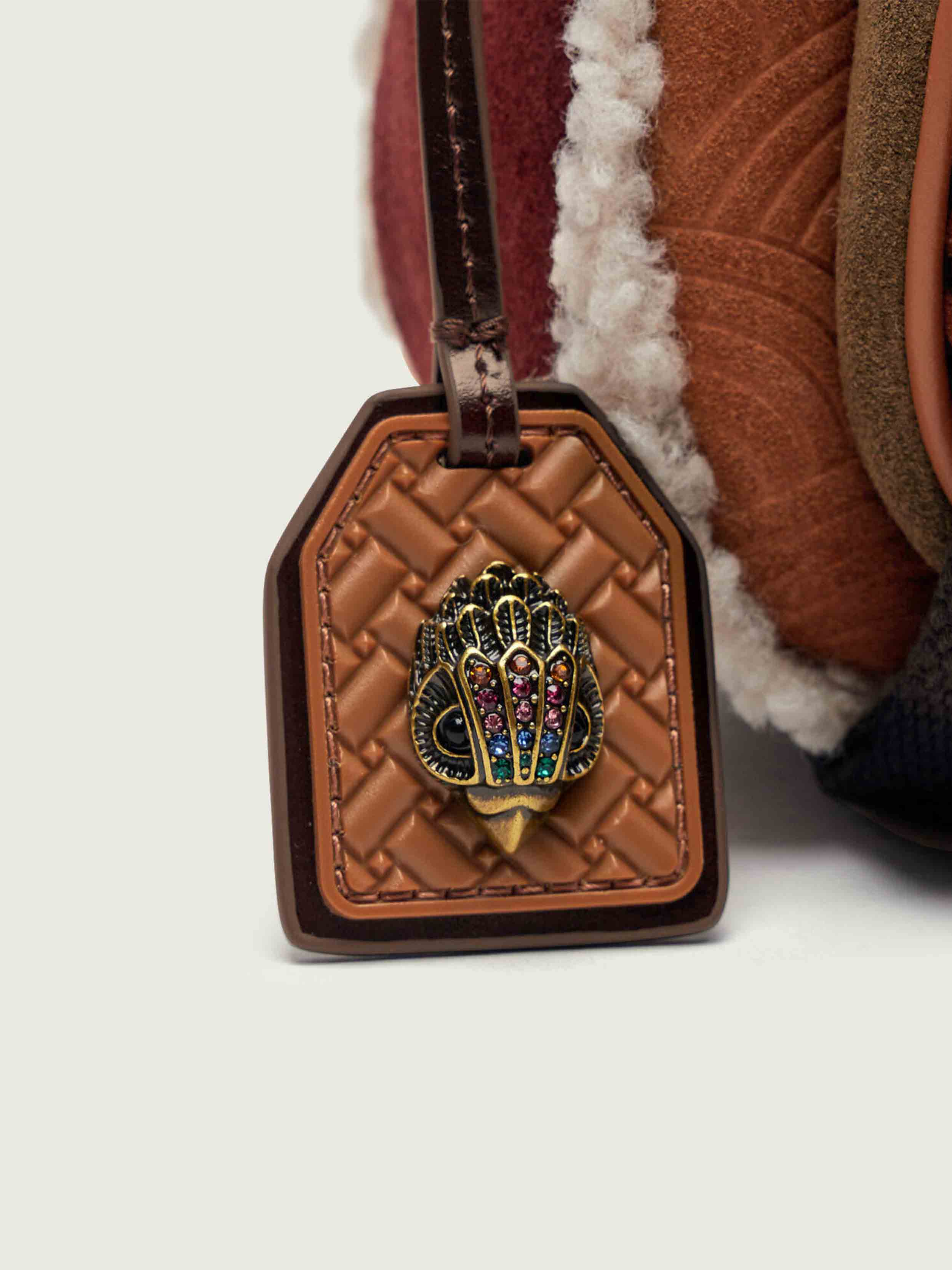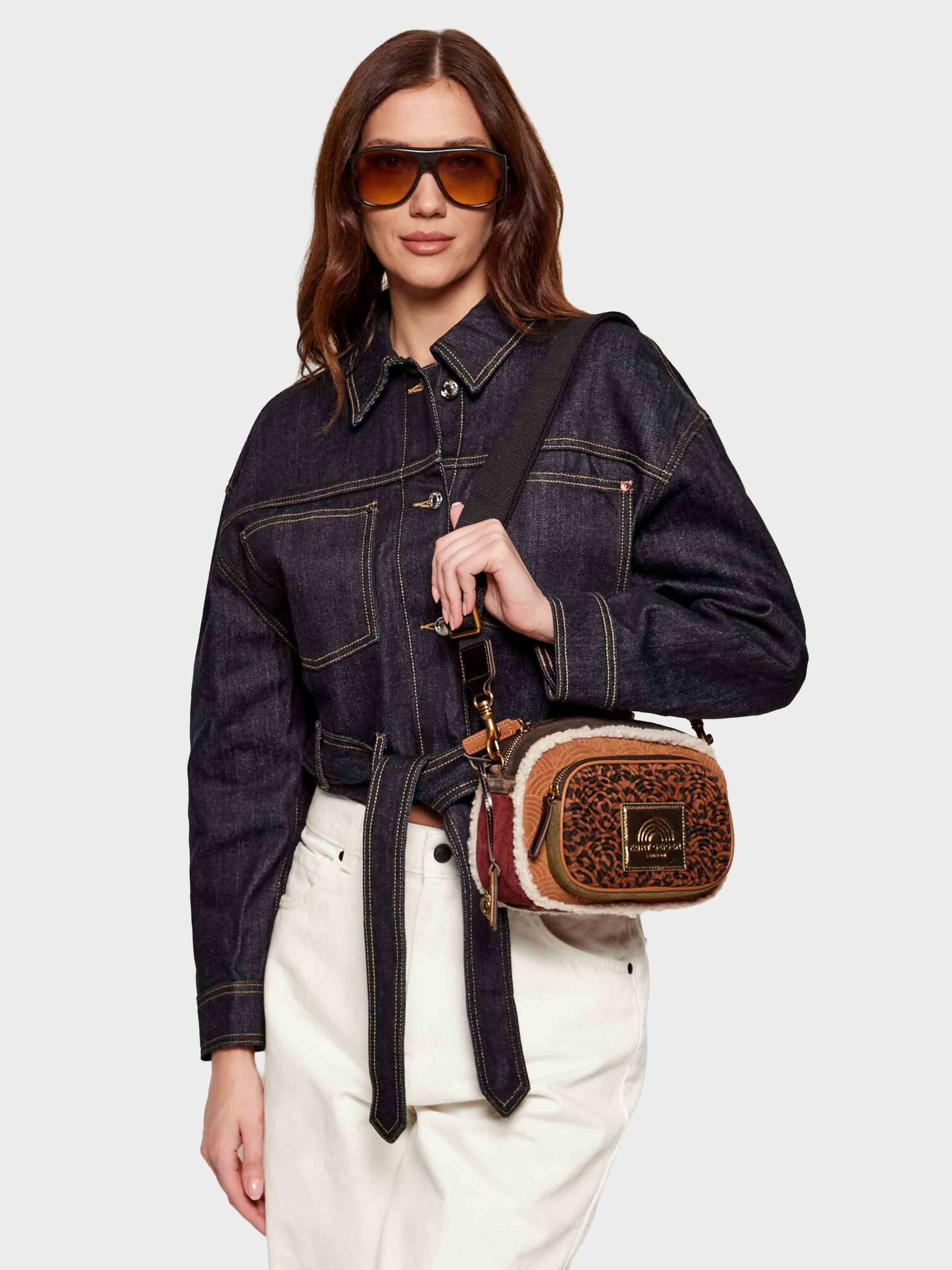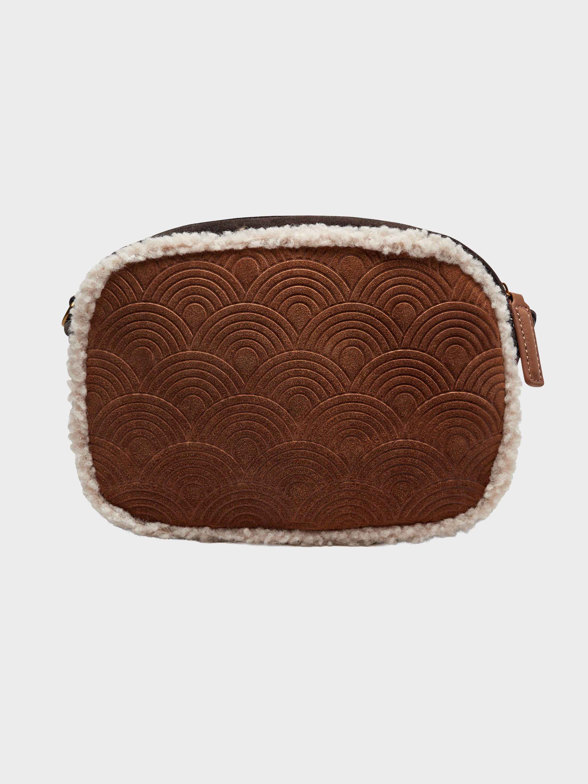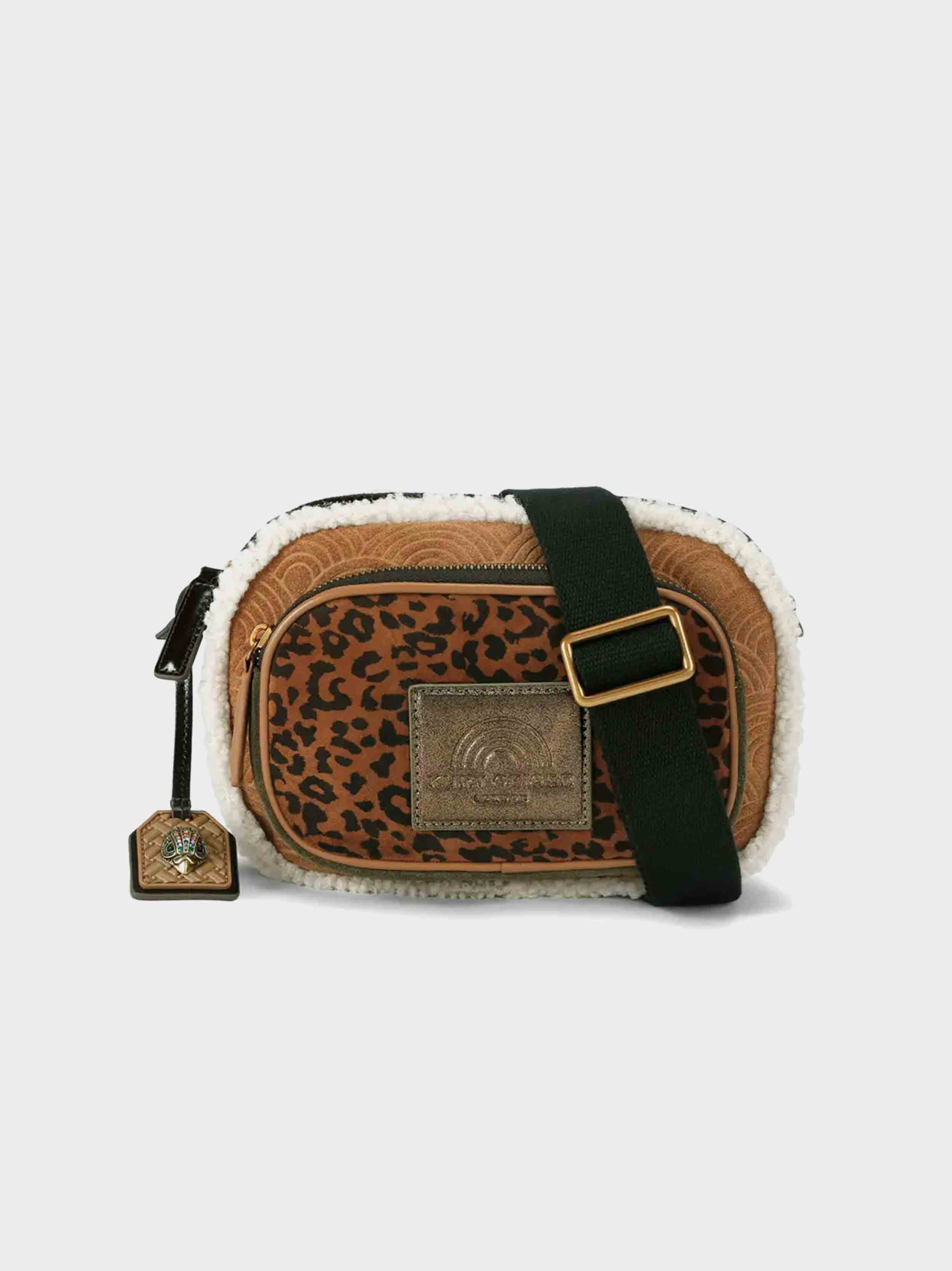 • This Southbank Camera Pocket is crafted from a soft brown suede. There is rainbow embossed detail on the front and back panels and a leopard printed zipped pocket on the front. The bag is lined in a beige Borg.