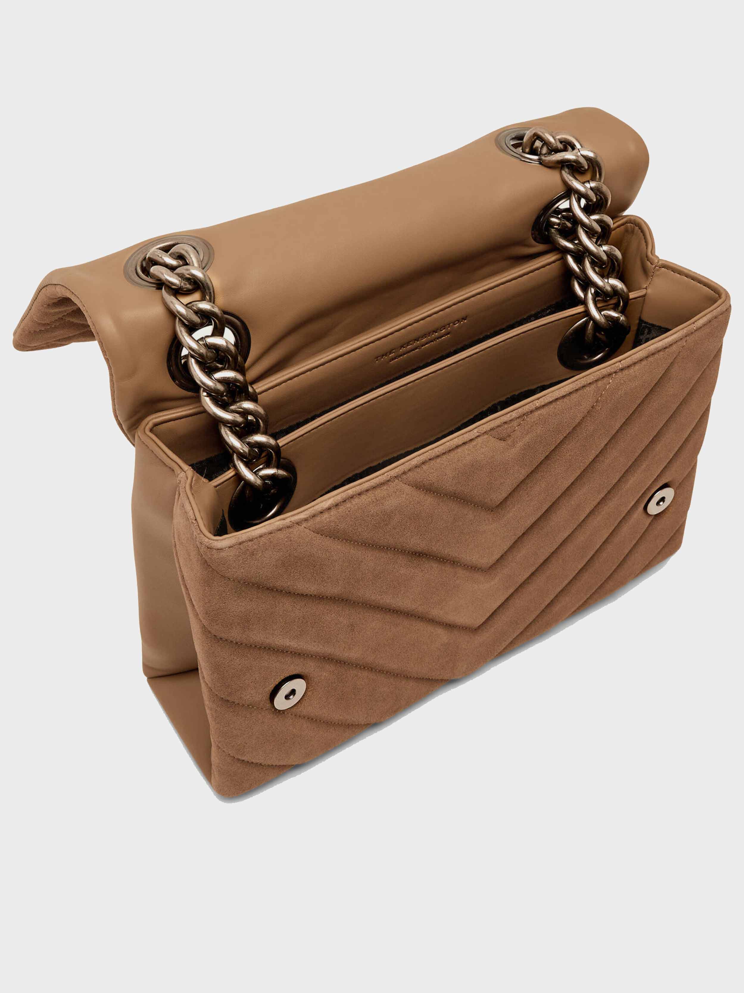 • A medium-sized handbag from the Kurt Geiger London collection. A zip-up design crafted from suede leather.