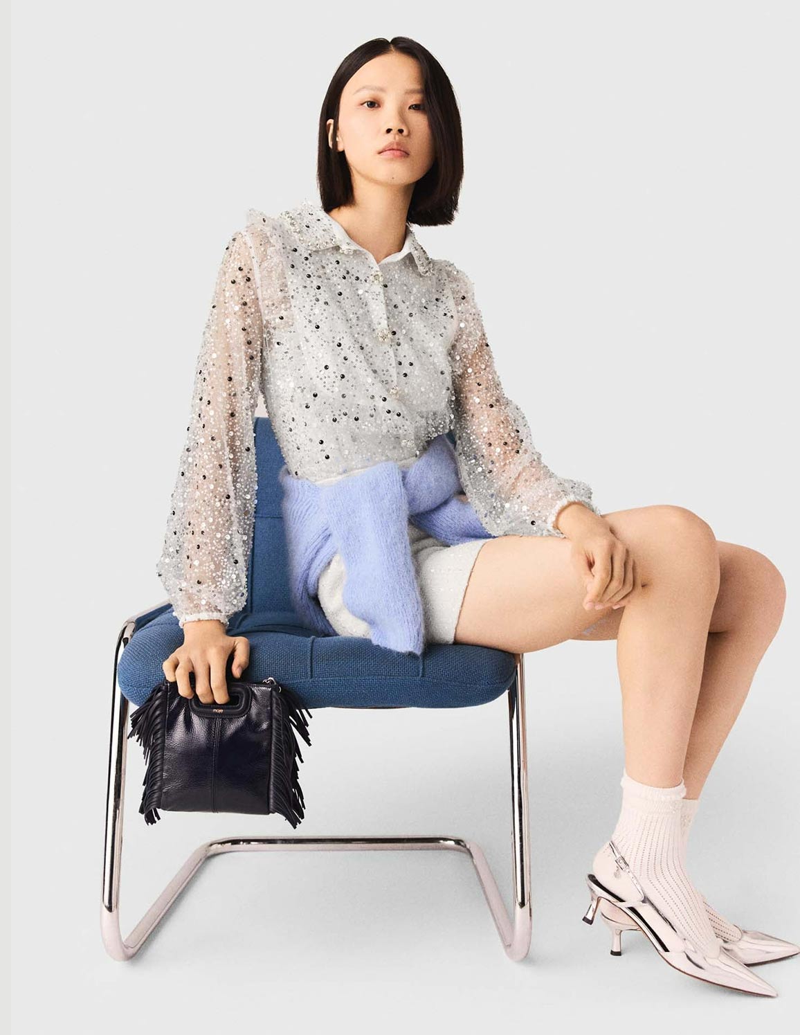 • For a contrasting, assertive look, wear it with a jumper tied at the waist, an M bag and metallic pumps.