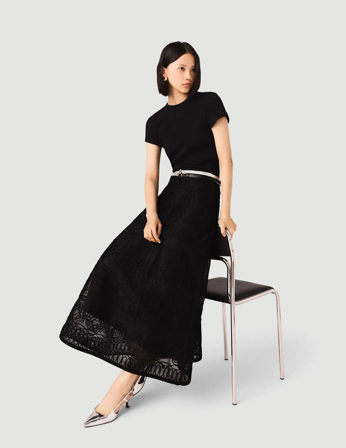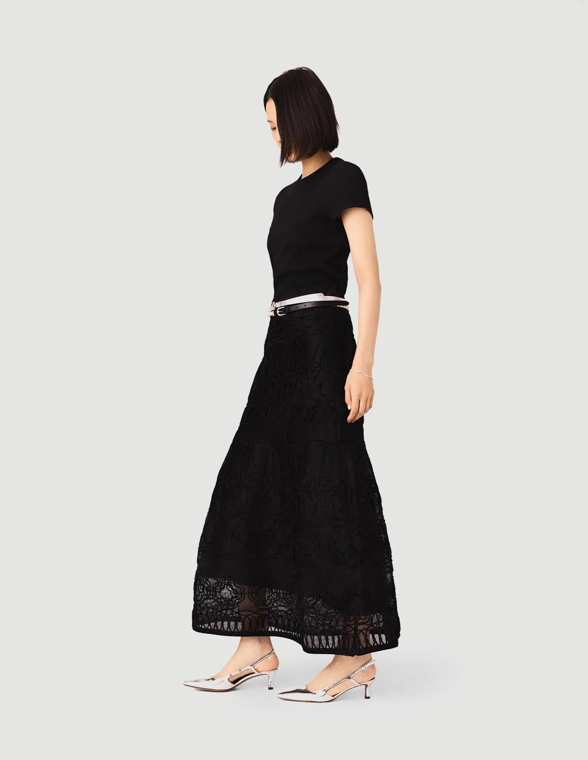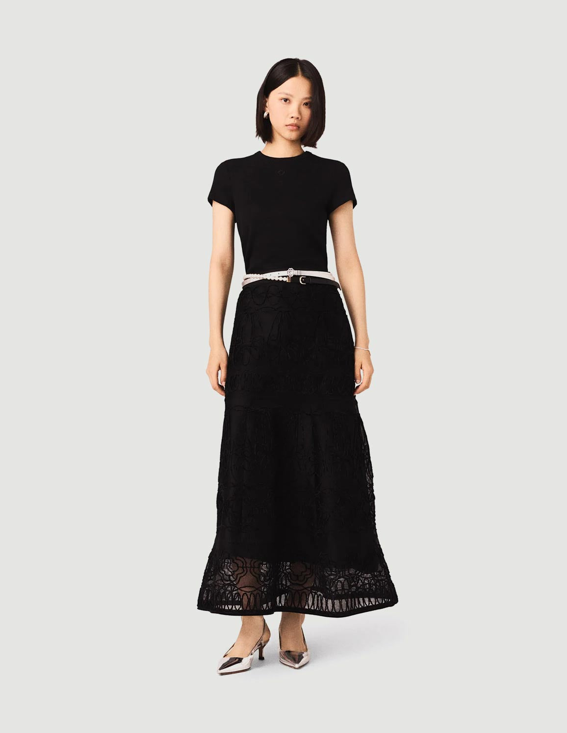 • Maje - Women's Embroidered Basket-Weave Knit Skirt
