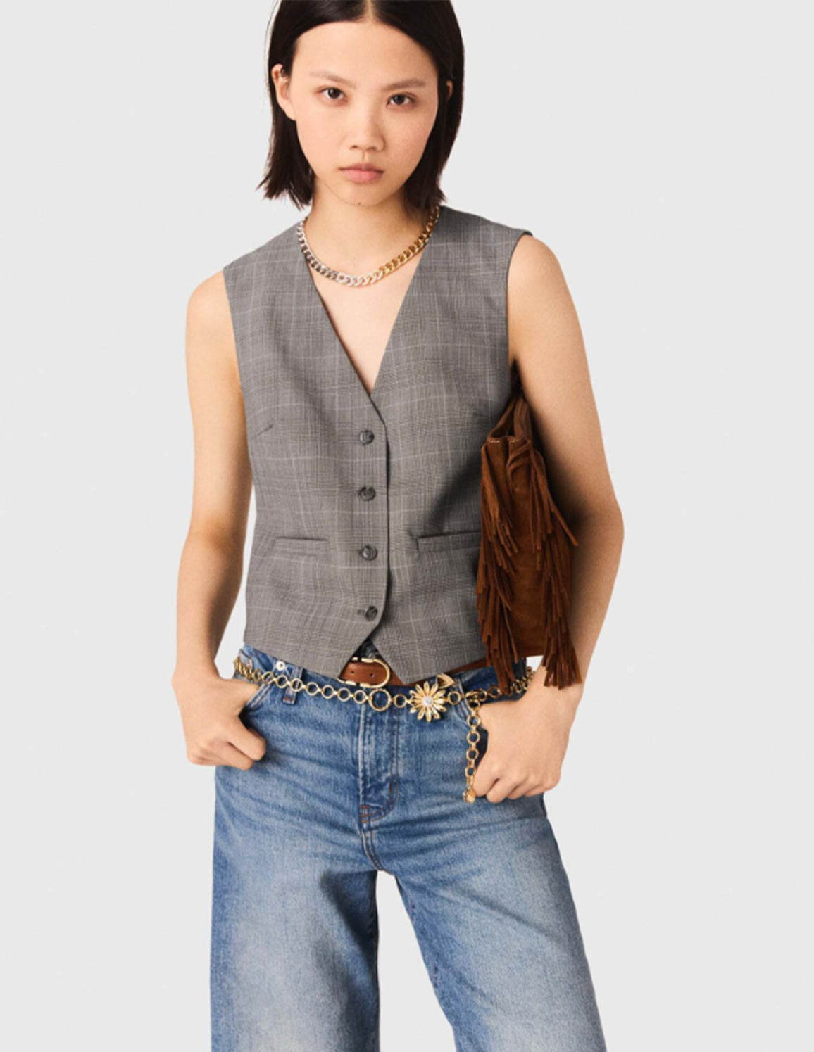 • Maje - Women's Checked Tailored Jacket