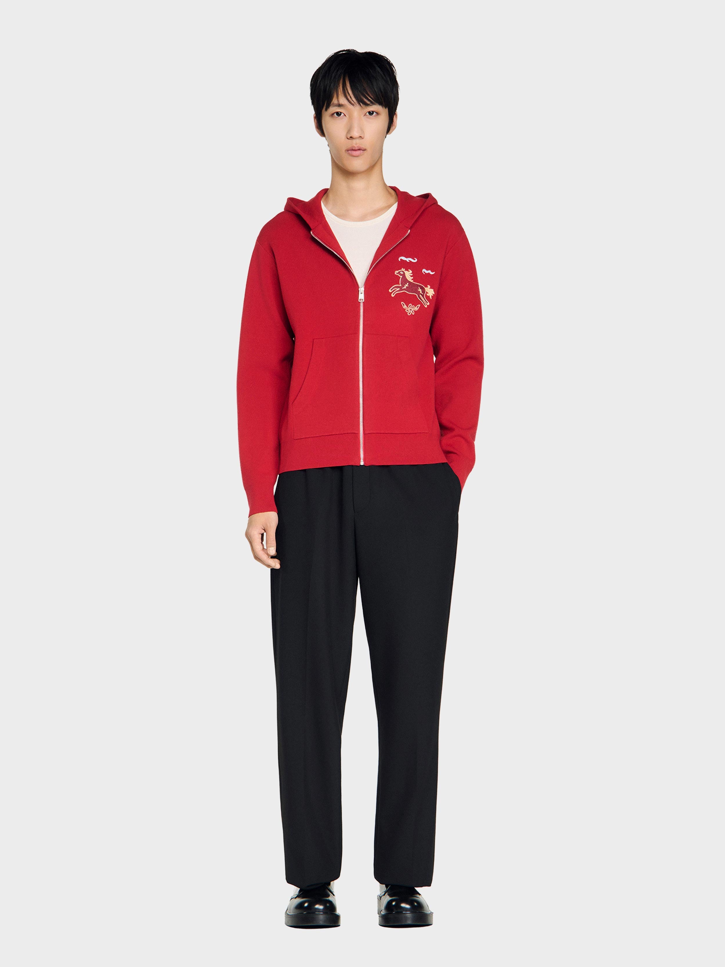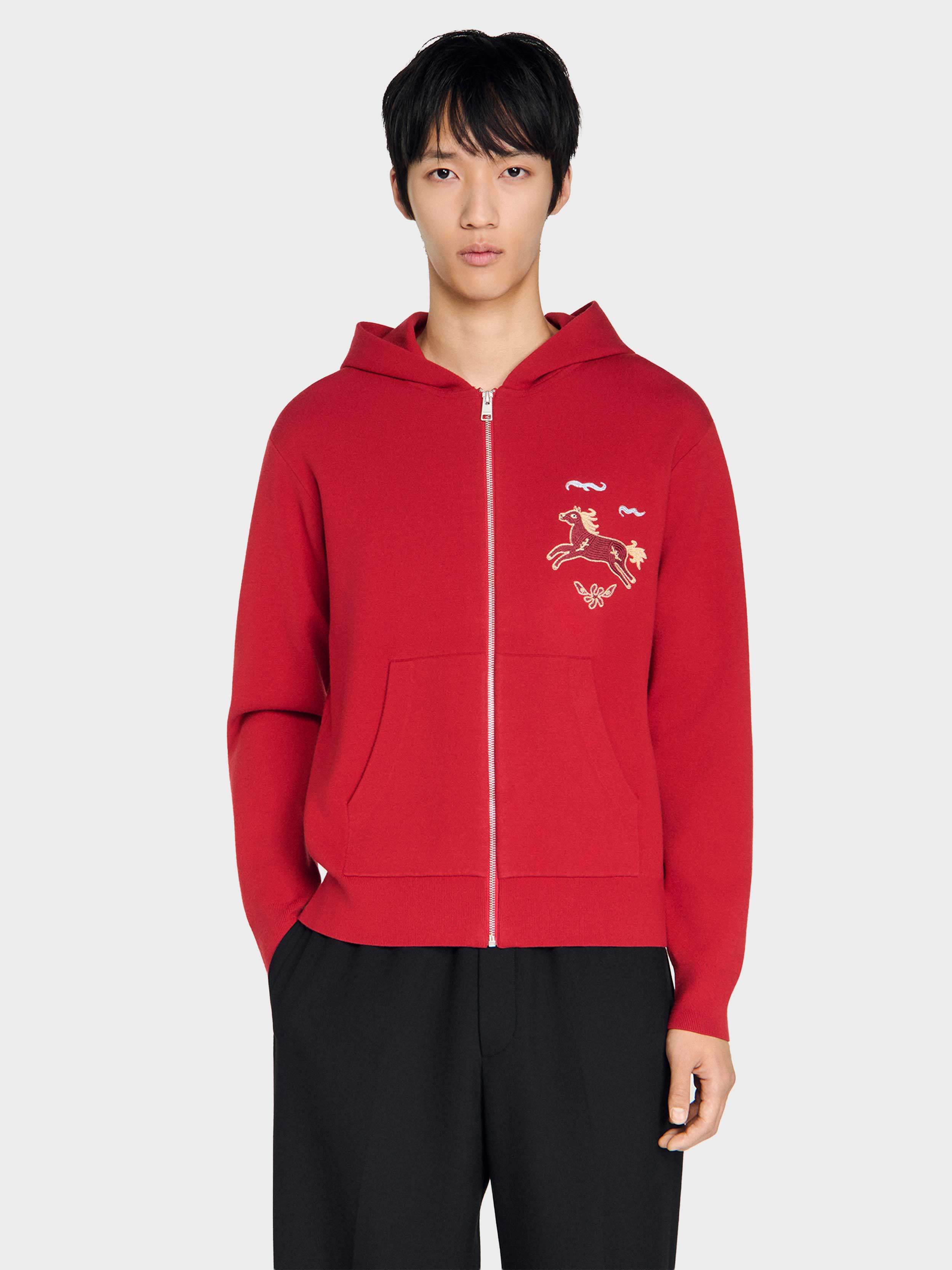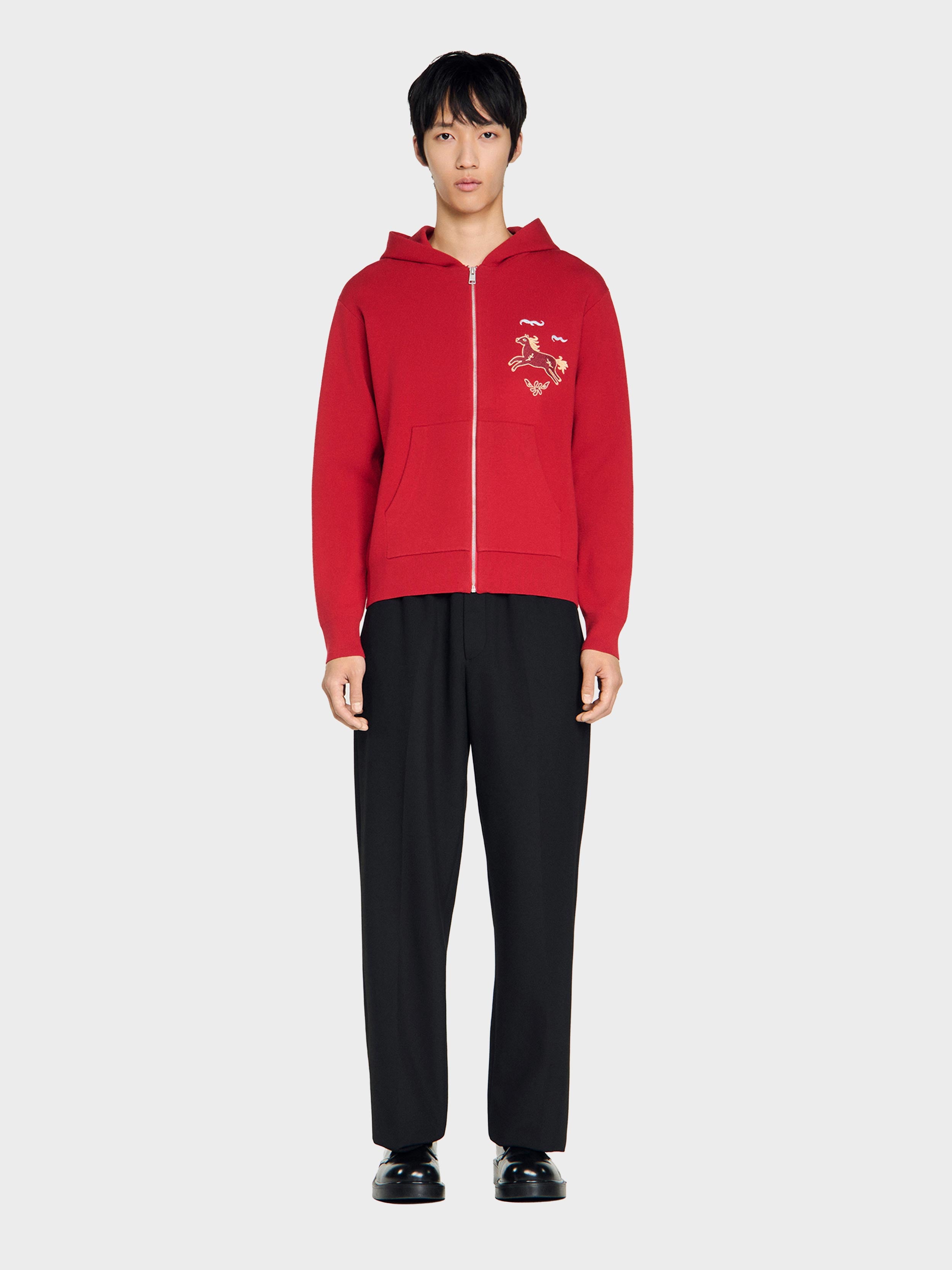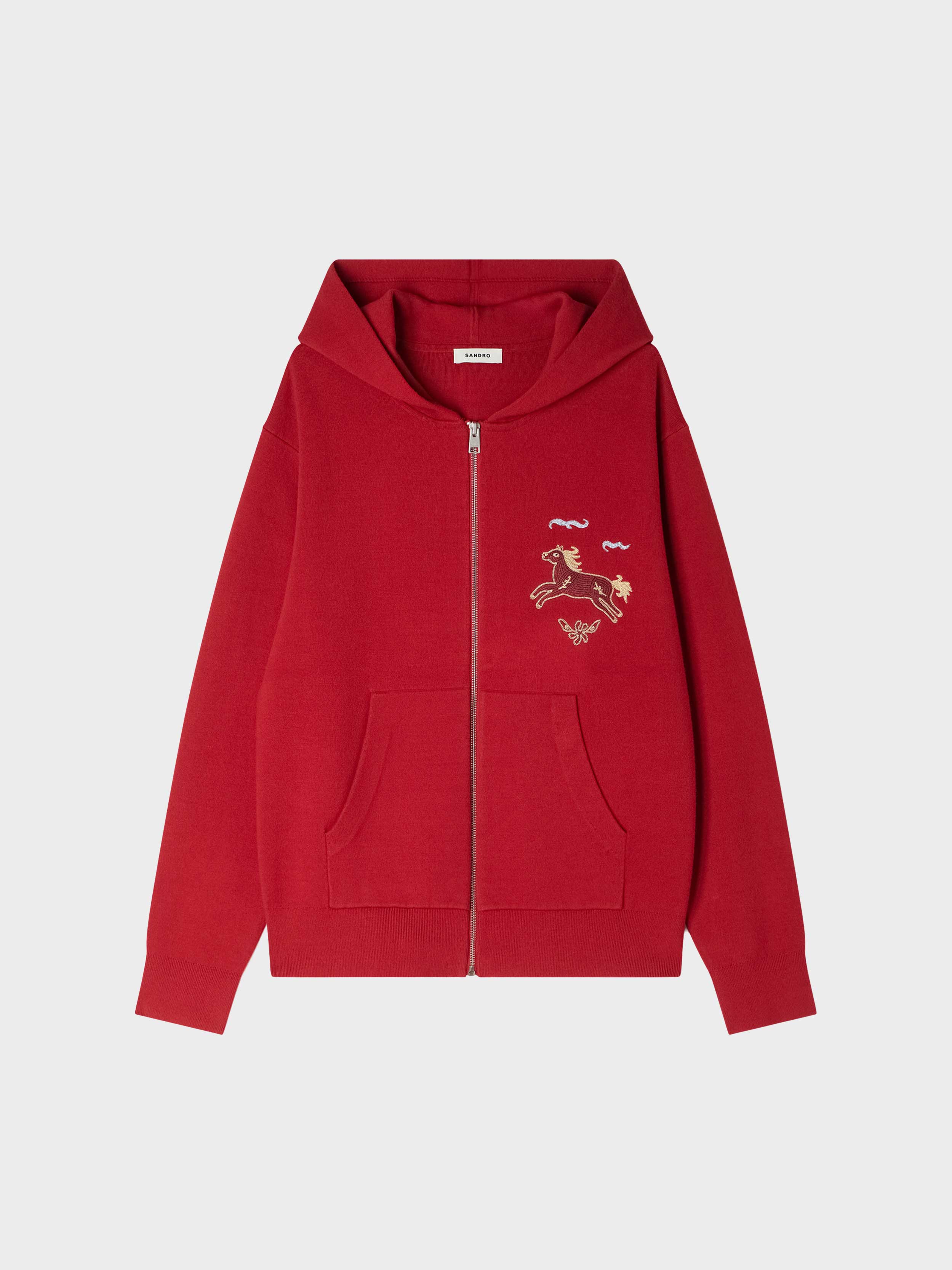 • Double jersey knit hoodie with a zip fastening, long sleeves and a horse embroidery.